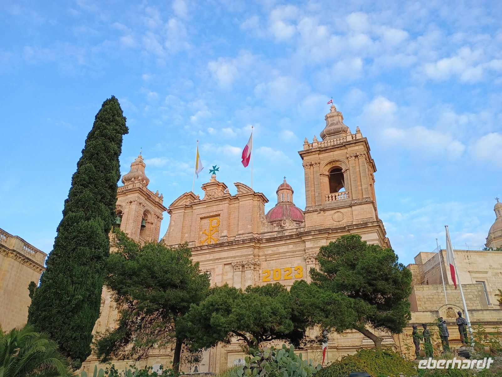 Heute geht es für uns schon früh los. Unsere Reiseleiterin Chantelle begrüßt uns in der Lobby und dann fahren wir mit dem Bus 40 Minuten Richtung Norden zum Hafen. Unser heutiges Ziel ist die kleine Nachbarinsel Gozo die nur 7 km von Malta entfernt liegt. Auf der Fähre angekommen können wir die Insel, die nur 8 km breit und 14 km lang ist, bereits sehen und freuen uns auf unseren heutigen Tag. Unsere Reiseleitung erzählt uns, dass viele Gozitaner, so werden die Bewohner der Insel genannt, fahren täglich mit der Fähre nach Malta, da sich ihre Arbeitsstelle dort befindet. Gerade für Ärzte, Lehrer oder Krankenschwester haben auf der kleinen Insel wenige Jobmöglichkeiten. Unser erster Anlaufpunkt ist die Xlendi Bucht, Xlendi bedeutet übersetzt Galeere oder Handelsschiff und so hat die Bucht ihren Namen von den Römern, die die Bucht als Zufluchtsort genutzt haben, ihren Namen. Bei einem kurzen Spaziergang zu einer kleinen Bucht sehen wir die Klippen, die bis zu 200 m aus dem Wasser ragen. Danach geht es für uns weiter vorbei an zahlreichen Olivenbäumen und kleinen Dörfern nach Fontana. Dort haben wir die Möglichkeit viele landestypische Spezialitäten wie Nougat, Olivenöl und Johannisbrotbaumlikör zu probieren. Während der Busfahrt sehen wir die Statue von Johannes Paulus, dieser war der erste Papst, der auf die Insel Gozo gekommen war. In der Dwerjia Bucht, auf der östlichen Seite der Insel gelegen, haben wir die Möglichkeit eine Bootsfahrt durch die Grotten zu machen. Danach geht es für uns zur westlichen Seite der Insel nach Marsalforn, wo wir einen kleinen Spaziergang entlang am Meer unternehmen und uns die Salzpfannen, die zur Salzgewinnung genutzt werden, zu bestaunen. Danach geht es zu unserem letzten Ausflugpunkt Victoria. Victoria oder von den Maltesern und Gozitanern Rabat genannte Hauptstadt hat viele Cafés, Restaurants und Bars und so entscheiden wir uns hier unsere Mittagspause einzulegen. Schon während des heutigen Tages merken wir, dass alle Wege über die Hauptstadt Victoria führen und so wird hier nicht gesagt „Alle Wege führen nach Rom“, sondern „Alle Wege führen nach Victoria/Rabat“. Gegen späten Nachmittag geht es für uns wieder zurück zur Fähre und können einen wunderschönen Sonnenuntergang bei der Überfahrt genießen. Im Hotel angekommen haben wir Zeit uns frisch zu machen, denn die Silvester-Feier steht an. Gegen 20 Uhr treffen wir uns in unserem feierlich geschmücktem Hotelrestaurant. Bei Live-Musik hatten wir die Möglichkeit uns durch ein vielfältiges Buffet mit mediterranen und maltesischen Spezialitäten durchzuprobieren. Danach sorgte der DJ für Abwechslung und einige Gäste schwangen das Tanzbein. Kurz vor Mitternacht versammeln wir uns auf der Dachterrasse des Hotels und genießen mit unserem Glas Sekt den atemberaubenden Ausblick auf Valletta mit seinem Feuerwerk. Einige Gäste entscheiden sich den Abend noch in der Bar gegenüber ausklingen zu lassen.