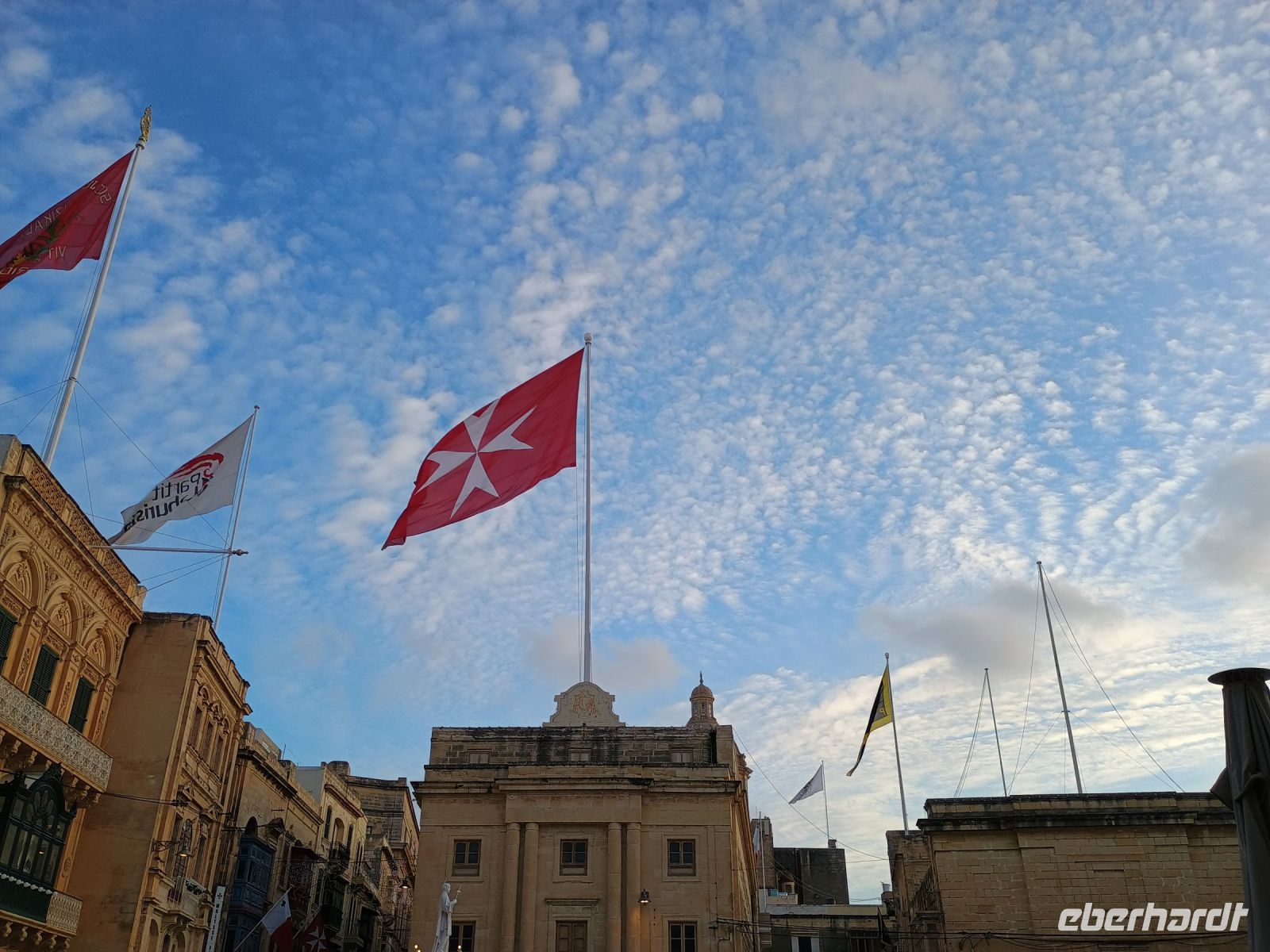 Endlich ist es so weit und ich treffe die ersten Gäste in Dresden am Flughafen. Unser Ziel Malta – die Insel im Mittelmeer. Nach der Gepäckabgabe haben wir am Gate Zeit, um uns kennenzulernen und um die ersten Gespräche zu führen. Pünktlich heben wir ab und fliegen nach Frankfurt, wo wir auf den Rest der Gruppe treffen werden. Nach einem ruhigen Flug von etwa 2,5 Stunden ist es auch schon wo weit und wir befinden uns im Landeanflug auf Malta. Schon von oben sieht man bereits die vielen Buchten mit dem türkisblauen Wasser, die Insel Gozo und die verschiedenen Städte wie zum Beispiel die Hauptstadt Valletta. Nach der Landung werden wir von unserer Repräsentantin der örtlichen Agentur begrüßt und zu unserem Reisebus begleitet. Nachdem alle Gäste ihre Zimmer im Waterfront Hotel bezogen haben, steht eine kleine Begrüßungsveranstaltung an. Sliema ist der Ort, an dem sich unser Hotel befindet und die bevölkerungsreichste Stadt Malta. Danach ist es auch schon Zeit für das Abendessen. Während einige das Abendessen im Hotelrestaurant dazugebucht haben, gibt es, für die anderen, an der Promenade zahlreiche Restaurants und Bars für ein individuelles Abendessen.