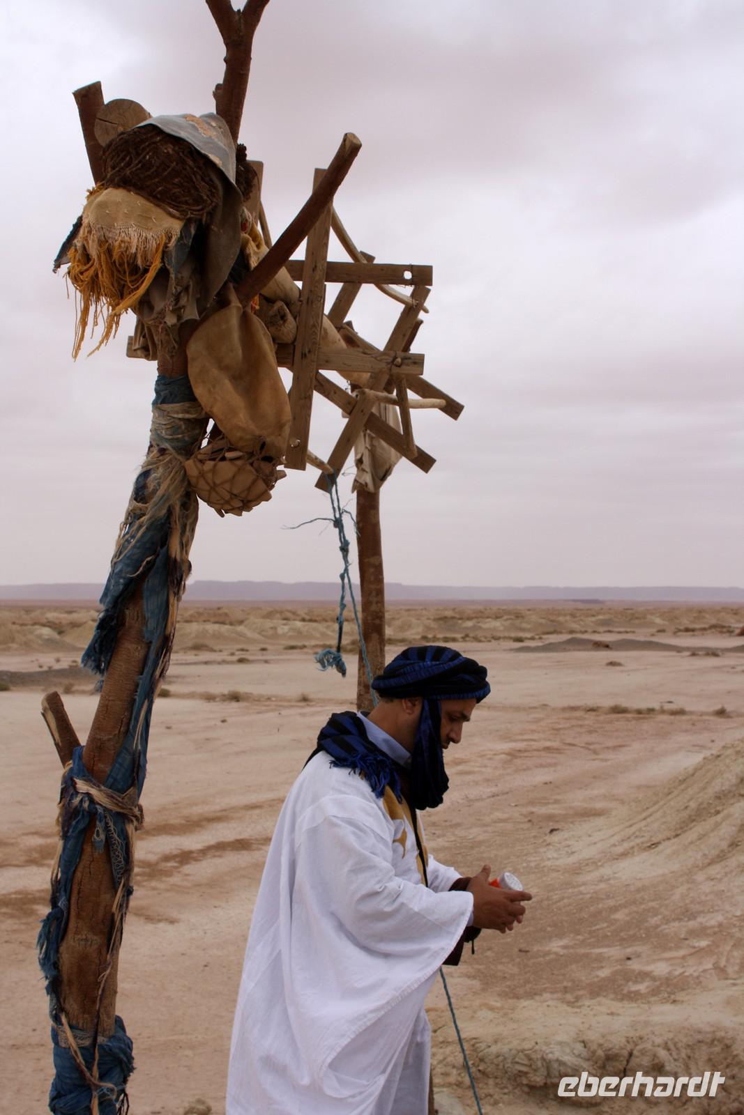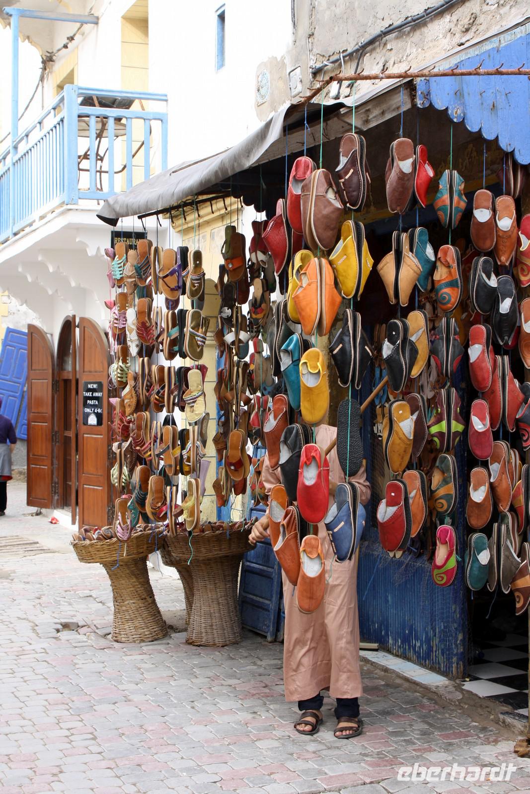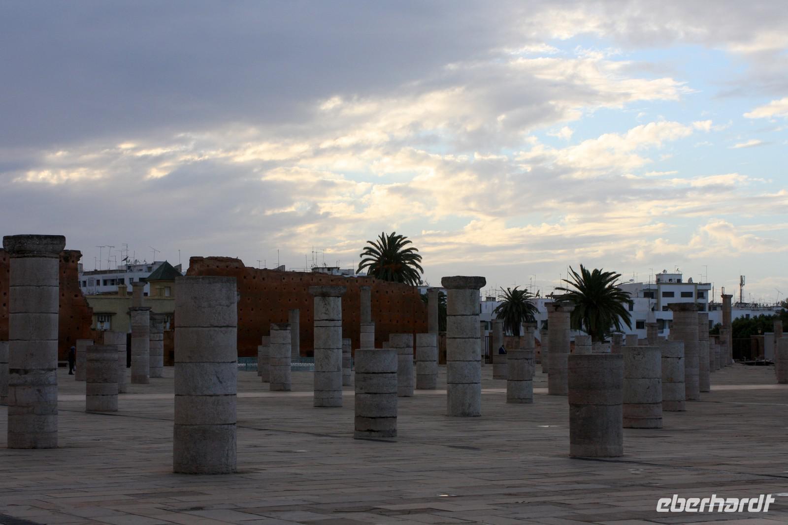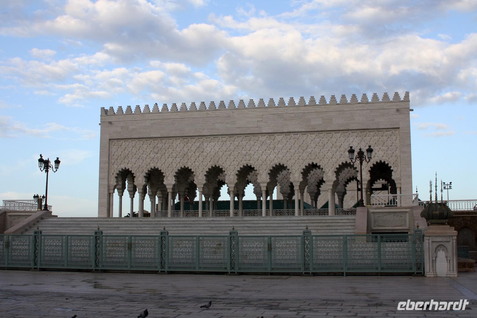 Nach einer längeren Fahrt und ersten Eindrücken besuchten wir das Mausoleum von Mohammed V. und die unvollendete Moschee. Der dortige Hassan-Turm ist das Wahrzeichen der Stadt. Das prunkvolle Mausoleum ist aus weißem Marmor erbaut und beeindruckte uns sehr. Auch die vielen Wächter in ihren traditionellen Gewändern waren einen Fotoschnappschuss wert. Ein anschließender Bummel durch die Altstadt-Gassen, die in blau-weiß gehalten sind, der sogenannten Kasbah der Oudaisas, war trotz des regnerischen Wetters toll. Da am nächsten Tag das Opferfest stattfand, sahen wir viele Einwohner bei den Vorbereitungen für den großen Tag. Dieses höchste islamische Fest findet jedes Jahr an einem anderen Tag statt, da es sich nach dem islamischen Mondkalender richtet. Jeder gläubige Muslime opfert ein Tier zu diesem Fest. Die Familie kommt zusammen, betet und verspeist das rituell geschächtete Tier, meist Schaf, Ziege oder auch Kamel. Für unsere Reisegruppe war es etwas ganz besonderes, diesen Tag bzw. diese Tage mitzuerleben.