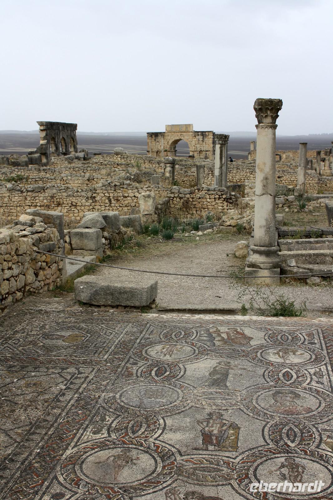 Die römische Ausgrabungsstätte Volubilis war unser erstes Ziel. Ein Spaziergang über das große Gelände brachte uns Einblicke in die Ausgrabungen aus dem Römischen Reich. Mohammed erklärte uns die sehr gut erhaltenen Mosaike und Säulen. Leider fing es an zu regnen und keiner war so richtig darauf vorbereitet. ;-)