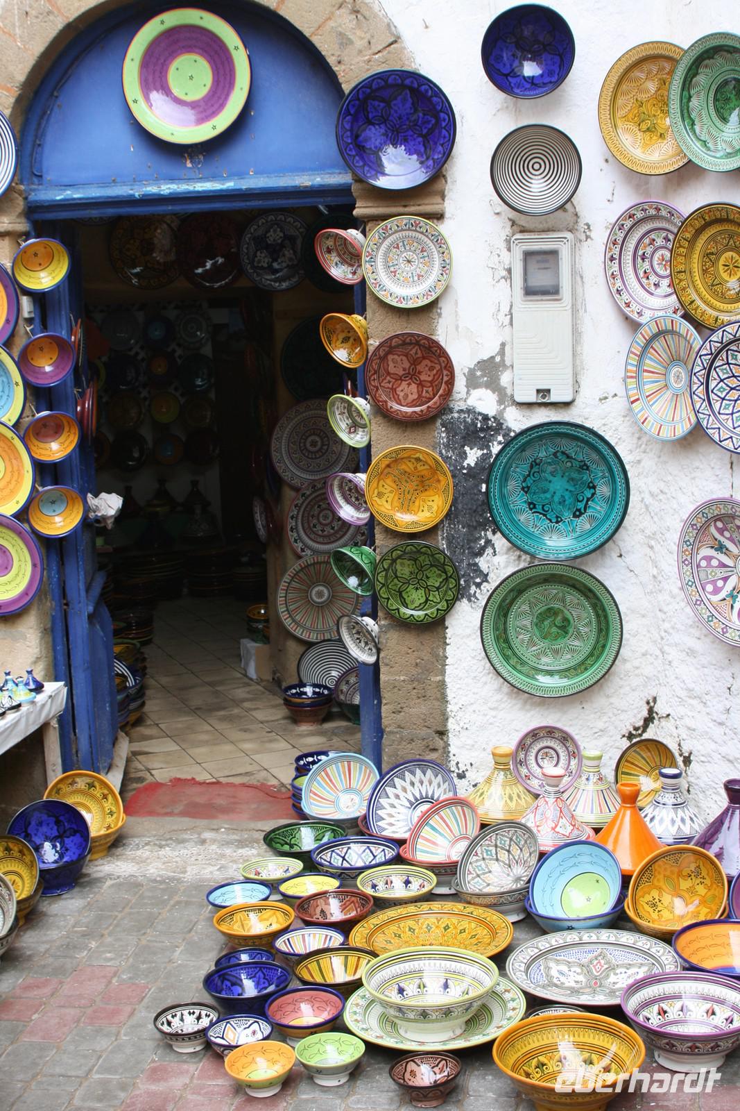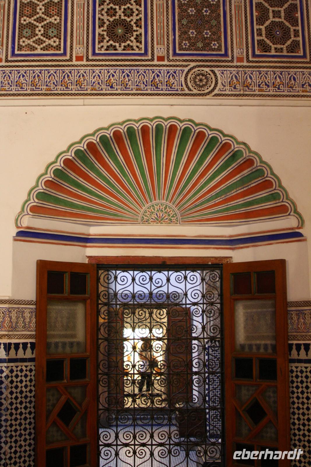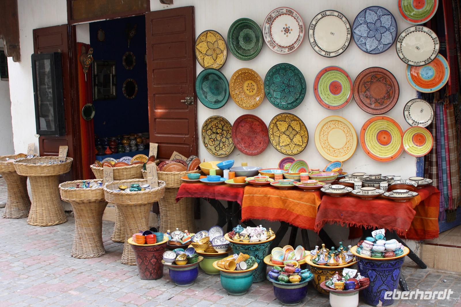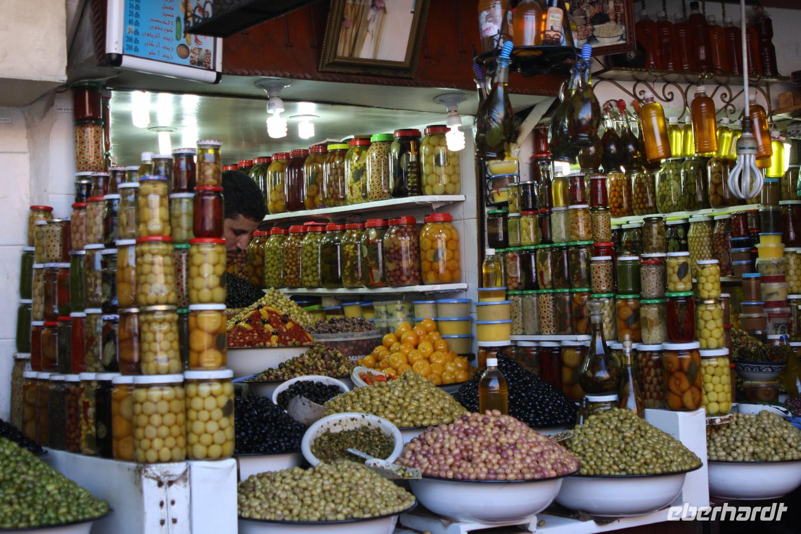 Am nächsten Tag besichtigten wir die Medina von Fès, die Altstadt. Autos sind hier unmöglich. Wir spazierten durch die engen Gassen und Reiseleiter Mohammed erklärte uns Kulinarisches und das besondere Handwerk. Einem Ziseliermeister für Messing, der auch am Königspalast Tore verziert hatte, statteten wir einen Besuch ab - Teller, Kannen, Spiegel und Lampen soweit das Auge reichte. Wir besichtigten außerdem den Innenhof der Medersa Bou Inania, erhaschten einen Blick in die Kairaouine-Moschee und das Zaouia Moulay Idriss, ein Mausoleum, wo Nicht-Muslime keinen Zutritt haben.