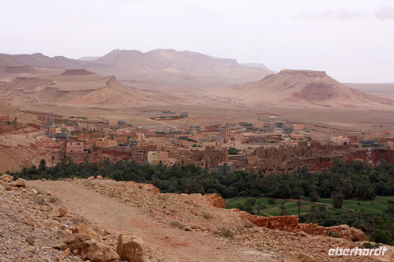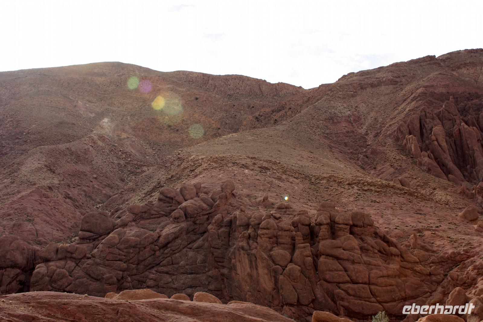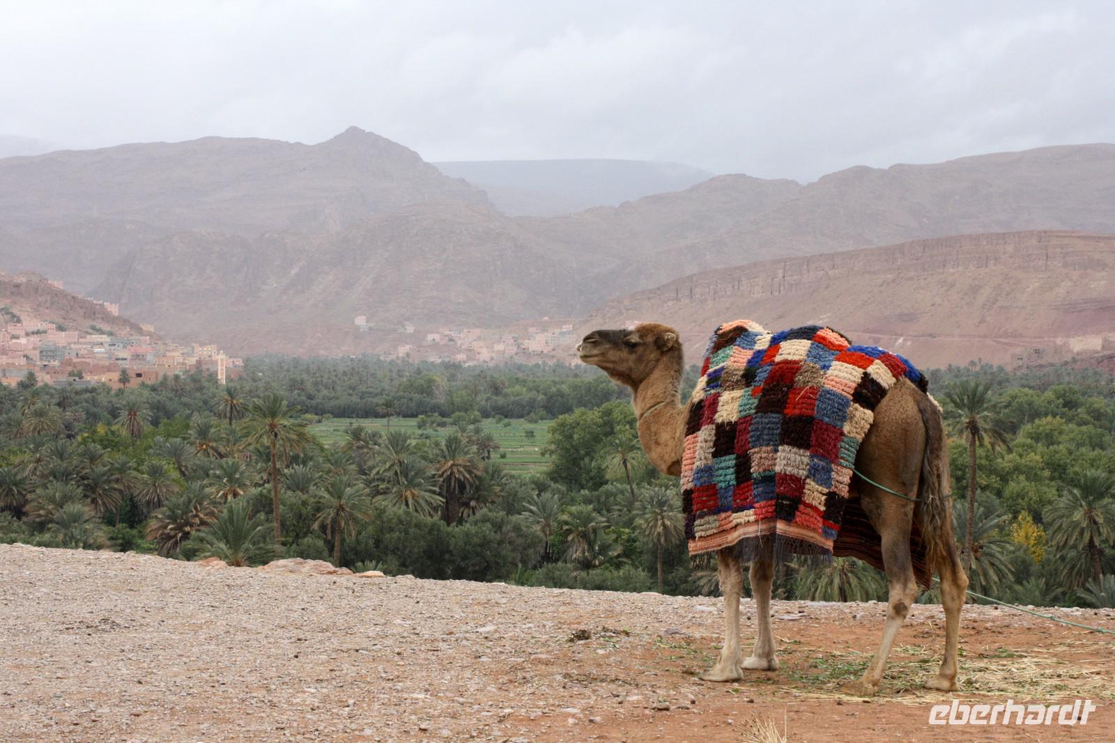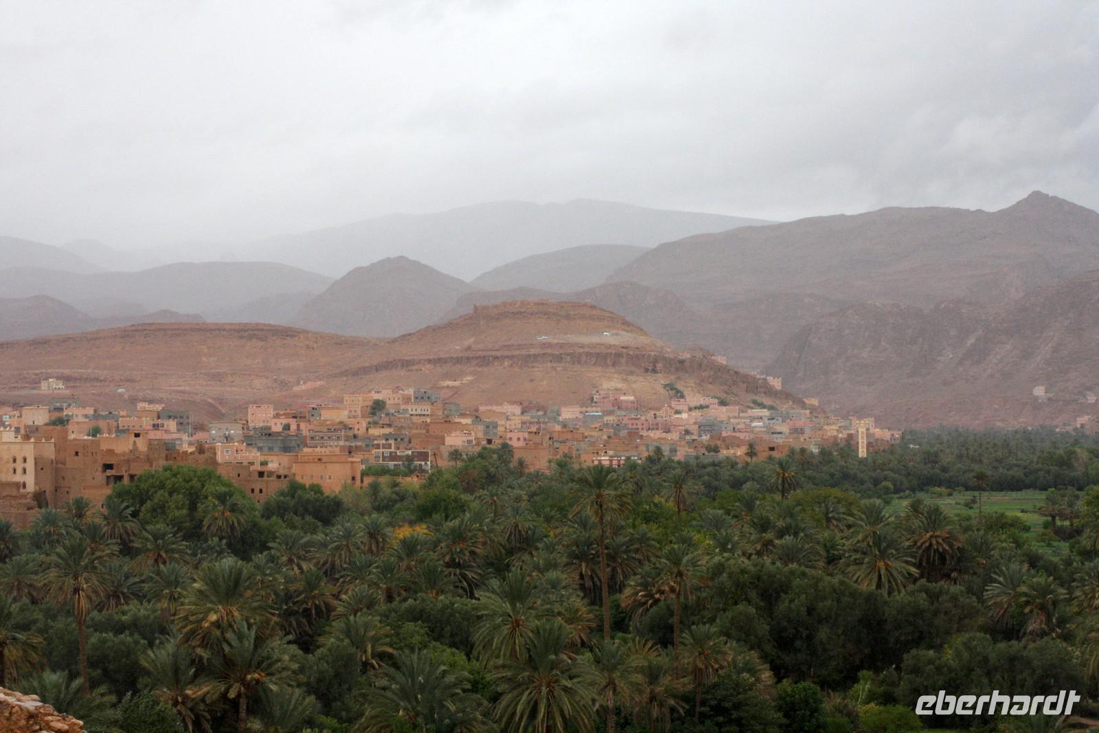 Wir hatten einen Bus-Stopp später eine fantastische Aussicht auf das Tondratal und fuhren weiter zur Tondraschlucht, wo wir auch zu Mittag aßen. Später erreichten wir das schönste Hotel der Reise, „Xaluca Dades" - tolle Begrüßung durch eine Folkloregruppe, Tee und Gebäck, supernette Mitarbeiter, superschöne Anlage im afrikanischen Stil mit Pool und traumhafte Zimmer! Auch der Ausblick auf die Stadt Boumalne du Dades war sensationell. Auch das Buffet beim Abendessen war sehr abwechslungsreich und lecker.