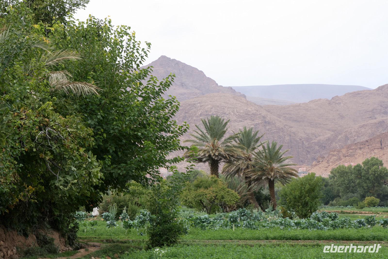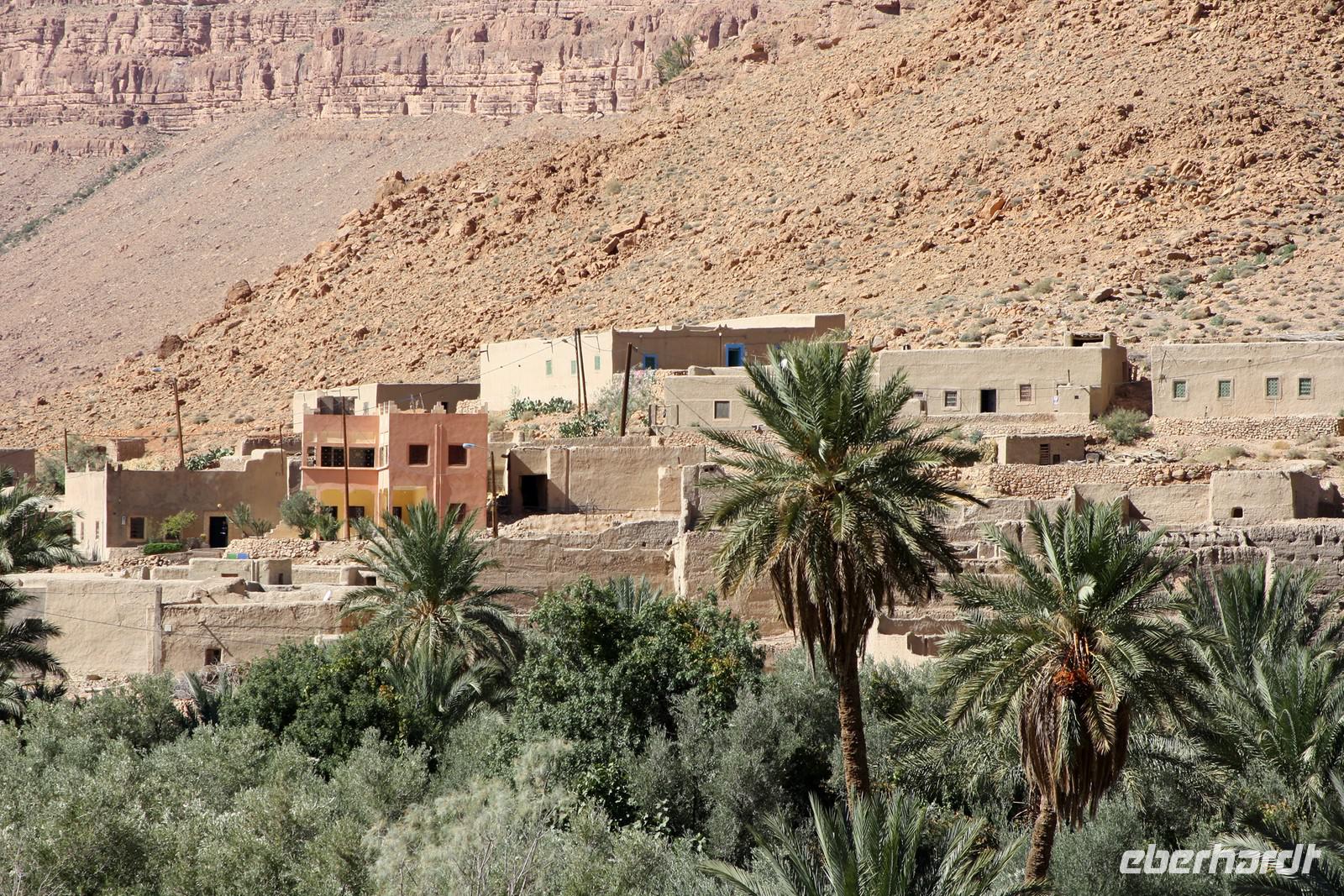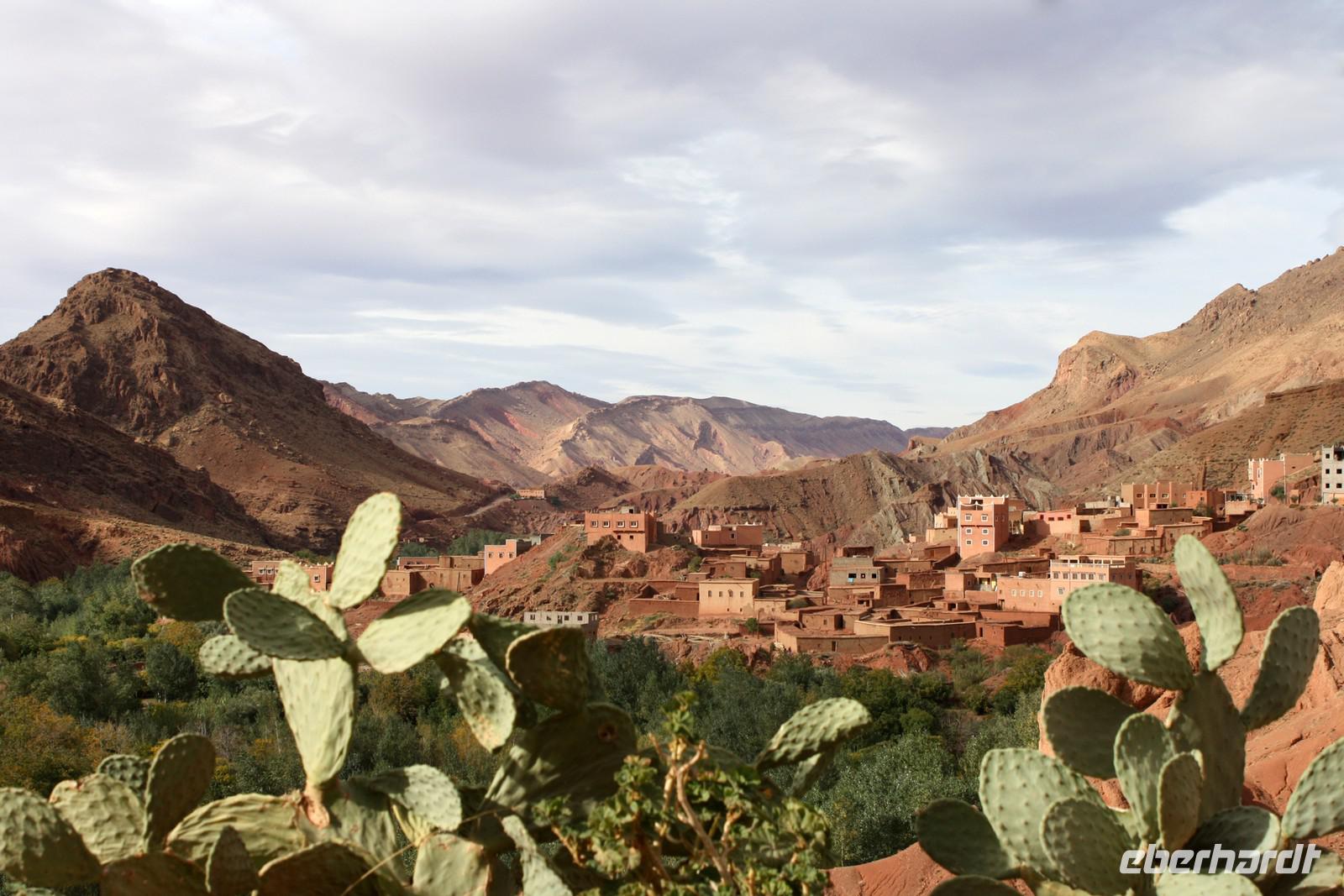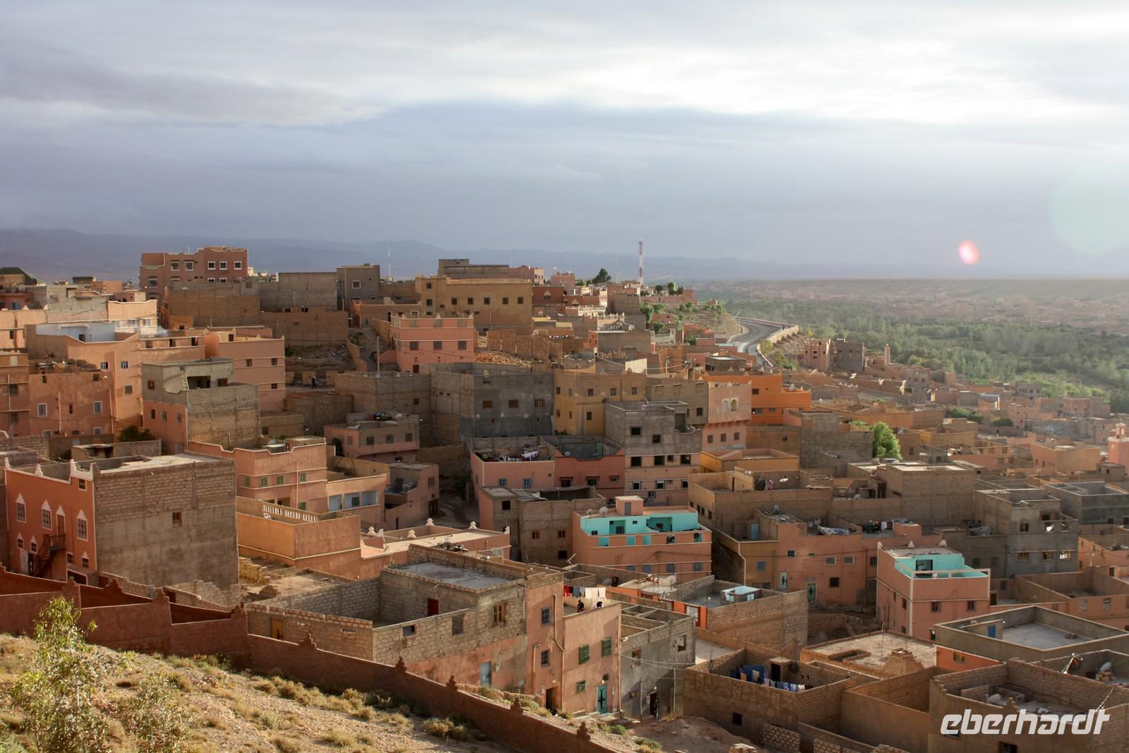 Wir hatten einen Bus-Stopp später eine fantastische Aussicht auf das Tondratal und fuhren weiter zur Tondraschlucht, wo wir auch zu Mittag aßen. Später erreichten wir das schönste Hotel der Reise, „Xaluca Dades" - tolle Begrüßung durch eine Folkloregruppe, Tee und Gebäck, supernette Mitarbeiter, superschöne Anlage im afrikanischen Stil mit Pool und traumhafte Zimmer! Auch der Ausblick auf die Stadt Boumalne du Dades war sensationell. Auch das Buffet beim Abendessen war sehr abwechslungsreich und lecker.