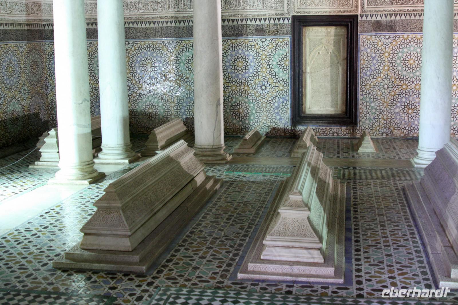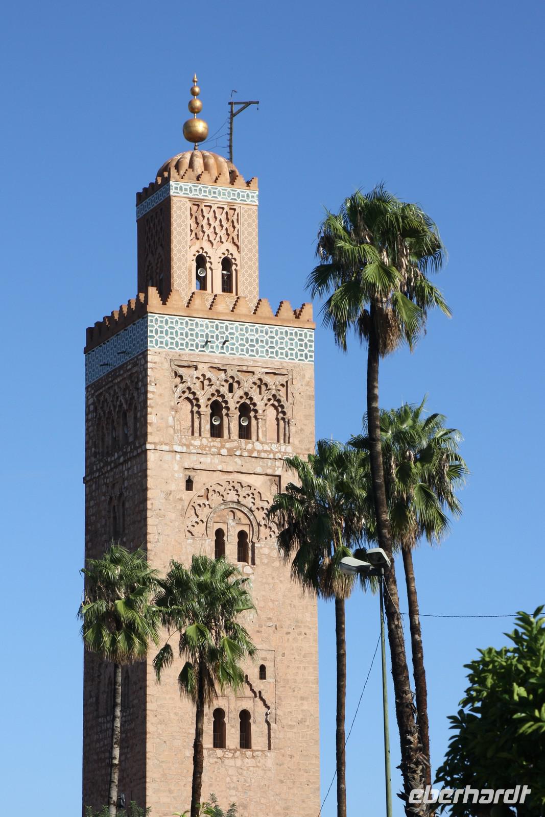 Am nächsten Tag hatten wir noch viel Zeit für die Stadt Marrakesch. Mohammed zeigte uns die Koutoubia-Moschee und die Saardiniergräber. Außerdem führte er uns durch das Museum Marrakesch. Beim Besuch einer staatlichen Apotheke erhielten wir eine kleine Vorführung von Gewürzen, Arganöl u.v.m. Hier gab es auch die Möglichkeit, sich massieren zu lassen. Nach dem Mittagessen im Hotel und einer kleinen Mittagspause trafen wir uns am Nachmittag zum erneuten Stadtrundgang. Den „Platz der Gaukler" sahen wir nun auch noch am Tag. Außerdem war der Souk unser Ziel: sooo viele Babuschen, Schüsseln, Schals, Taschen und Lampen haben wir noch nicht gesehen. :-)