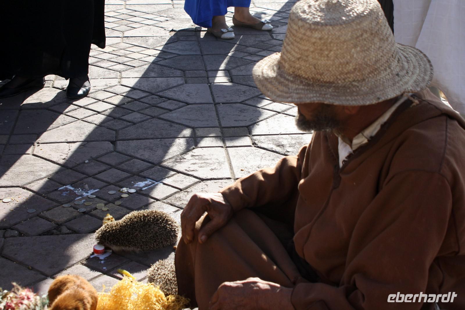 Am Abend besuchten wir den „Platz der Gaukler": Garküchen und Händler überall. Wir spazierten dann zum Restaurant, wo wir alle an einem runden Tisch saßen und 5 typisch marokkanische Gänge mit Begleitmusik genossen. Anschließend fand noch ein Bauchtanz statt.