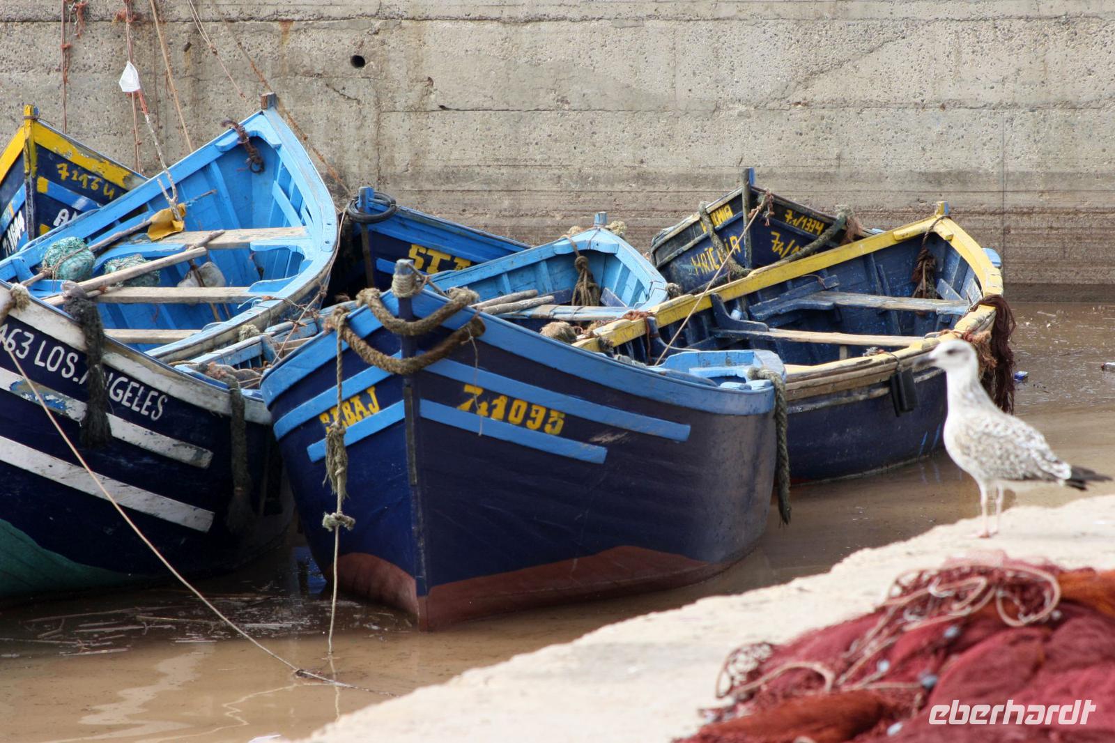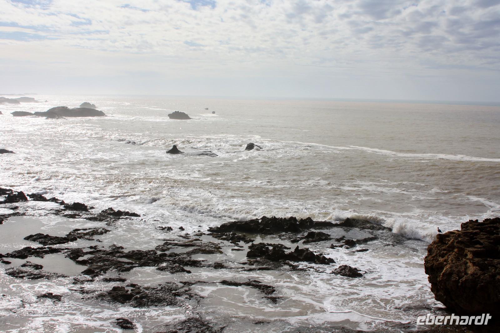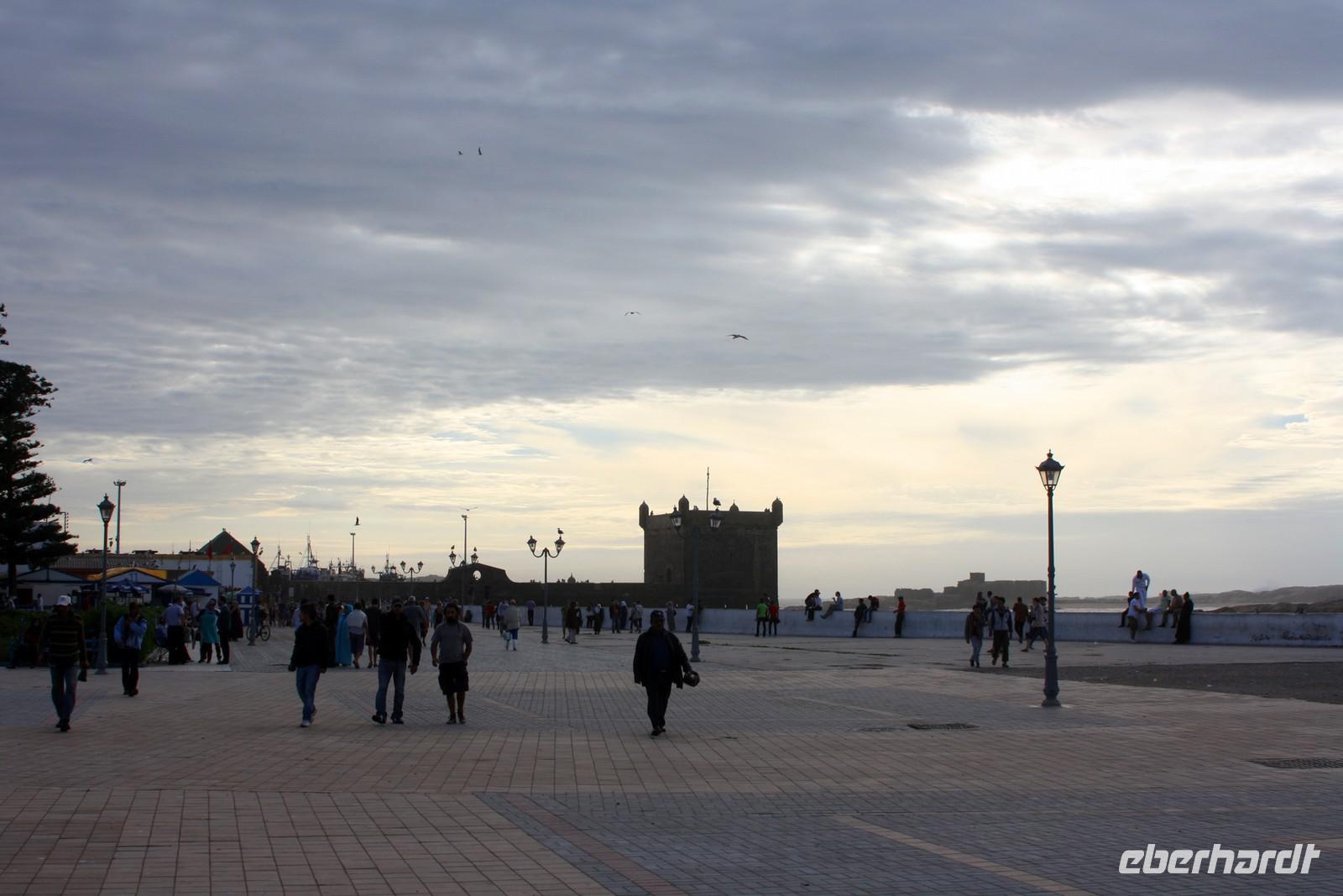 Da wir bei der Anreise einen halben Tag verloren hatten in Casablanca, fuhren wir zeitig vom Hotel in Essaouira weg, um unser vorgesehenes Programm zu schaffen. Zum Mittag waren wir da und stärkten uns erstmal an der Promenade „Le Corniche".
