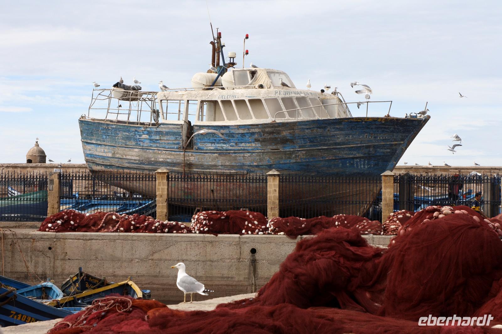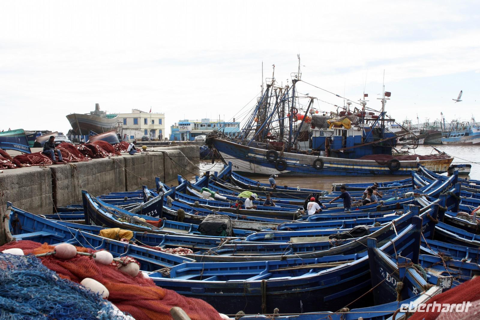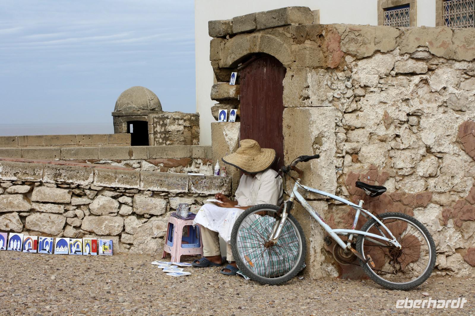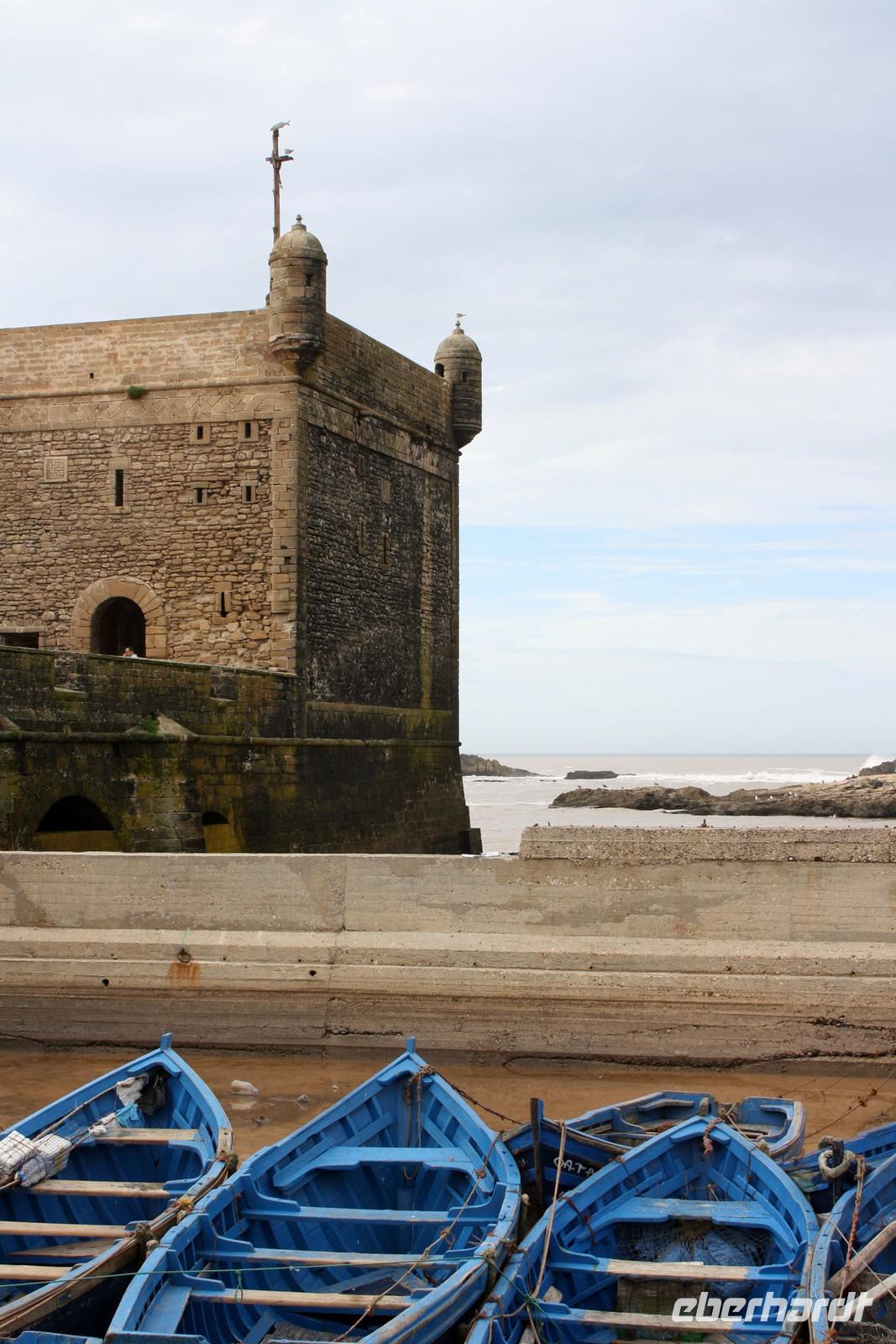 Da wir bei der Anreise einen halben Tag verloren hatten in Casablanca, fuhren wir zeitig vom Hotel in Essaouira weg, um unser vorgesehenes Programm zu schaffen. Zum Mittag waren wir da und stärkten uns erstmal an der Promenade „Le Corniche".