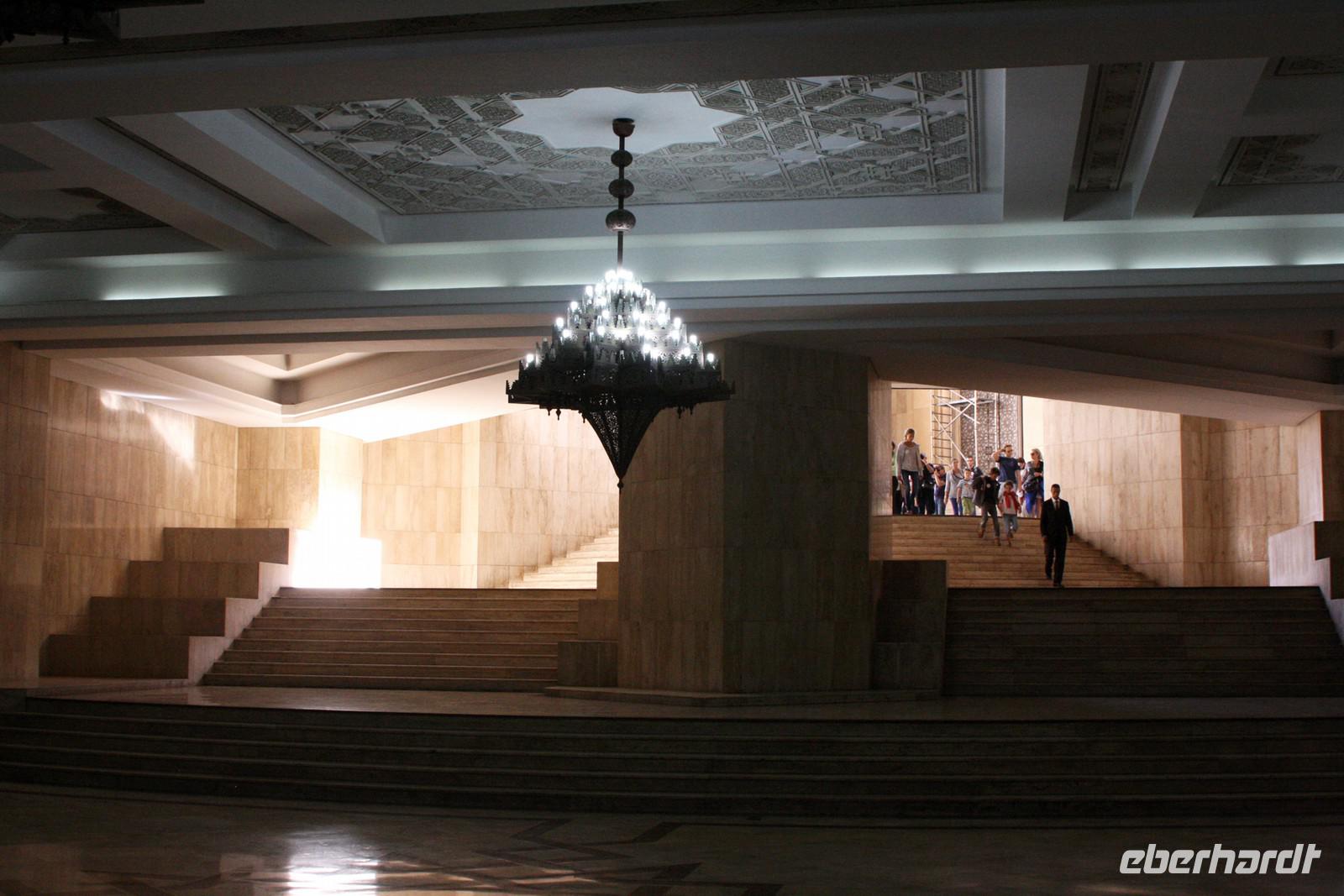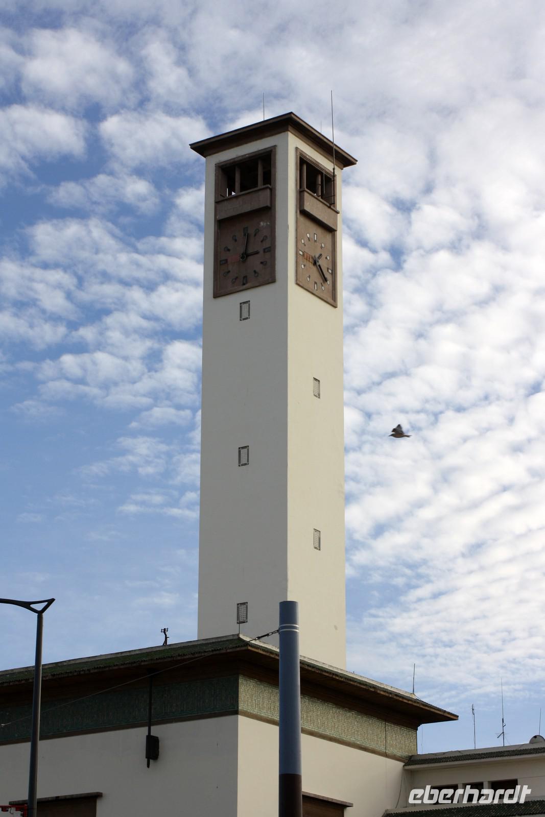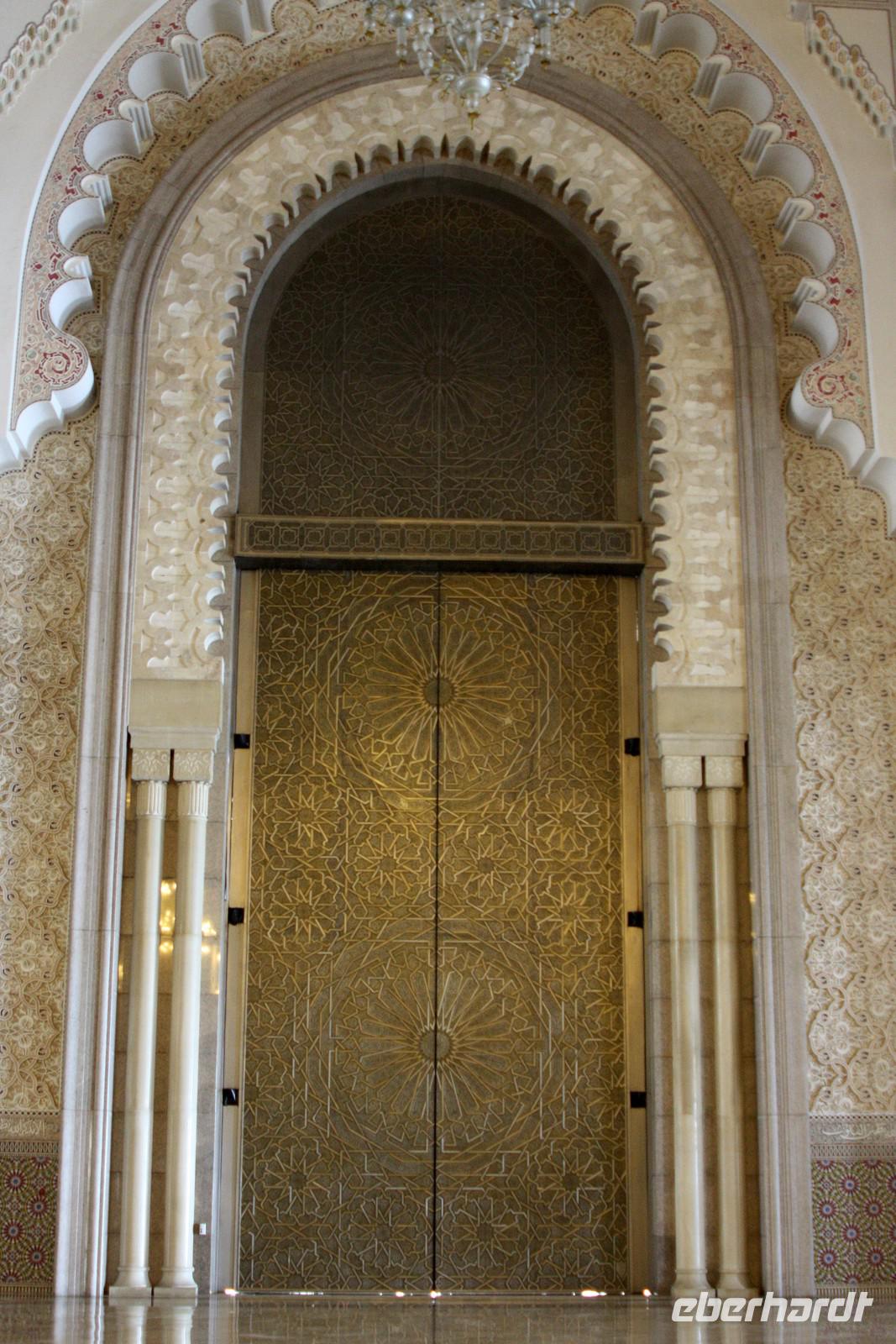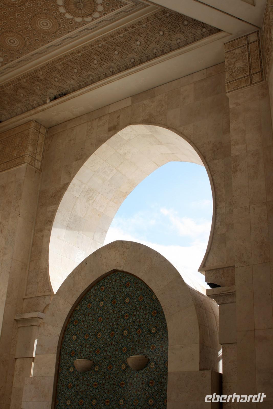 In der Moschee Hassan II. war 14.00 Uhr für uns Einlass und Mohammed machte mit uns eine ausführliche Runde in dem riesigen Bauwerk. Die Moschee ist teilweise auf Wasser gebaut und war in sechs Jahren fertig gestellt worden. Offiziell war das Gotteshaus ein Geschenk des Volkes an seinen König, aber wir erfuhren, dass von jedem Bürger des Landes eine Spende erzwungen wurde, dadurch war der Bau in die Kritik geraten. In einer der größten Moscheen der Welt finden bis zu 25.000 Personen Platz und ihr Minarett ist mit 210 Metern Höhe das höchste der Welt. Wir besichtigten auch den größten und schwersten Kronleuchter des Gebäudes (2,5 Tonnen) und den großen Hamam in den unteren Etagen.