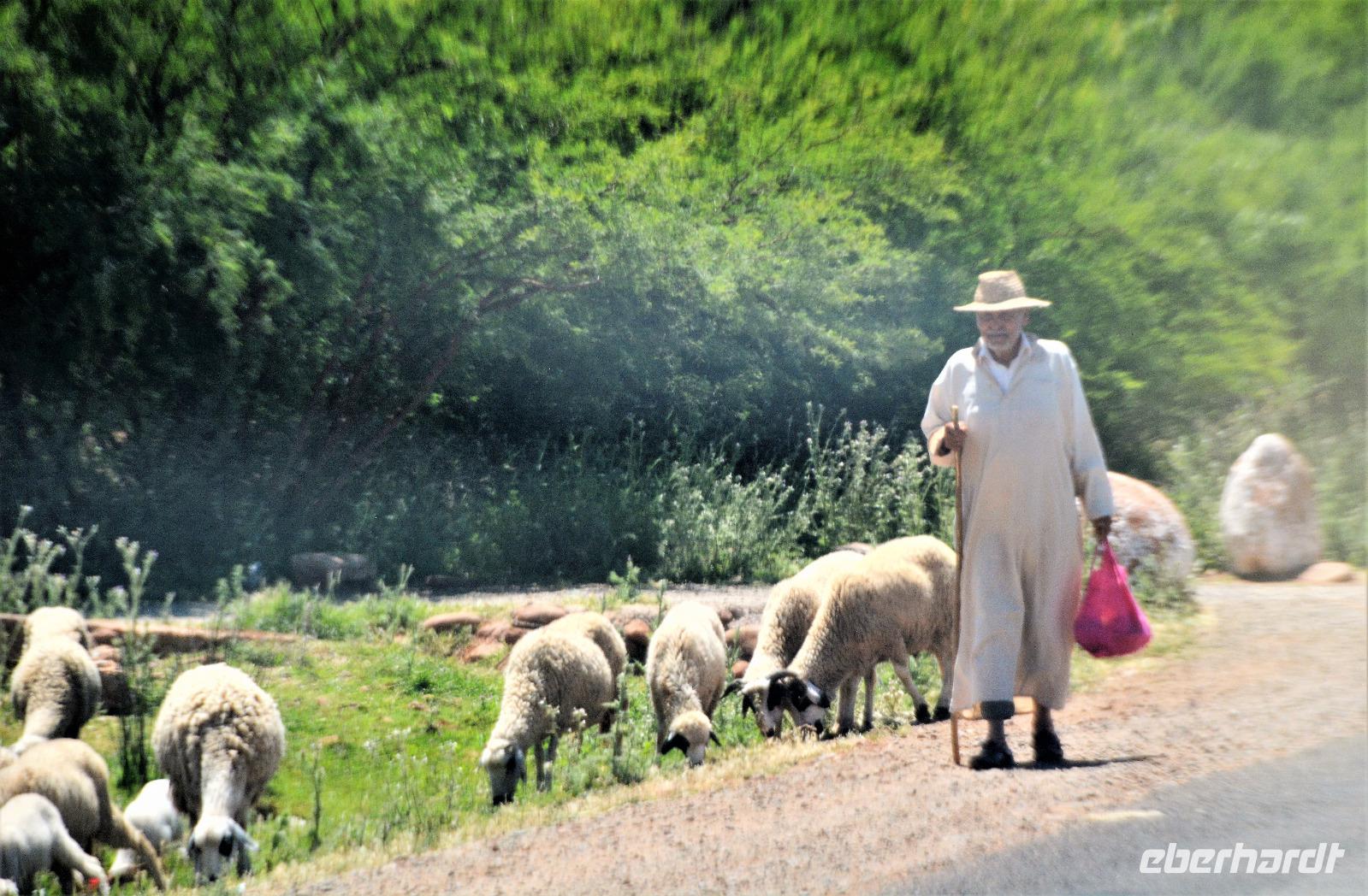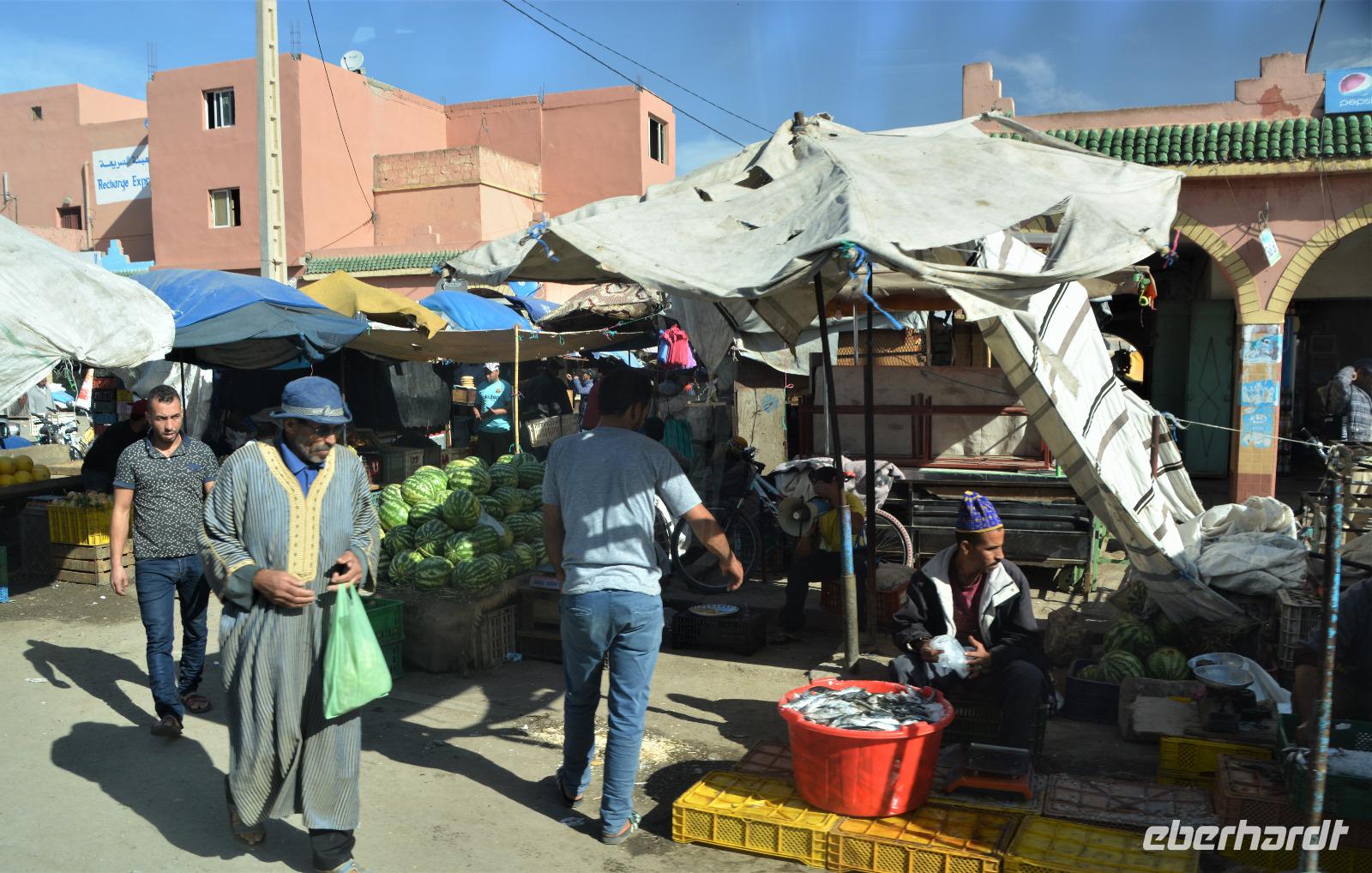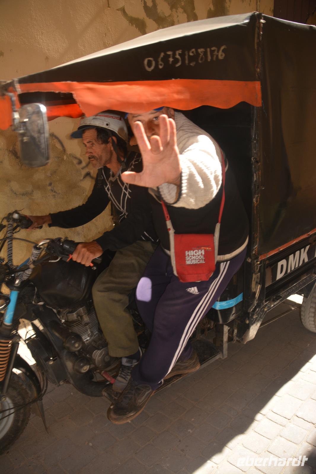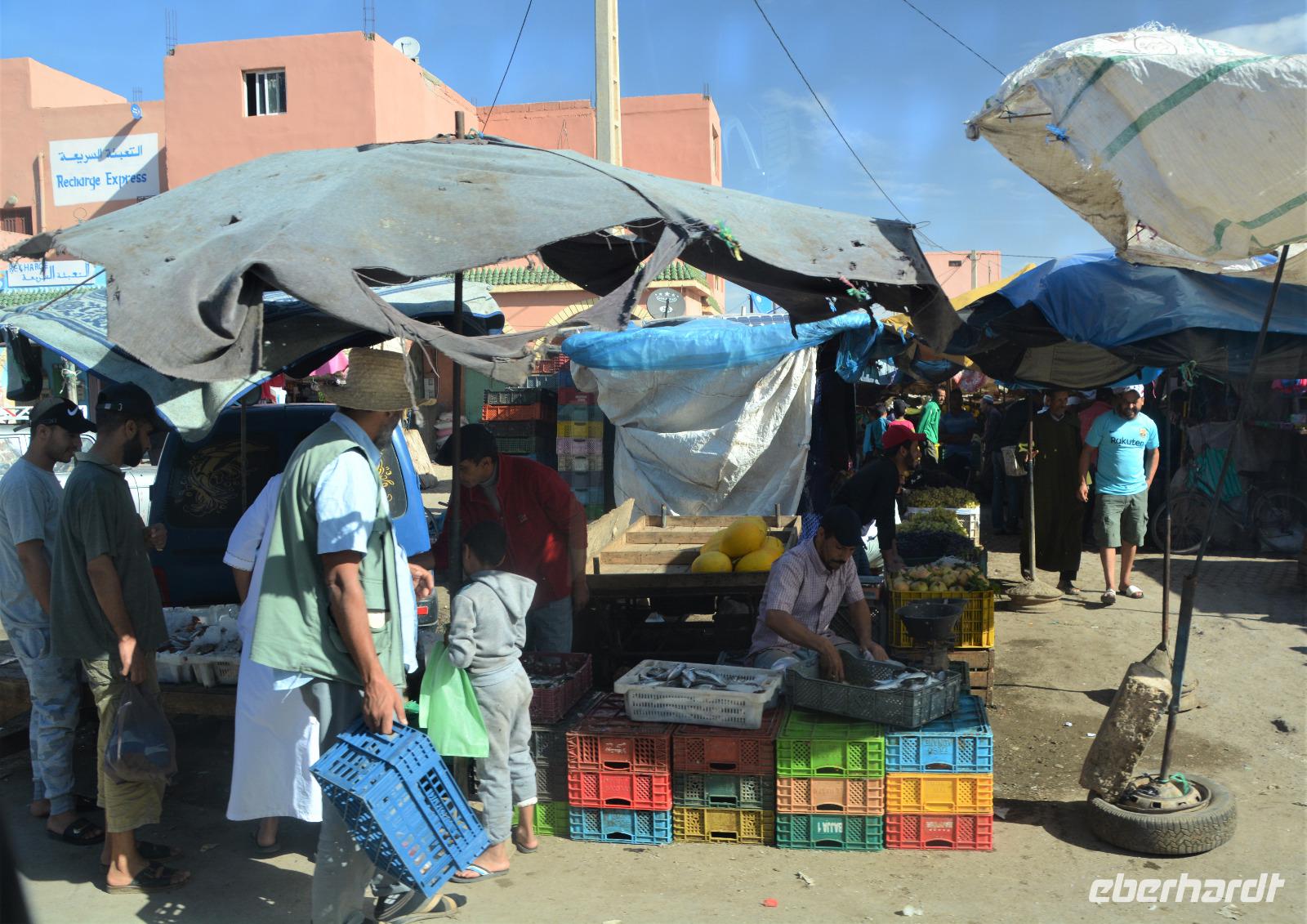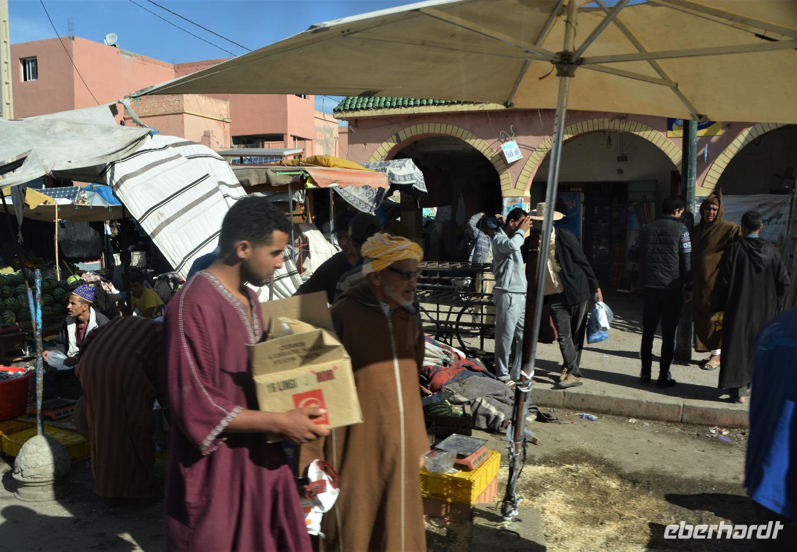 Heute starten wir etwas später. Nun-ob die Tür unseres Busses das wusste? Sie klemmt nämlich und wir müssen erst einmal in eine kleine Werkstatt. Dieser zusätzliche kleine Ausflug war nicht eingeplant, ist aber spannend, da wir kennenlernen wie man kleine Pannen in Marokko behebt. Keine langen Terminabsprachen oder Mechanikermangel. Sofort weiss jeder woran es liegt und es dauert keine halbe Stunde und wir können weiterfahren. Wir wünschen uns solch unbürokratische sofortige Problemlösung für Deutschland. Kleine Handreichungen bekommt man gegen ein kleines Trinkgeld sofort. Das entspannt das Reisen ungemein. Ob es der größere Einkauf ist der mit einer Karre nach Hause gefahren werden muss oder die zu schwere Tasche. Überall bieten eifrige junge Marokkaner ihre Dienste an. Es ist ein Land in dem nicht jeder eine feste Arbeitsstelle hat und besonders sind es die jungen Leute, die sich als Tagelöhner anbieten müssen, da es auch bis heute keine ausreichenden Ausbildungsplätze gibt.