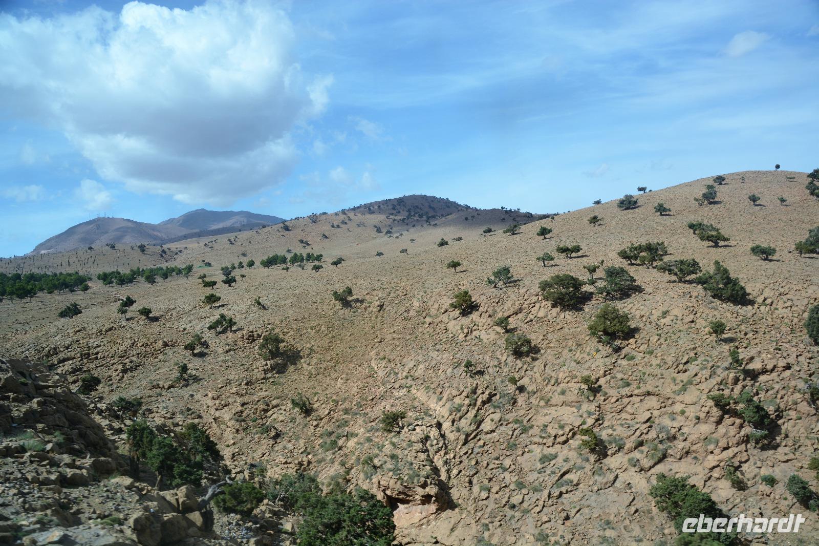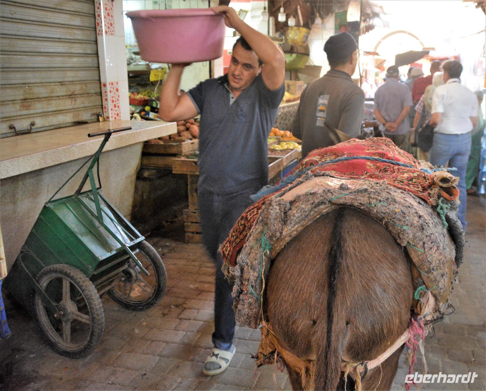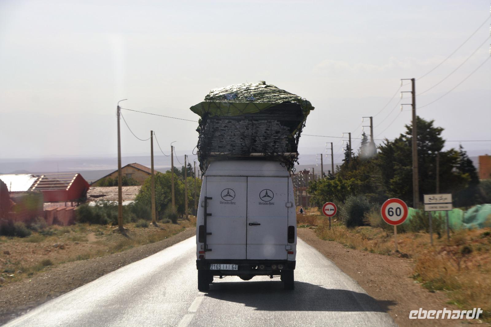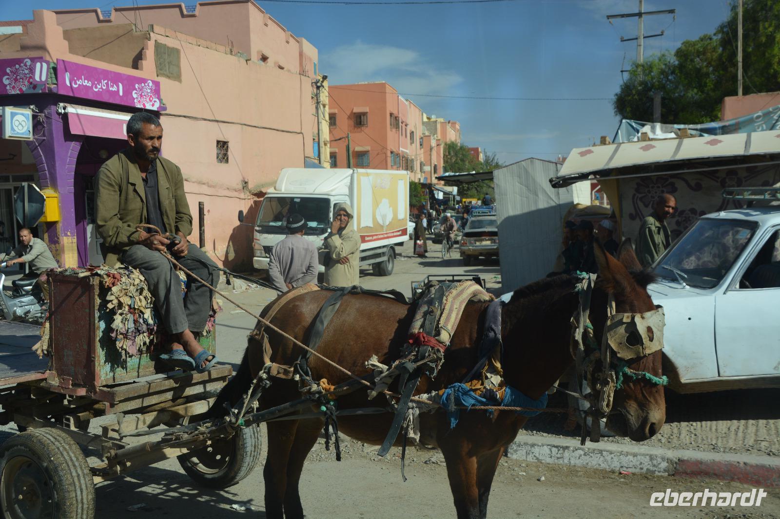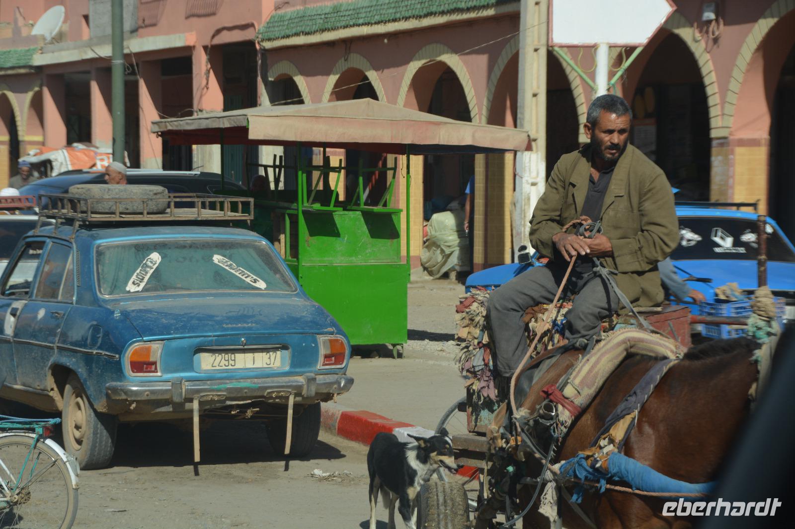 Heute starten wir etwas später. Nun-ob die Tür unseres Busses das wusste? Sie klemmt nämlich und wir müssen erst einmal in eine kleine Werkstatt. Dieser zusätzliche kleine Ausflug war nicht eingeplant, ist aber spannend, da wir kennenlernen wie man kleine Pannen in Marokko behebt. Keine langen Terminabsprachen oder Mechanikermangel. Sofort weiss jeder woran es liegt und es dauert keine halbe Stunde und wir können weiterfahren. Wir wünschen uns solch unbürokratische sofortige Problemlösung für Deutschland. Kleine Handreichungen bekommt man gegen ein kleines Trinkgeld sofort. Das entspannt das Reisen ungemein. Ob es der größere Einkauf ist der mit einer Karre nach Hause gefahren werden muss oder die zu schwere Tasche. Überall bieten eifrige junge Marokkaner ihre Dienste an. Es ist ein Land in dem nicht jeder eine feste Arbeitsstelle hat und besonders sind es die jungen Leute, die sich als Tagelöhner anbieten müssen, da es auch bis heute keine ausreichenden Ausbildungsplätze gibt.