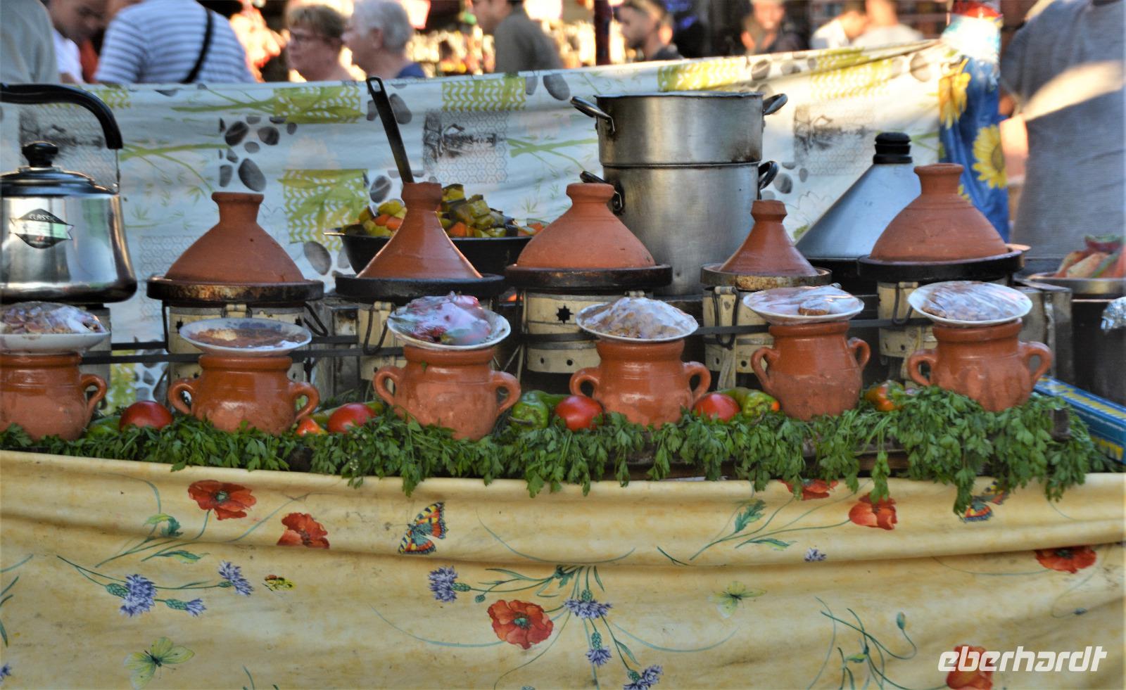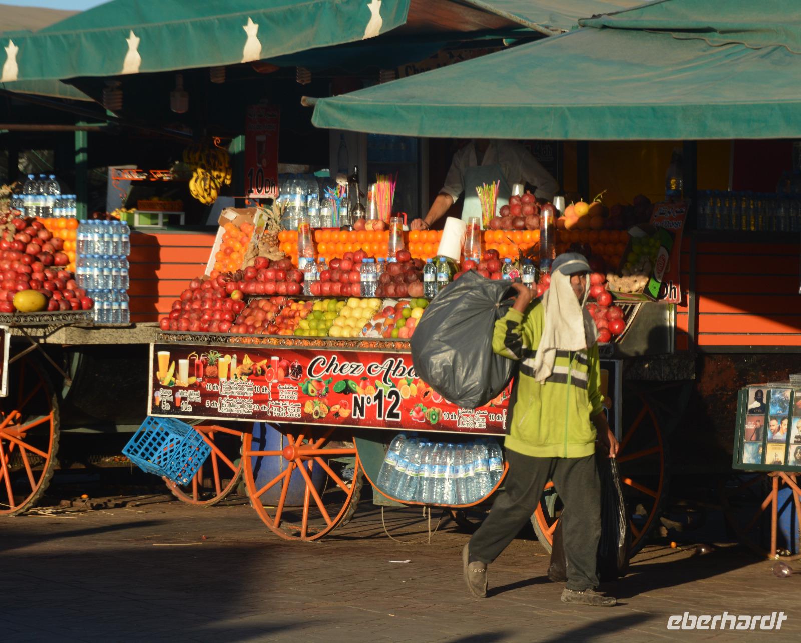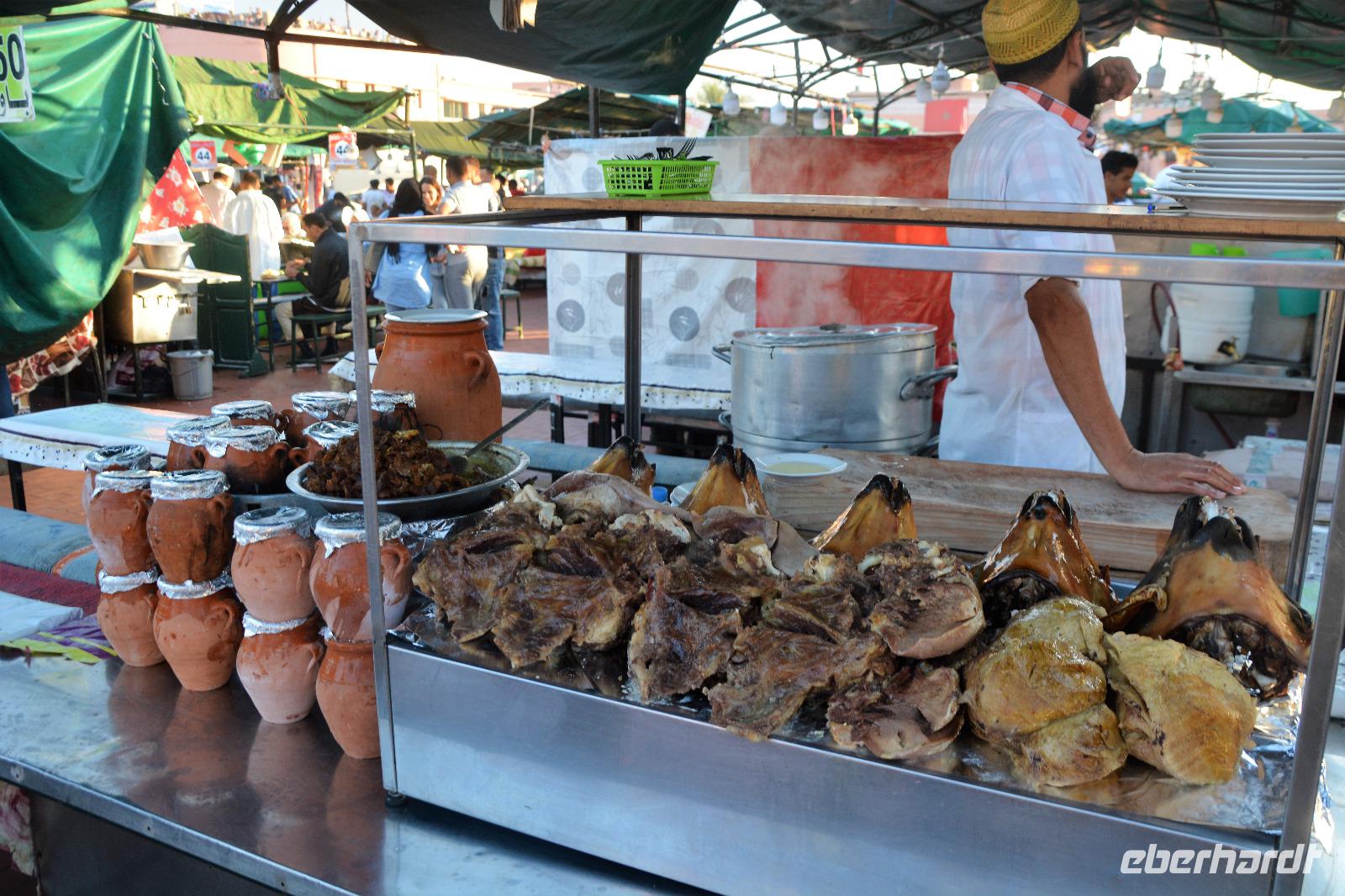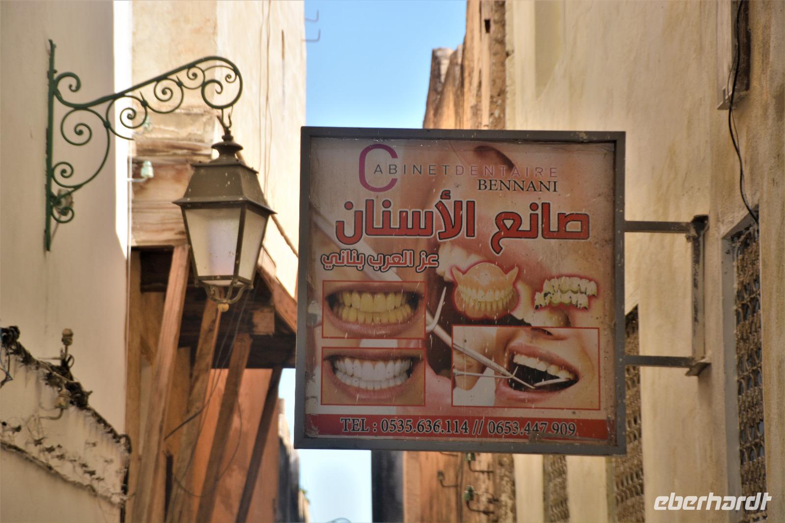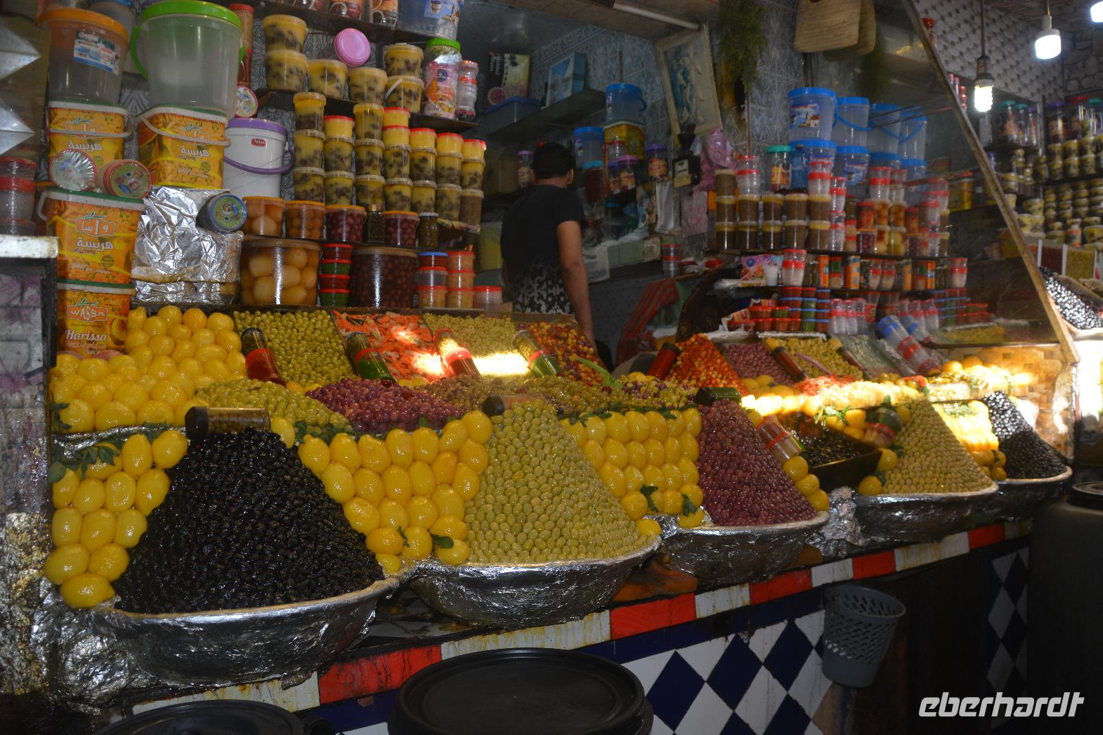 Jetzt haben wir uns eine Mittagspause verdient, auch ist es noch ein wenig heißer geworden. Nach einer wohlschmeckenden "Harrira", einer marokkanischen Gemüsesuppe und einiger anderer kleiner Gerichte gehen wir durch die "Medina" zu einer der traditionellen Apotheken um uns über die besonderen Gewürze und die Naturheilmittelchen in amüsanter und kurzweiliger Form aufklären zu lassen. Wir machen einige Einkäufe und fahren zurück in unser Hotel für eine kleine Pause. Am späten Nachmittag treffen wir uns alle, um den Tag noch einmal revue passieren zu lassen und mit einigen Ergänzungen anzureichern. Gina, unsere dt. Reiseleiterin erzählt uns ein wenig aus dem marokkanischen Familienleben und spricht über einige Problemchen und Veränderungen in der marokkanischen Gesellschaft während der letzten Jahre. Wir füllen unsere Trinkgeldkasse auf, denn Trinkgelder spielen hier in Marokko eine wichtige Rolle, zeigen sie doch die Zufriedenheit des Gastes und dienen dem Lebensunterhalt. Freundlich geht man in Marokko miteinander um.