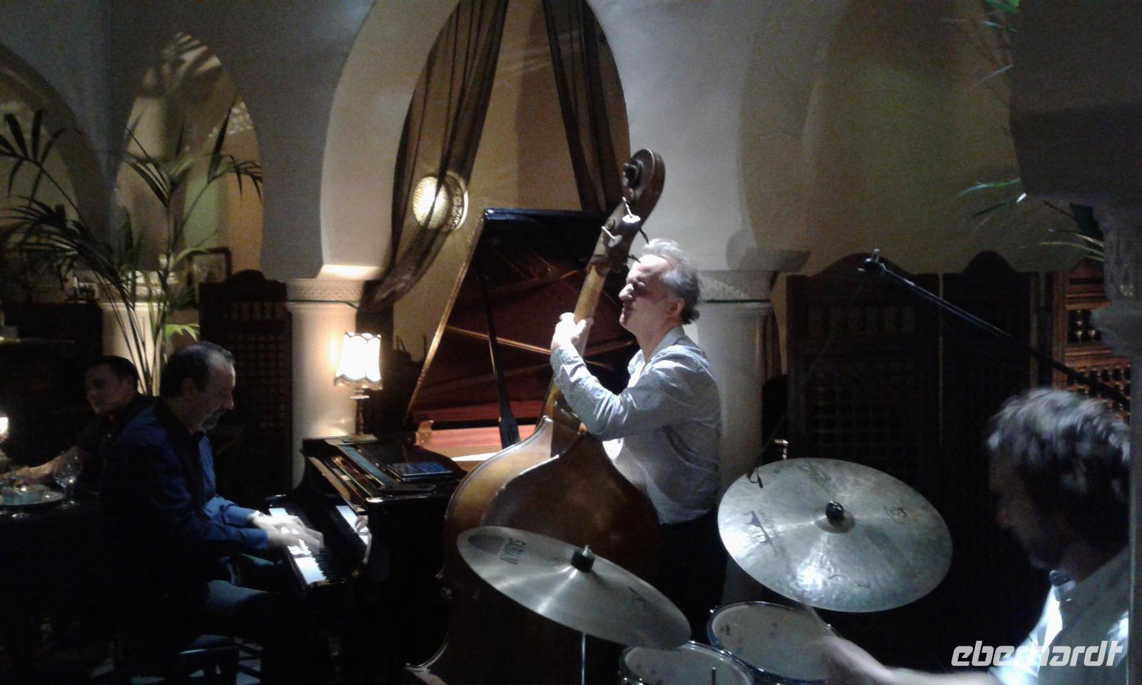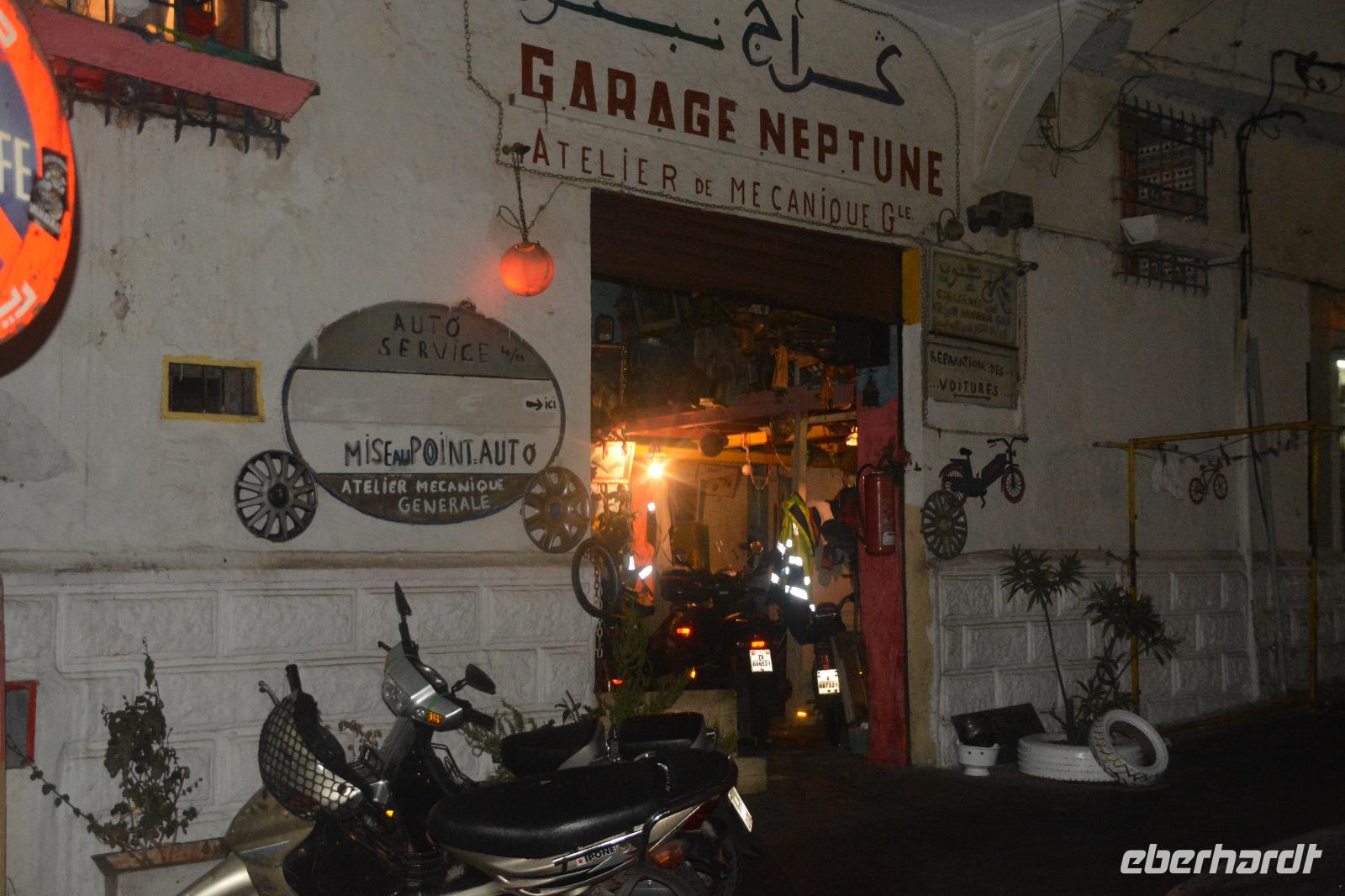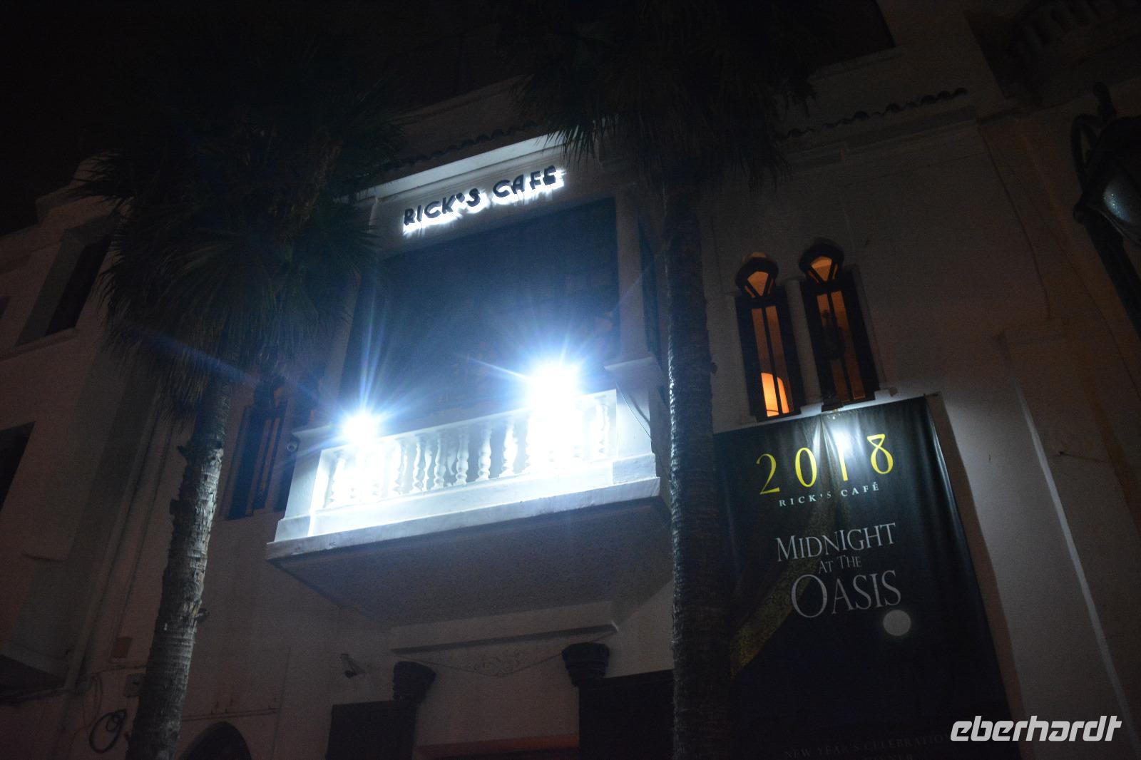 Die Moschee strahlt nachts eine gewisse Magie aus. Wir freuen uns schon sehr auf den morgigen Innenbesuch bei Tageslicht. Dann aber lassen wir uns ein gutes Menue in Rick's Café schmecken. Wir sind tatsächlich nicht alleine. In mehreren Sitzungen werden heute die Reisegruppen bekocht. Da hatte jemand die richtige Geschäftsidee: "Ich schau Dir in die Augen... Kleines" (Humphrey Bogart)