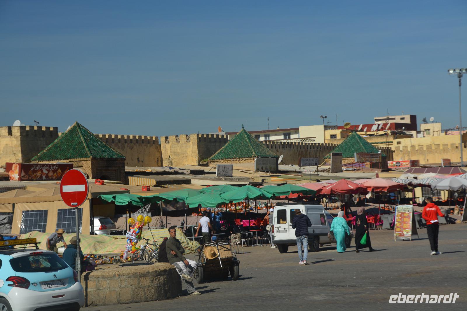 Die Stadt "Volubilis", die unter Septimius Severus ihre Blütezeit hatte, wurde später von Berbern übernommen und im 5.Jahrhundert von den Vandalen erobert. Sehr frühzeitig nahmen die Berber der Stadt den Islam an, der mit "Idris I." nach Marokko Einzug hielt. Schön liegt die Stadt in der nachmittäglichen Sonne. Voll der Eindrücke steuern wir auf einen der Höhepunkte der Reise zu, der Königsstadt Fes. Hier düfen wir ein wenig verschnaufen, denn wir bleiben 2 Tage an dem geschichtsträchtigen Ort Fes, die Stadt der Religion und der Wissenschaften mit einem der kostbarsten Stadtkerne Marokkos. Er wird schon lange von der UNESCO geschützt, wie alle anderen Königsstädte auch.