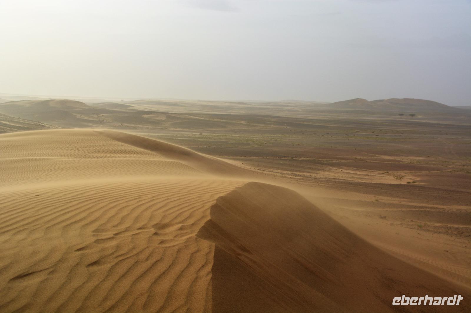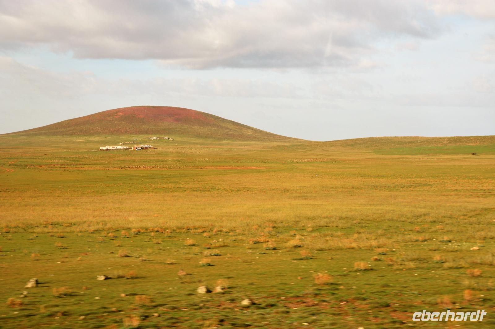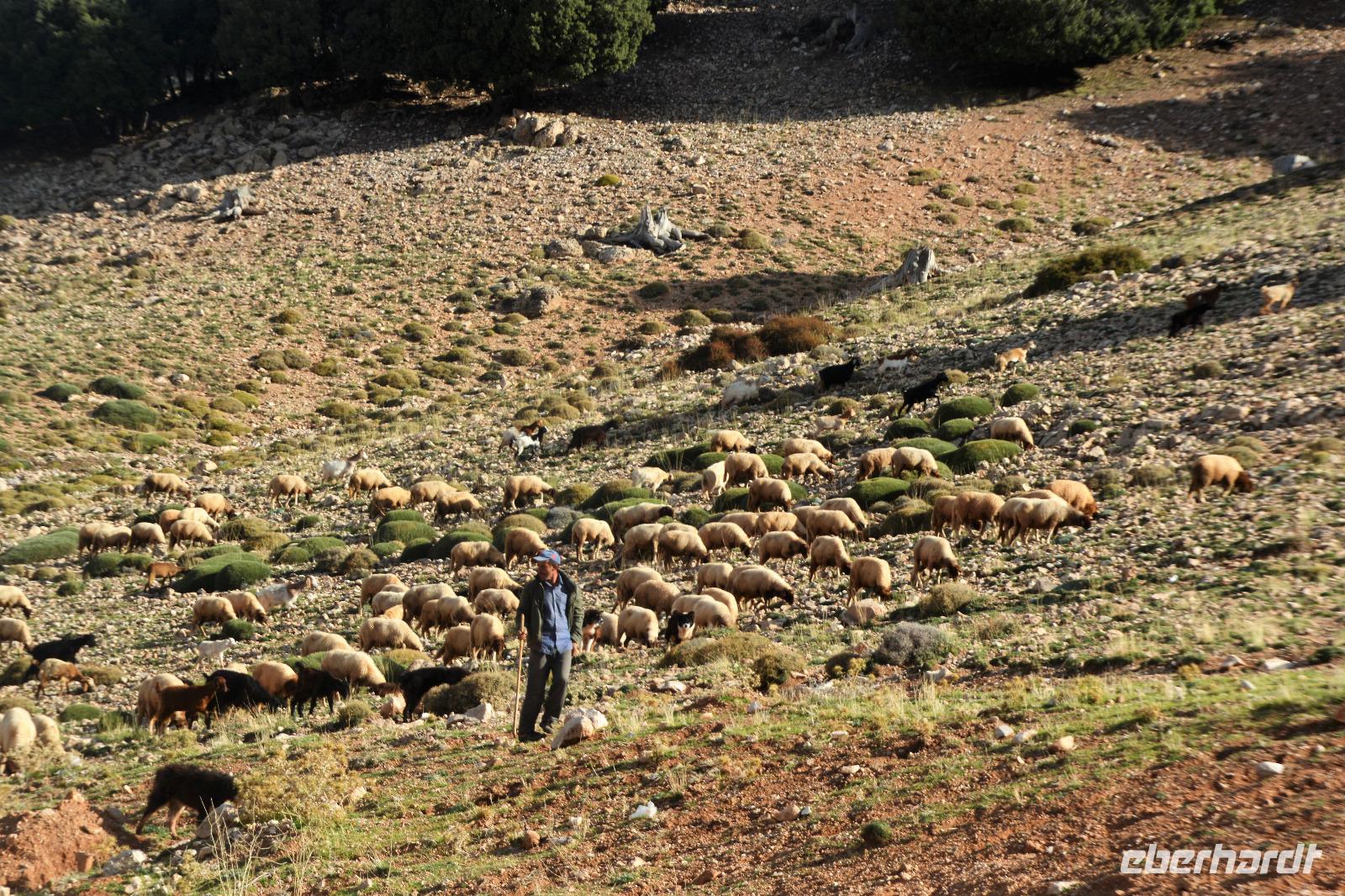 Früh müssen wir los, um unsere "Dünentaxen" rechtzeitig zu erreichen, gilt es doch vorher auf geländegängigen Fahrzeugen zu Ihnen zu gelangen. Doch von vorne. Es ist noch kühl als wir starten und während des Tages werden wir verschiedene Klimazonen durchfahren. Wir müssen zwei wichtige Gebirgszüge, den Mittleren Atlas und den Rand des Hohen Atlas durchqueren, um an den Sahararand zu gelangen. Wir durchfahren das Land der Berber, die Ureinwohner Marokkos. Kleine Marktorte, in denen man an den etwas dickeren Djellabas (Kaftane mit Kapuze) erkennt, daß es wohl hier etwas kühler ist. Beim Aussteigen im Ort Ifrane, einem Wintersportort am Rande des Zedernwaldes, können wir das hautnah spüren. Es sieht hier eher wie in einem französischem Wintersportort aus. Weiter geht es durch den Wald und vergeblich halten wir nach unseren entfernten Verwandten, den Berber-Affen, Ausschau- nun-es ist auch noch sehr früh am Tag. Wir fahren entlang weiter Hochebenen, die von den halbnomadisch lebenden Viehzüchtern schon verlassen wurden. Gina erzählt uns etwas über das Leben der verschiedenen Berbervölker und ihrer Traditionen hier in Marokko. Von deren einfachem Leben, ihrer Sitten und Gebräuche, hat sie doch den Hohen Atlas mehrfach durchwandert. Sie erzählt von der Gastfreundschaft und von dem Gemeinschaftssinn, dieser teilweise noch sehr traditionell lebenden Bevölkerung. Nicht alle alten Traditionen konnten von der streng monotheistischen Religion des Islam getilgt werden, sondern leben in Festen und Zeremonien weiter.