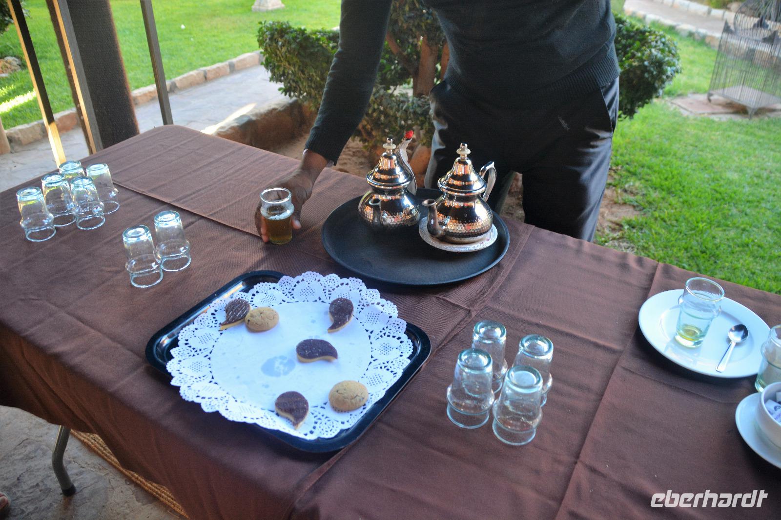 Nun aber haben wir uns einen echten marokkanischen Minztee auf der wohl schönsten Caféterrasse Rabats verdient. Wir fahren zur "Kasbah de Oudaya" um ein wenig durch die befestigte Altstadt von Rabat zu schlendern und den Tag bei Tee und köstlichem Gebäck zu beschließen. Letzte Geschichten von Piraten und Seeräubern Salés, der Nachbarstadt Rabats am Bou Regreg, runden diesen Nachmittagstee ab.