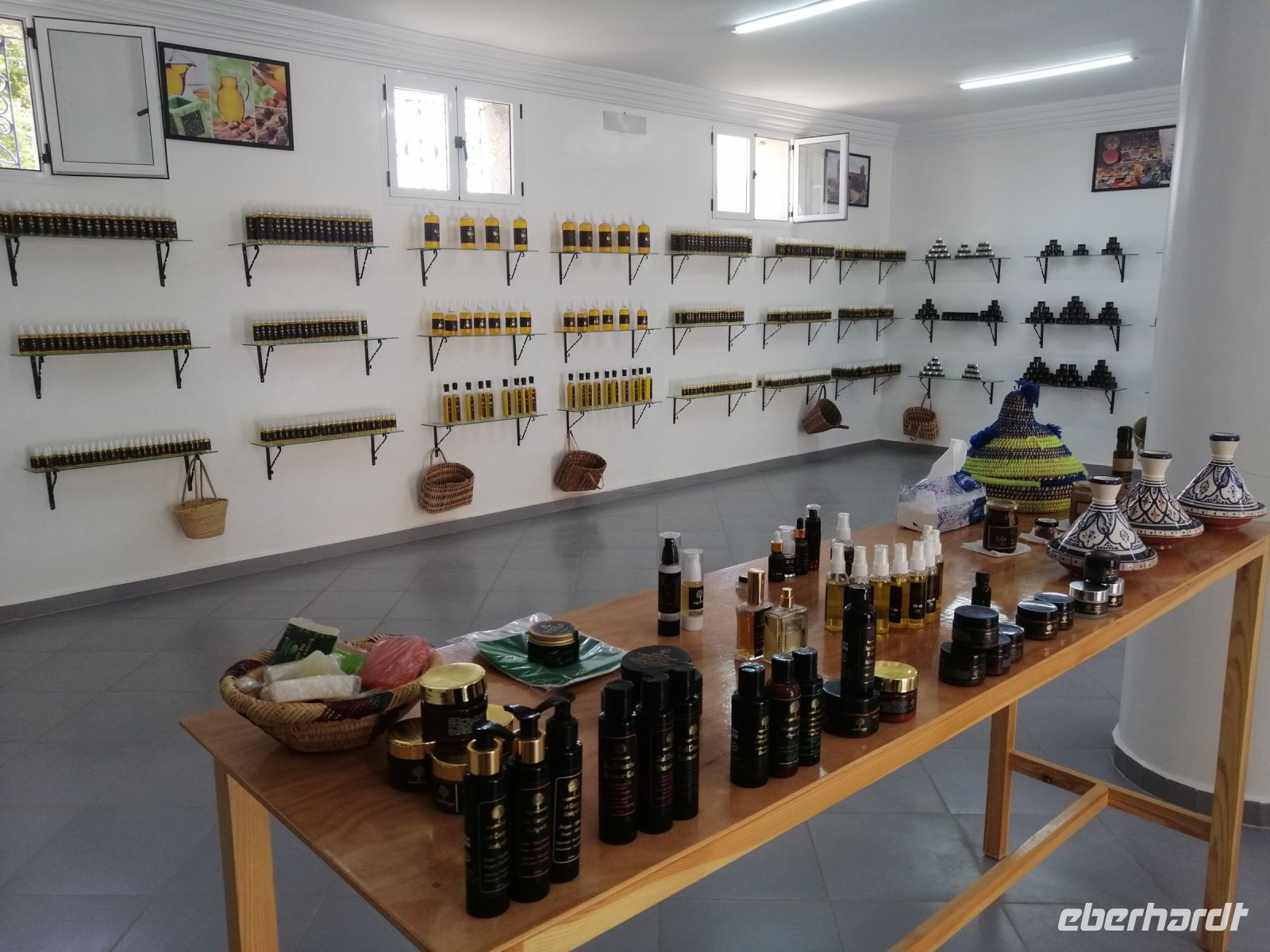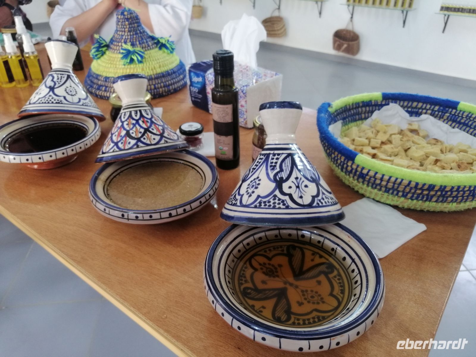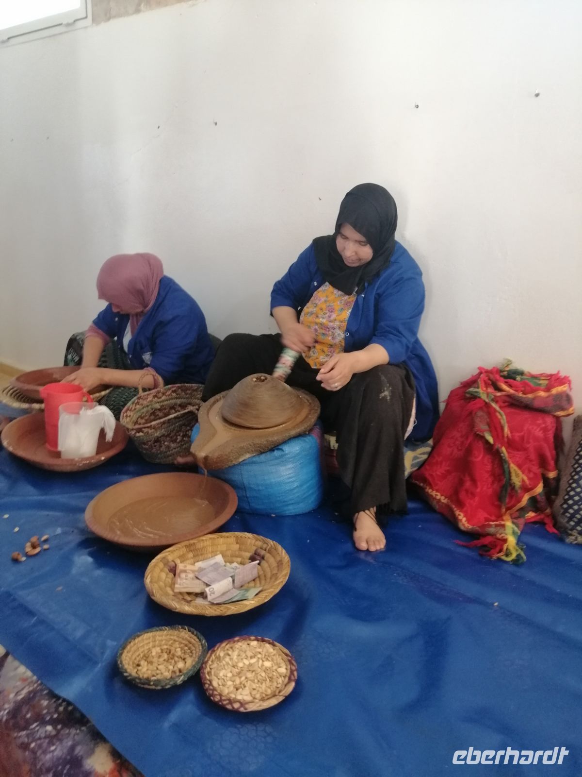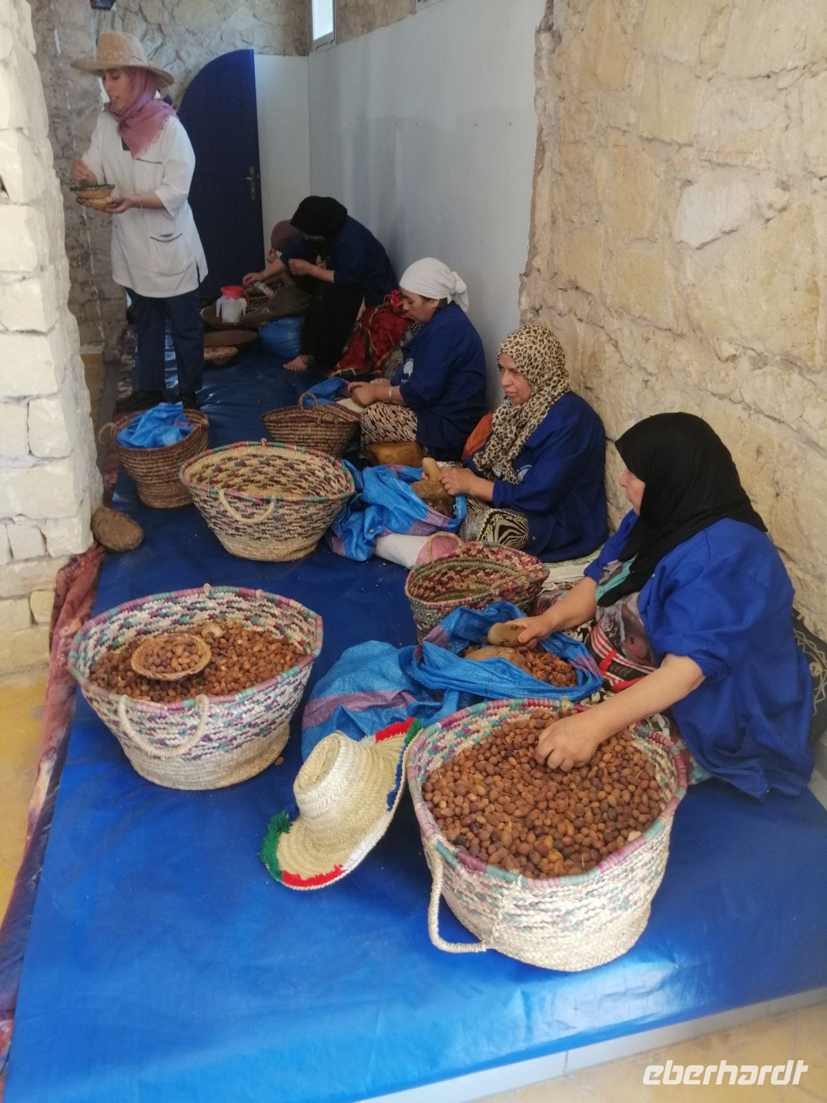 Auf dem Weg nach Essaouira besichtigten wir eine Frauenkooperative, die sich für die Verarbeitung und Produktion von Arganöl spezialisiert hat. Die nette Mitarbeiterin Alischa führte uns durch die Kooperative und zeigte die wichtigsten Arbeitsstufen. Im Jahr 1998 wurde dieses Gebiet zum Biosphärenreservat erklärt. Die Argannuss liefert ein goldgelbes, intensiv nussig-herbes Öl, das sich sowohl als edles Speiseöl als auch als hochwertige Zutat für Naturkosmetik eignet. Mit Recht wird es als das „flüssige Gold Marokkos“ bezeichnet. Das Sammeln und Verarbeiten der Argannüsse ist in Marokko übrigens traditionell Frauensache.
