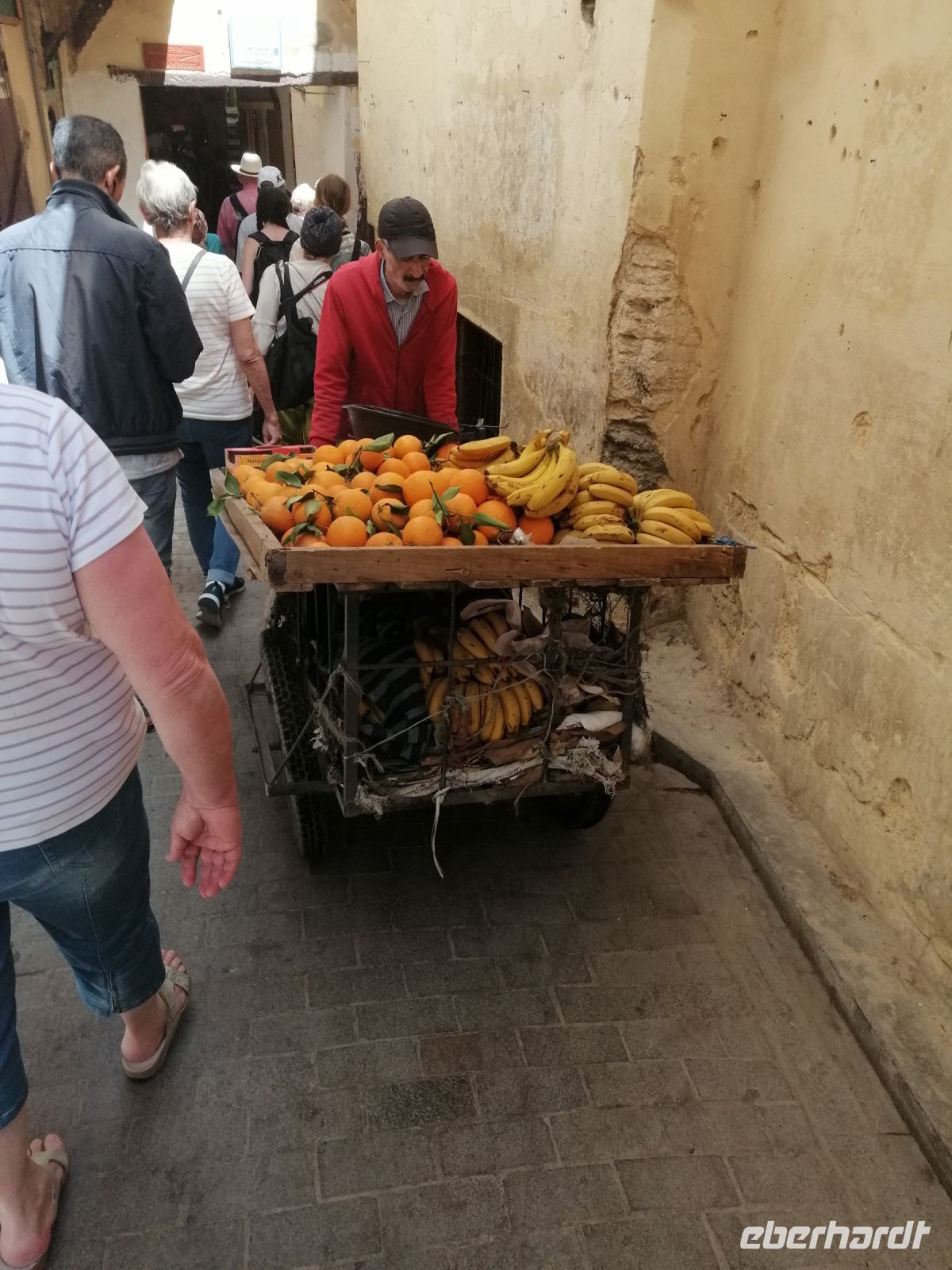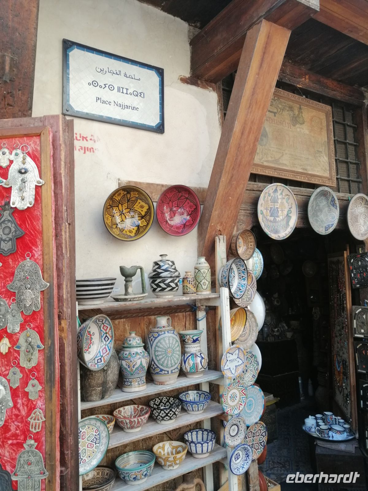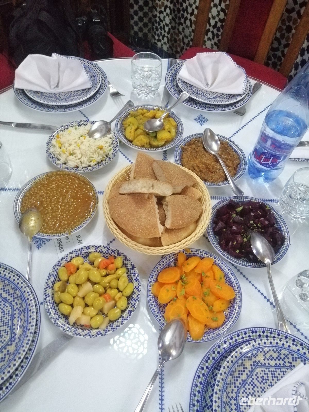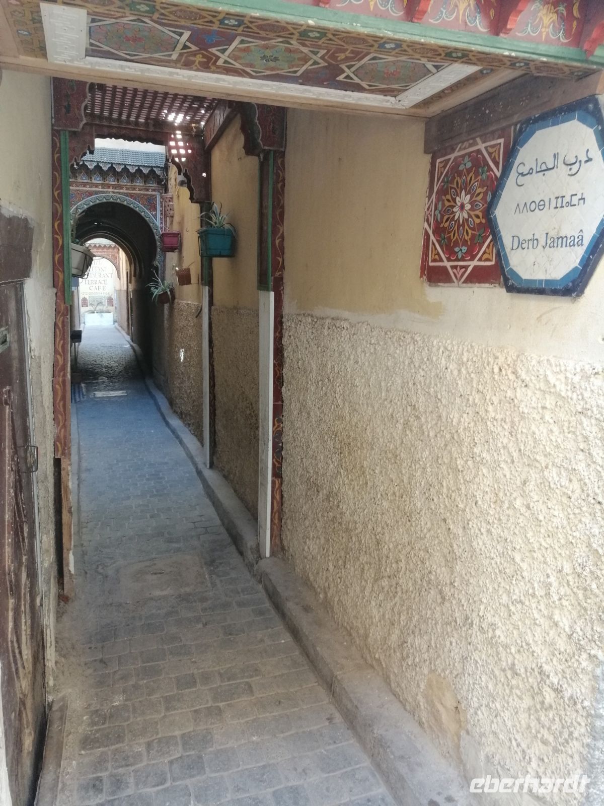 Besonders fasziniert waren wir von der Besichtigung der Medina mit ihren fast 10.000 Gassen und unzähligen Menschen. Die Basare (hier Suks genannt) nahmen uns echt gefangen: ein scheinbar grenzenloses Labyrinth verwinkelter, schmaler Gässchen, eingeteilt nach den einzelnen Gewerben und davon muss es Hunderte geben und fast jeder verrichtete seine Arbeit in aller Öffentlichkeit. Wir tauchten in die Gerüche der angebotenen Kräuter ein, schauten den Handwerken über die Schulter zu und versuchten ab und zu energetisch mit den Händlern zu verhandeln. Nach der kurzen Verschnaufpause auf dem Platz der Tischler, setzten wir unsere Stadtführung durch die Gassen der Medina fort, bis wir zu unserem Restaurant Typiquehent Marocain gelangt sind, wo Said für uns ein typisch marokkanisches Mittagessen organisierte!