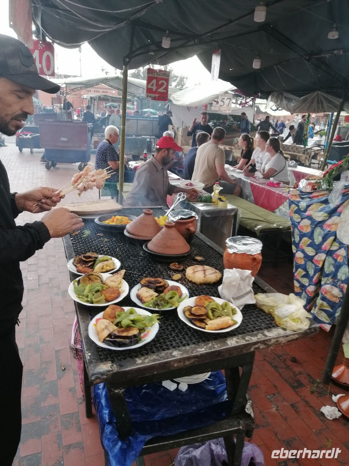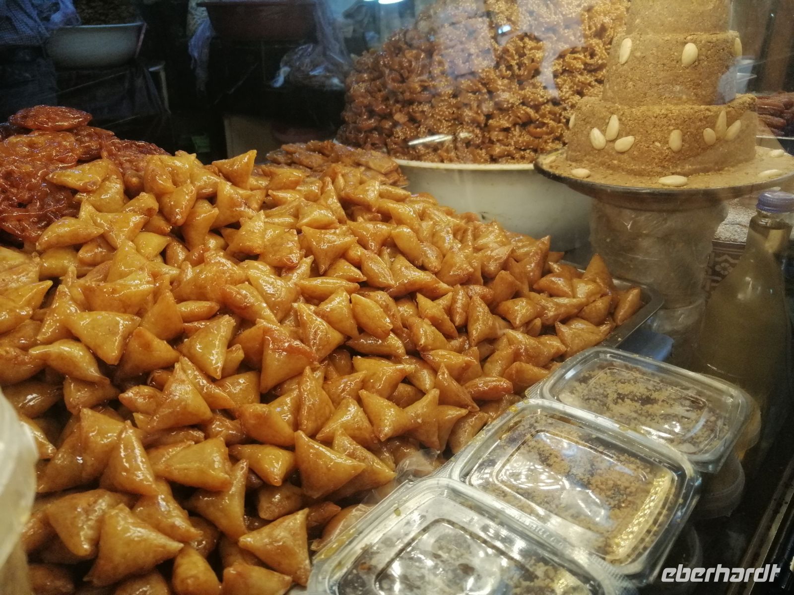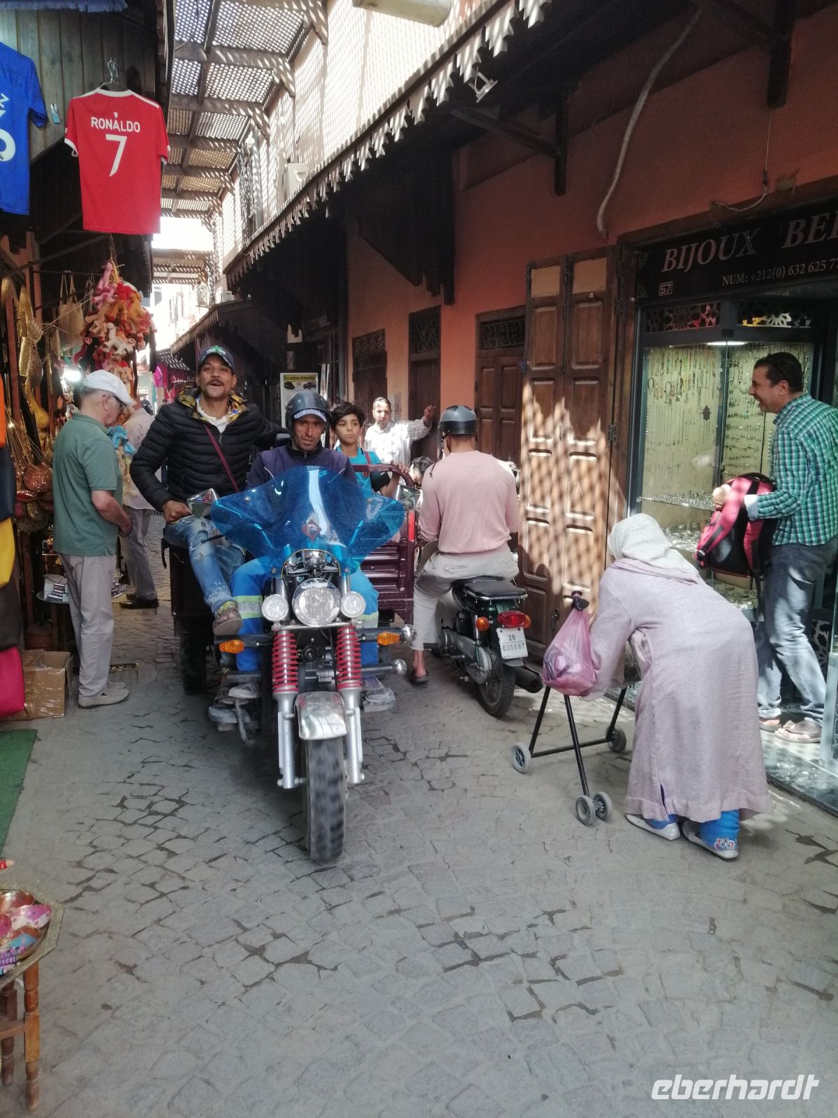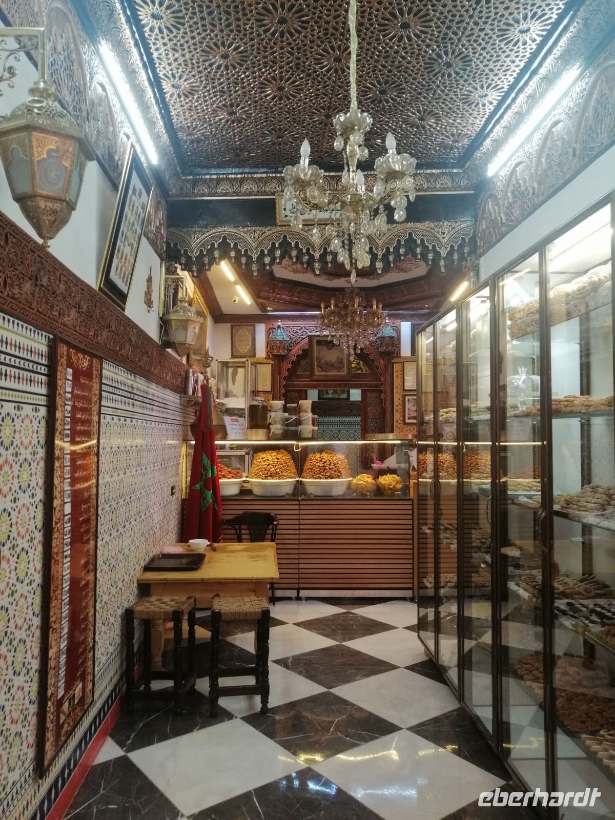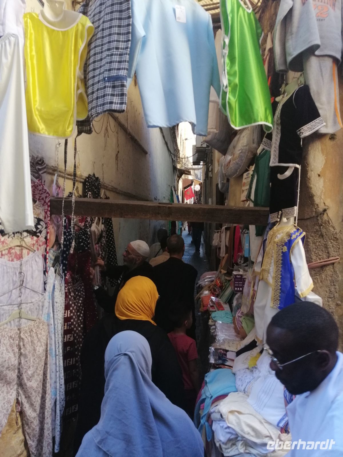 Besonders fasziniert waren wir von der Besichtigung der Medina mit ihren fast 10.000 Gassen und unzähligen Menschen. Die Basare (hier Suks genannt) nahmen uns echt gefangen: ein scheinbar grenzenloses Labyrinth verwinkelter, schmaler Gässchen, eingeteilt nach den einzelnen Gewerben und davon muss es Hunderte geben und fast jeder verrichtete seine Arbeit in aller Öffentlichkeit. Wir tauchten in die Gerüche der angebotenen Kräuter ein, schauten den Handwerken über die Schulter zu und versuchten ab und zu energetisch mit den Händlern zu verhandeln. Nach der kurzen Verschnaufpause auf dem Platz der Tischler, setzten wir unsere Stadtführung durch die Gassen der Medina fort, bis wir zu unserem Restaurant Typiquehent Marocain gelangt sind, wo Said für uns ein typisch marokkanisches Mittagessen organisierte!