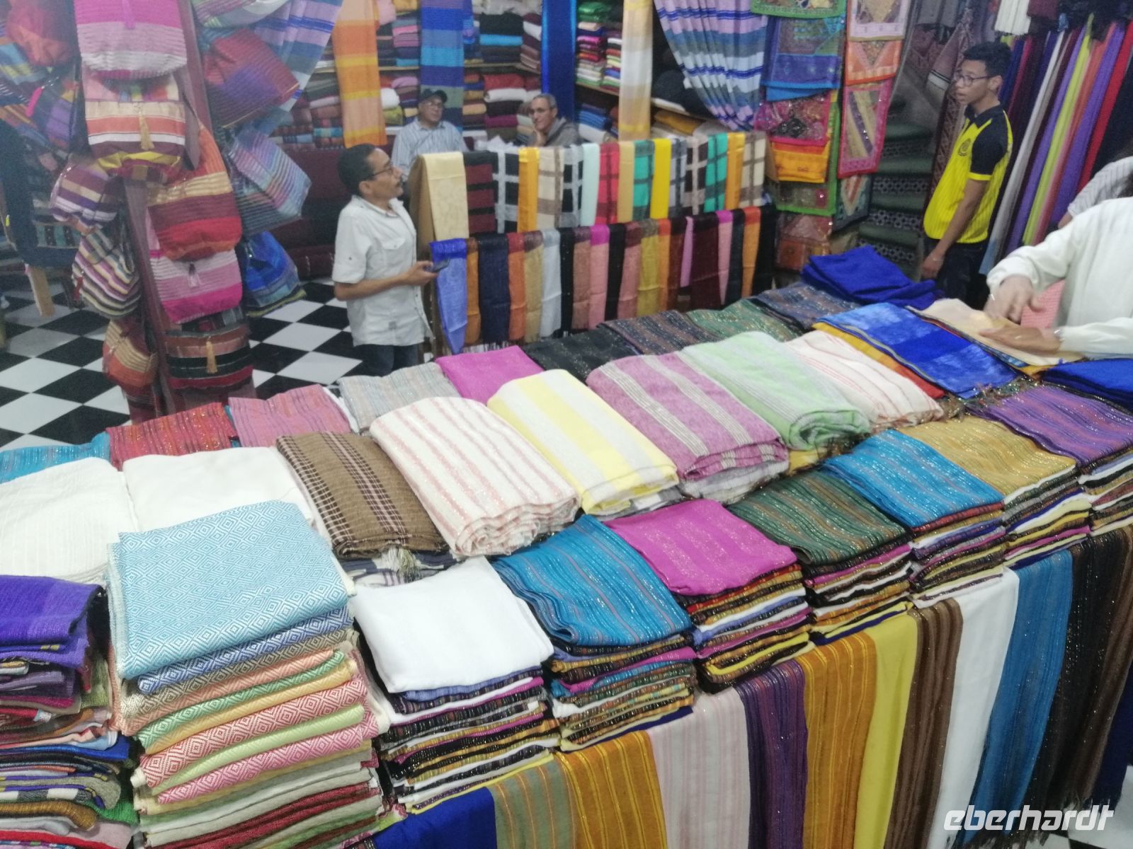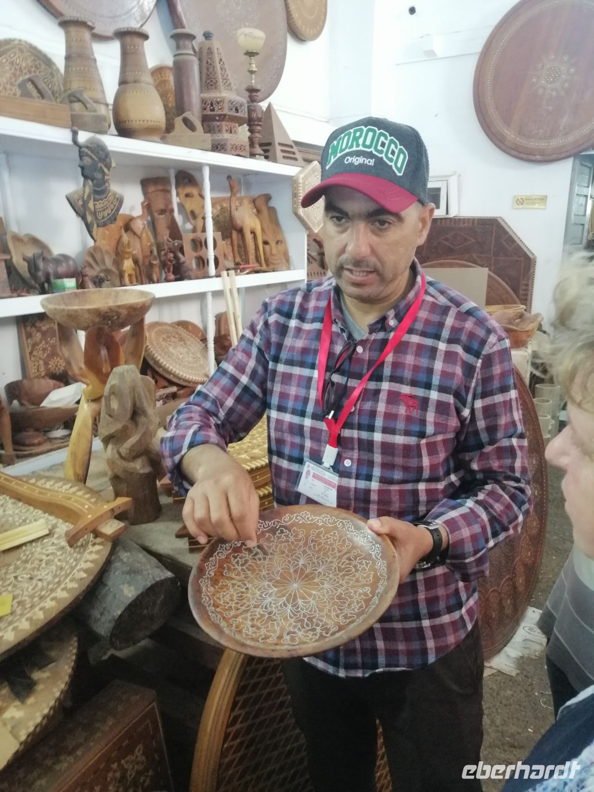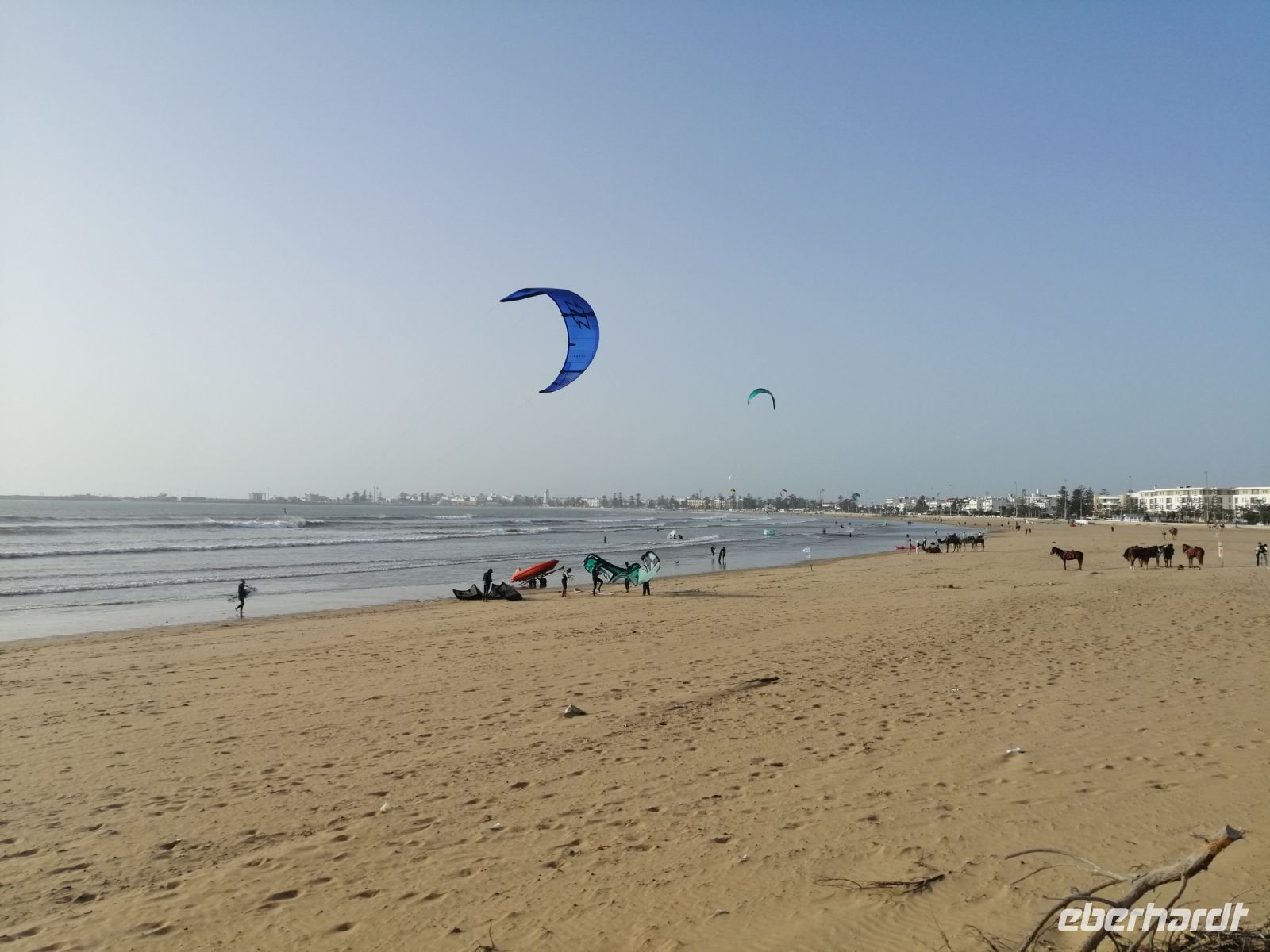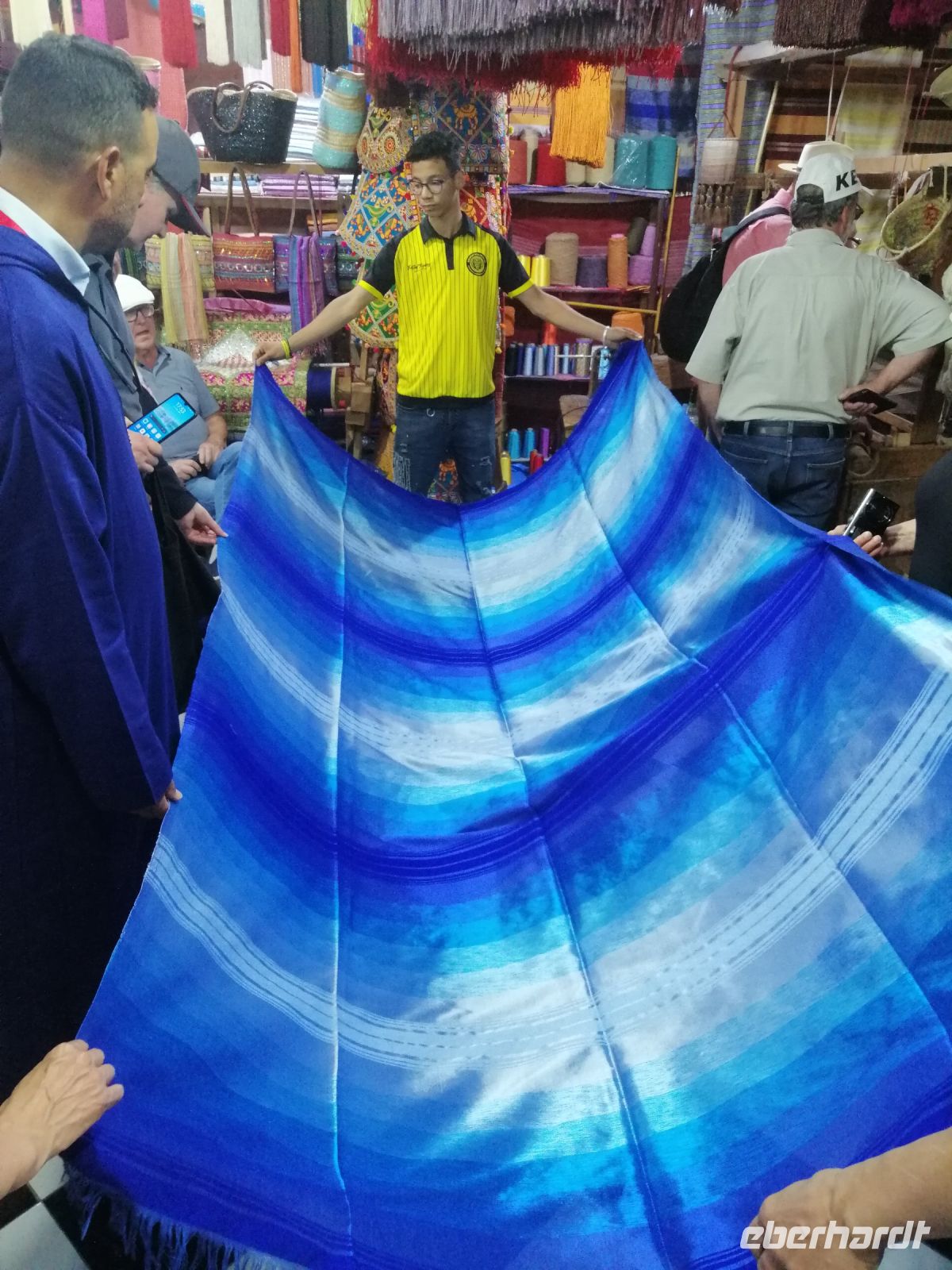 Nach der Ankunft in Essaouira gegen Mittag, unternehmen wir einen Rundgang durch den Hafen und schauten uns das Treiben der Fischer und der Händler an. Anschließend ging es durch das „Tor der Marine“, auf dem alle Religionen abgebildet sind, Richtung Medina von Essaouira. Die Stadt ist für hervorragende und kunstvolle Intarsienarbeiten aus verschiedenen Holzarten, vor allem Zitronenbaum- und Ebenholz sehr bekannt. In einer Holzwerkstatt wurden einige Reisegäste findig und erwarben wunderschöne Holzprodukte. Während der weiteren Erkundung der Altstadt von Essaouira spazierten wir durch die engen Gassen der Medina, mit ihrer vielen Händlern, bis zur Bastion Nord – eine Art Festung an der Küstenpromenade. Der Nachmittag stand dann allen Gästen zur freien Verfügung. Einige nutzten die Zeit für einen Küstenspaziergang und beobachteten viele Kite- und Windsurfer, denn die Region um Essaouira wird vom Passat zwischen April und Anfang Oktober mit Wind versorgt. Das Wasser im Atlantik ist kühl, im Sommer etwa 22° Grad im Frühjahr 18° Grad. Dadurch hat die Region auch im Hochsommer ein angenehmes Klima. Der Temperaturkontrast zwischen Meer und Hinterland sorgt für eine thermische Verstärkung und beschleunigt den Passat hier mit großer Beständigkeit auf 6 – 8 Beaufort (starker Wind), besonders in den Hochsommermonaten Juli und August. Der Wind setzt morgens ab ca. 9 Uhr langsam ein und steigert sich im Laufe des Tages auf Maximalstärke. Die Faustregel in Marokko lautet: im Sommer ist der Wind stark und die Wellen bleiben klein, im Winter ist es umgekehrt.