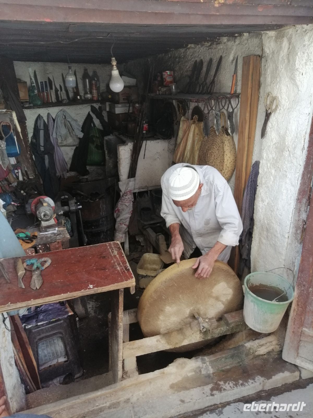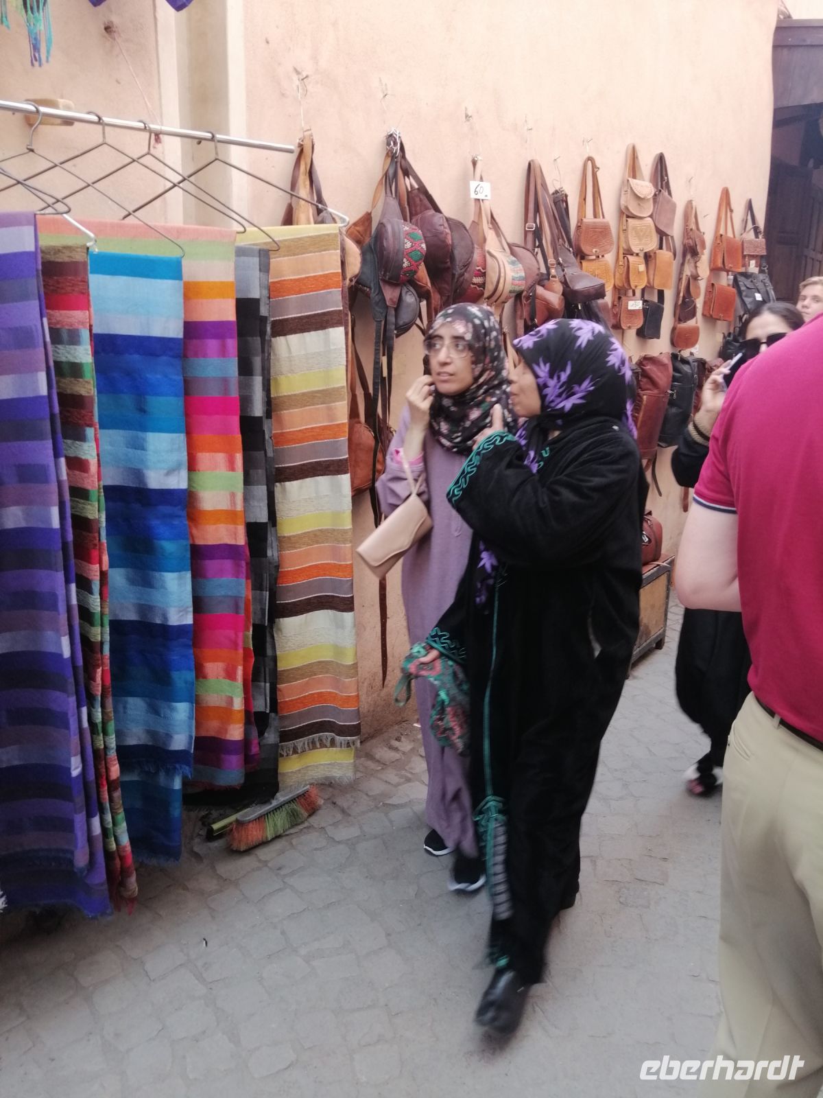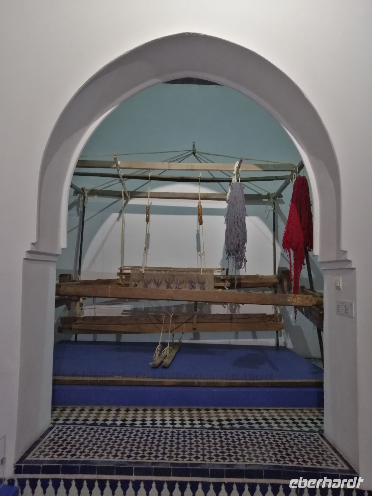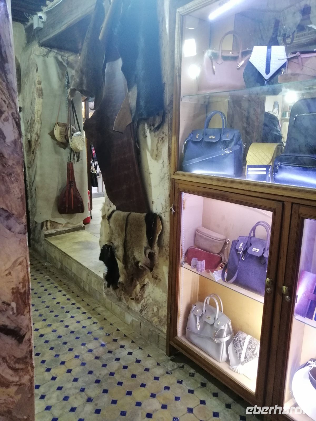 Nachmittag besichtigten wir noch ein Hamam und das Viertel der Schleifer, bevor wir die berühmte Gerberei von Fes auf Rue Chouara erreichten, die als eine Genossenschaft arbeitete. Im Rahmen einer kurzen Führung wurden wir über die Arbeitsabläufe der Leder-Gerbung in Antike, im Mittelalter und heute vertraut gemacht und schauten uns anschließend die hier hergestellten Produkte aus Rind-, Ziege- und Dromedarleder im Verkaufsraum an. Der anschließende Besuch in einer Agaven-Seiden-Werkstatt vermittelte uns einen guten Überblick über die Arbeitsweise und die Qualität der Handwerke. Die sehr intensive Stadtbesichtigung von Fes beendeten wir symbolisch mit einer Verabschiedung von der Stadt auf einer Aussichtsplattform, von der aus die ganze Stadt zu sehen war.