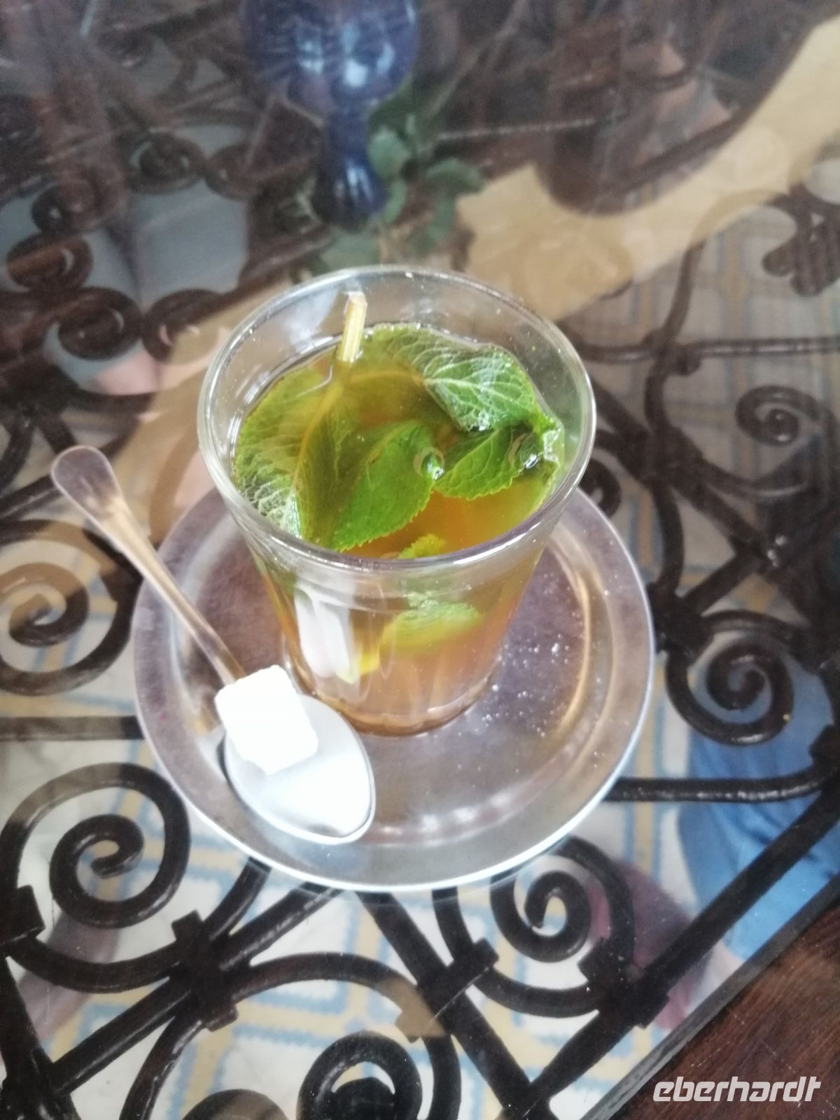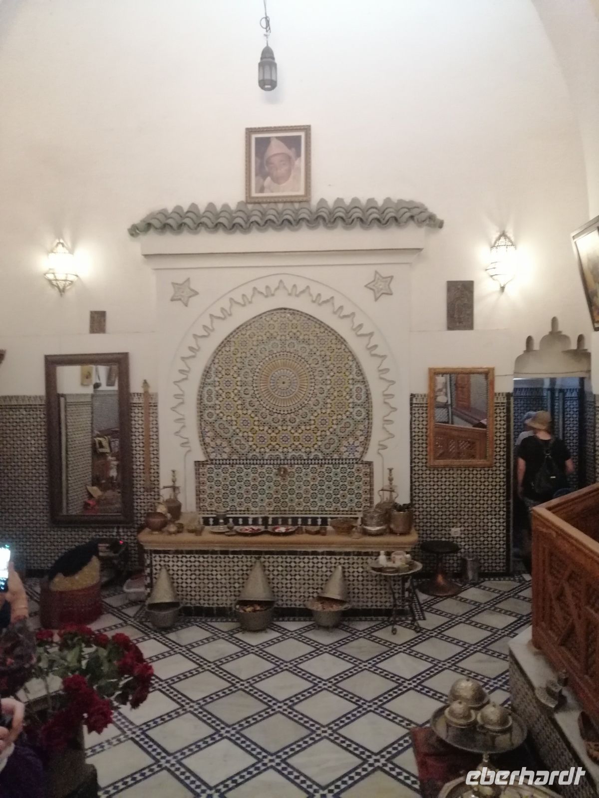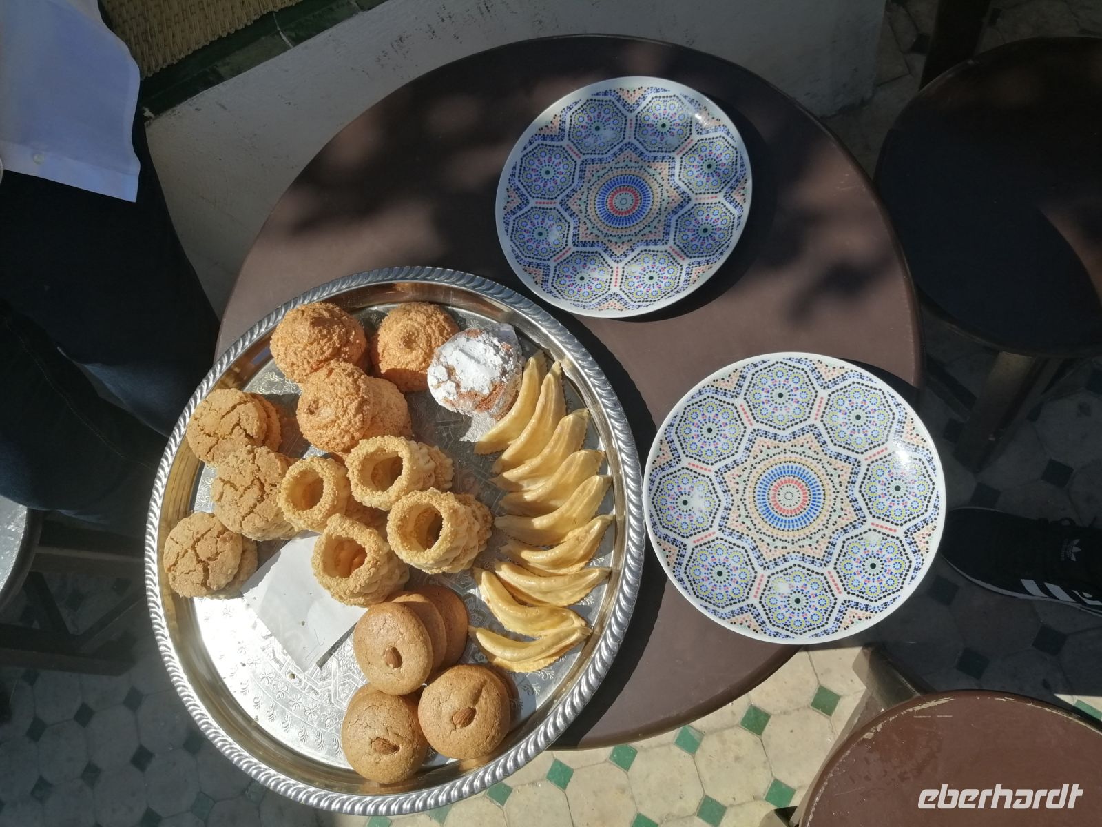 Stark von den Saadier-Gräber beeindruckt, setzten wir unseren Stadtrundgang durch das jüdische Viertel der Medina, Mellah genannt, fort und schauten uns eine hebräische Schule von außen an. Inzwischen war die Zeit für eine Teepause reif, die wir in einem Terrassen-Café (Palais El Badia) verbrachten und für eine nette Vorstellungsrunde nutzten.