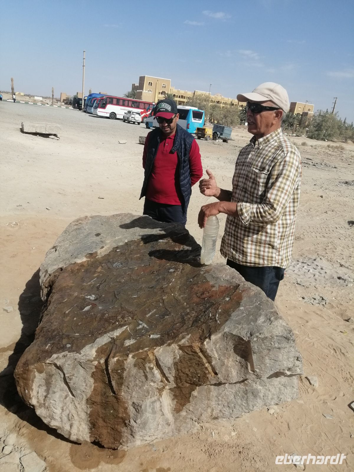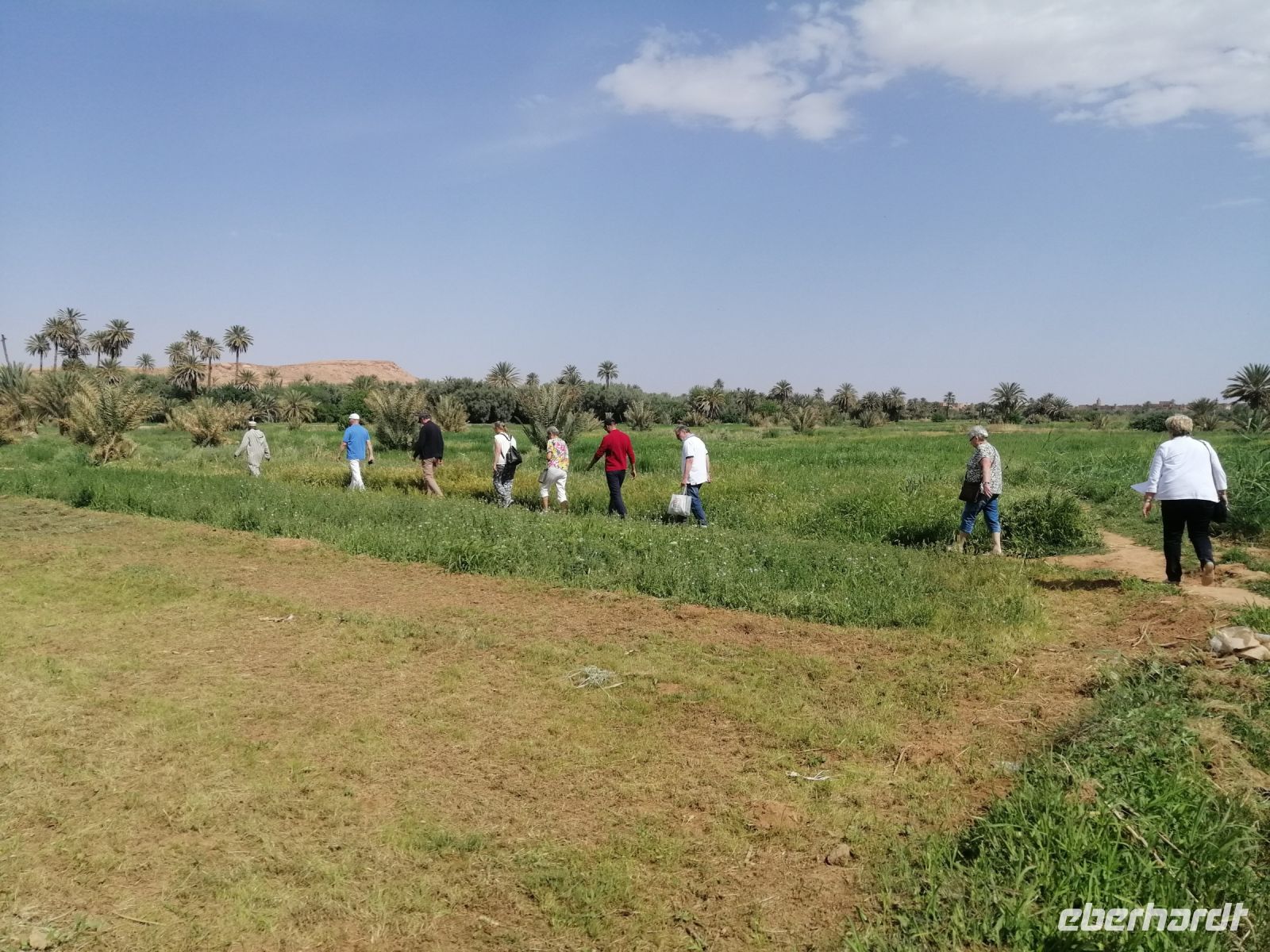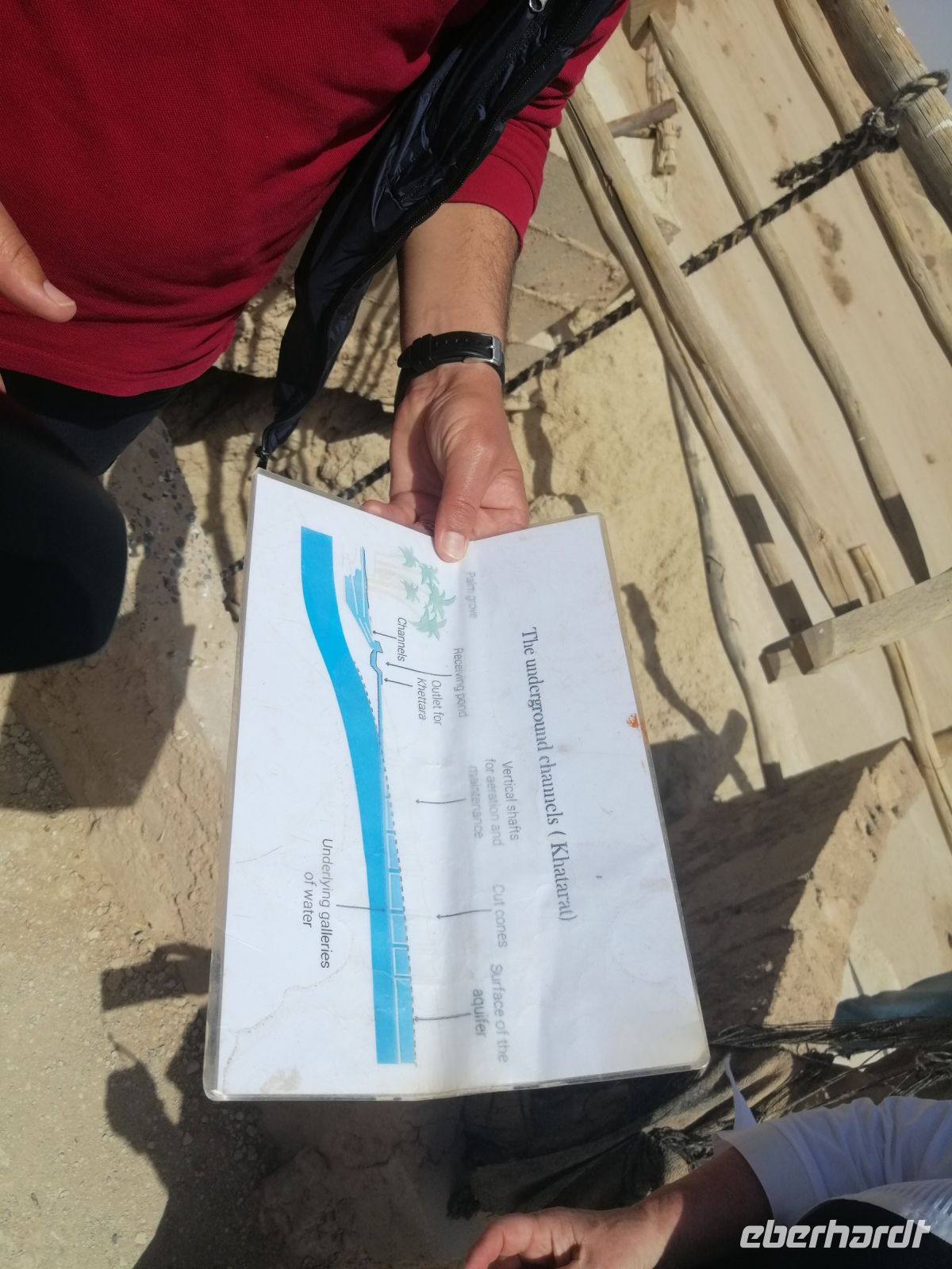 Im Reisebus informierte uns Said über die verschiedenen Dattelpalmen – es soll über 450 Arten davon geben – und die Besonderheiten der Dattelernte im Oktober. Außerdem erfuhren wir von Said über die marokkanischen Heilbad-Prozeduren: eine Art Sandbad in der Wüste, wo die Menschen sich in heißen Sand eingraben, um bestimmte Krankheiten zu heilen. Nachdem Said uns über die verschiedenen Dynastien der marokkanischen Geschichte (Almoraviden, Almohaden und vor allem über Alaouiten) und die Unterschiede zwischen Schiiten und Sunniten erklärte, verging die Zeit im Bus wie im Flug, bevor wir sogenannte Khettara erreichten und dort eine Besichtigung unternahmen. Dabei handelte es sich um eine traditionelle Form der Frischwasserförderung in Wüstengebieten.
