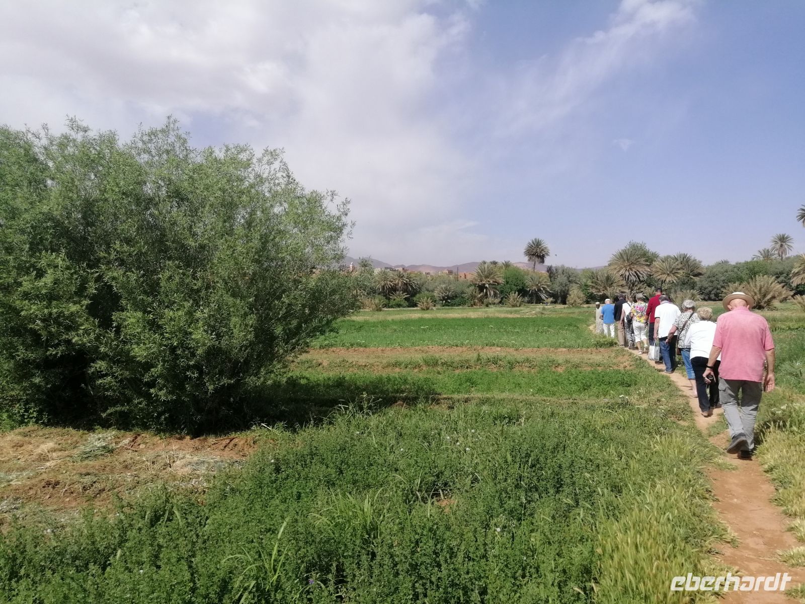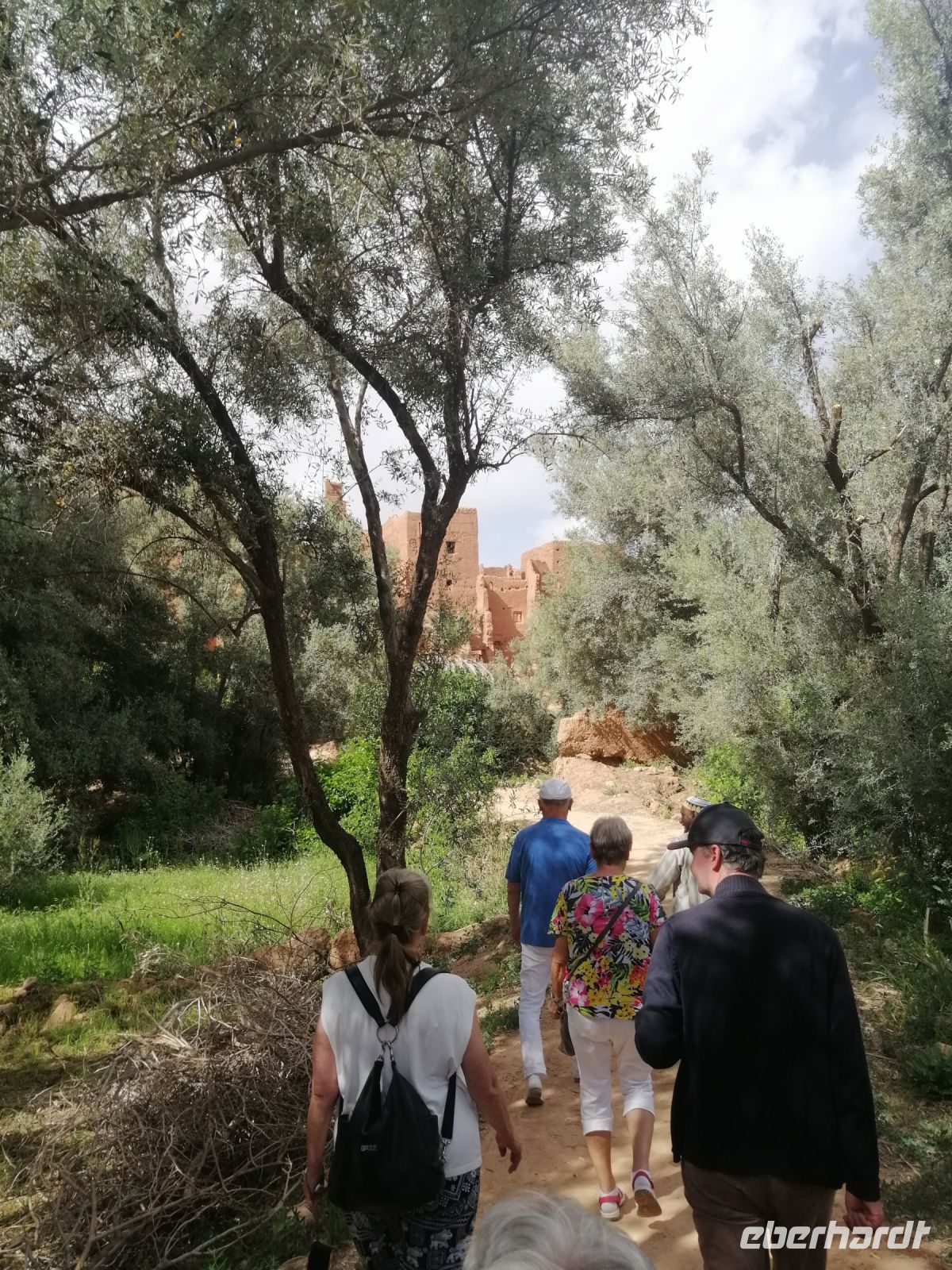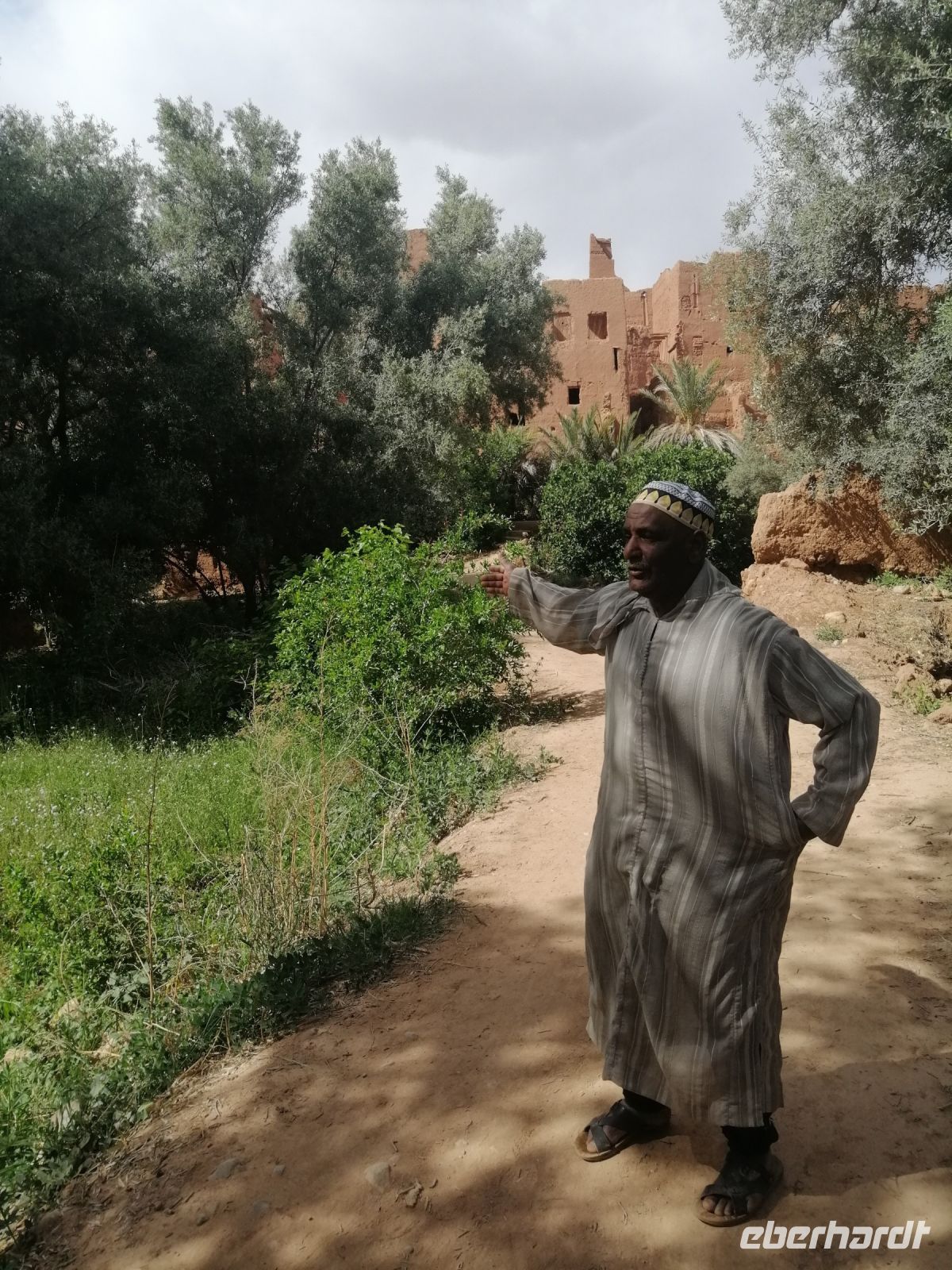 Im Reisebus informierte uns Said über die verschiedenen Dattelpalmen – es soll über 450 Arten davon geben – und die Besonderheiten der Dattelernte im Oktober. Außerdem erfuhren wir von Said über die marokkanischen Heilbad-Prozeduren: eine Art Sandbad in der Wüste, wo die Menschen sich in heißen Sand eingraben, um bestimmte Krankheiten zu heilen. Nachdem Said uns über die verschiedenen Dynastien der marokkanischen Geschichte (Almoraviden, Almohaden und vor allem über Alaouiten) und die Unterschiede zwischen Schiiten und Sunniten erklärte, verging die Zeit im Bus wie im Flug, bevor wir sogenannte Khettara erreichten und dort eine Besichtigung unternahmen. Dabei handelte es sich um eine traditionelle Form der Frischwasserförderung in Wüstengebieten.