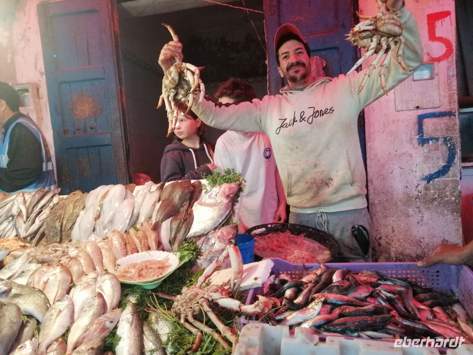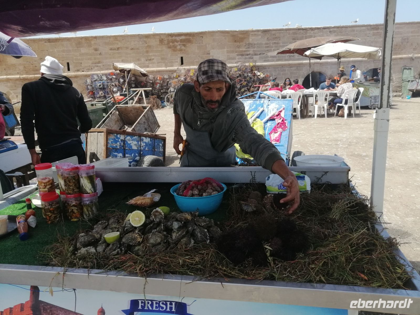Während der Weiterfahrt beobachteten wir entweder den Küstenstreifen der Atlantik auf der linken Seite oder die Bauernfelder auf der rechten Seite, bis wir schließlich in der Küstenstadt El Oualidia eine längere Mittagspause machten und uns in dem wunderschönen Fischreataurant „L Araignée Gourmande“ stärkten.