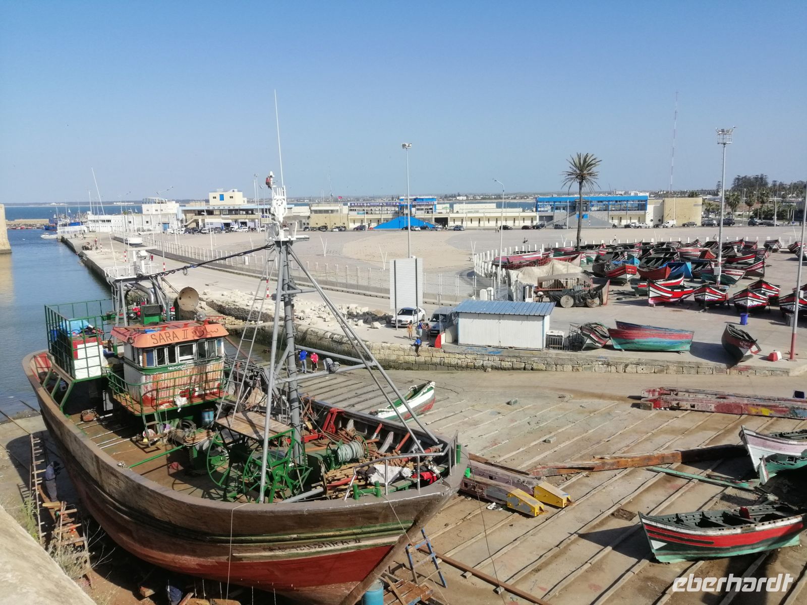 In Safi machten wir eine kurze Fotostopp-Pause und während uns Said über die Rohstoffe, die in der Region gewonnen werden: Steinkohle, Silber, Kobalt, Mangan, Phosphat erzählte, wurden wir von der sogenannten Verkehrspolizei (Controle Routier), die für Busse und Lkw´s zuständig ist, angehalten und kontrolliert: es war alles in Ordnung!