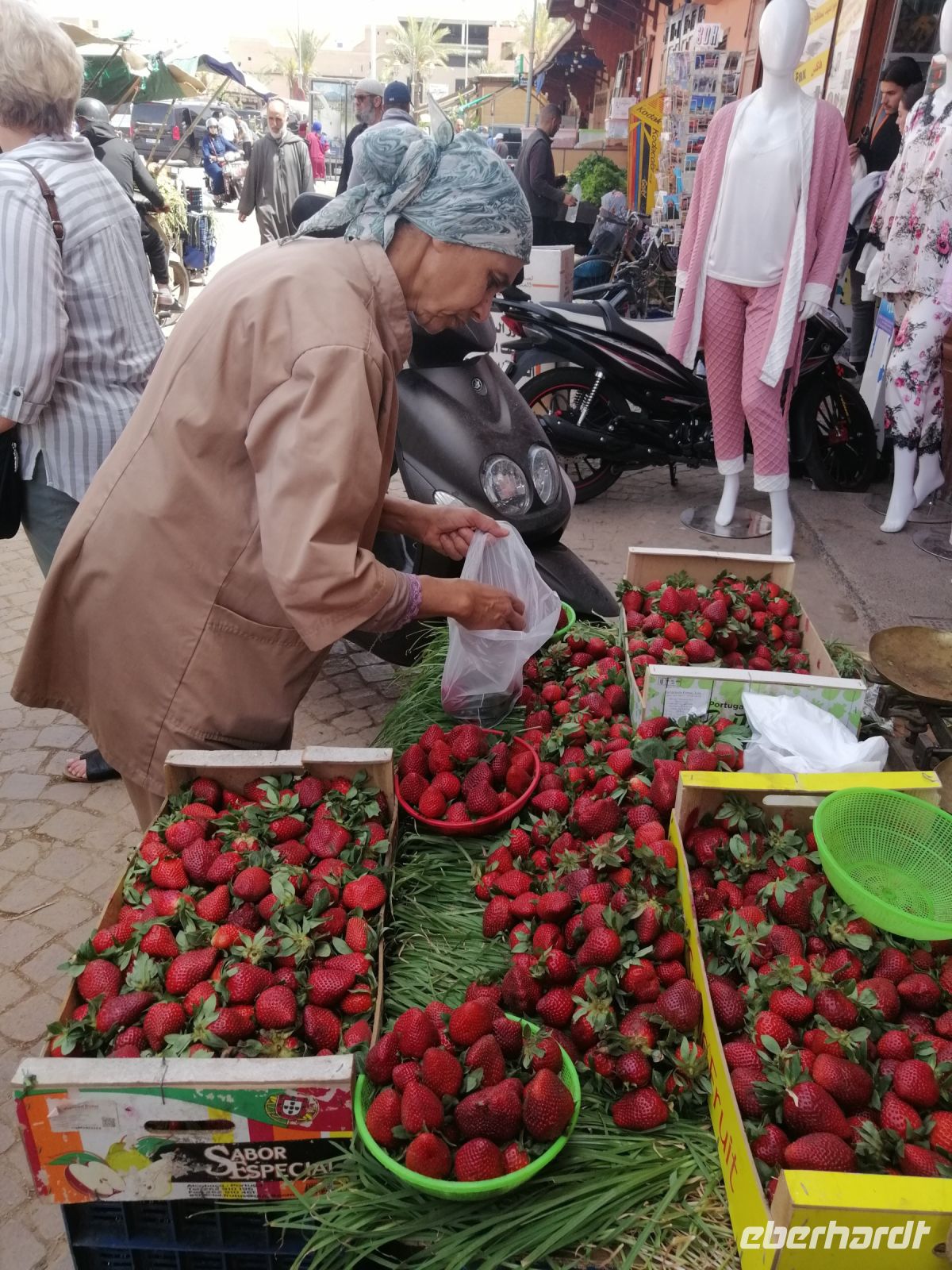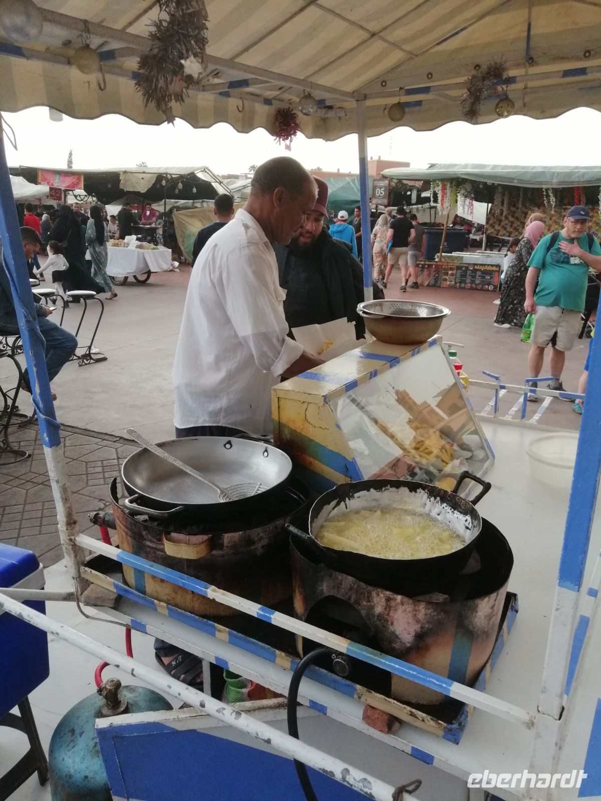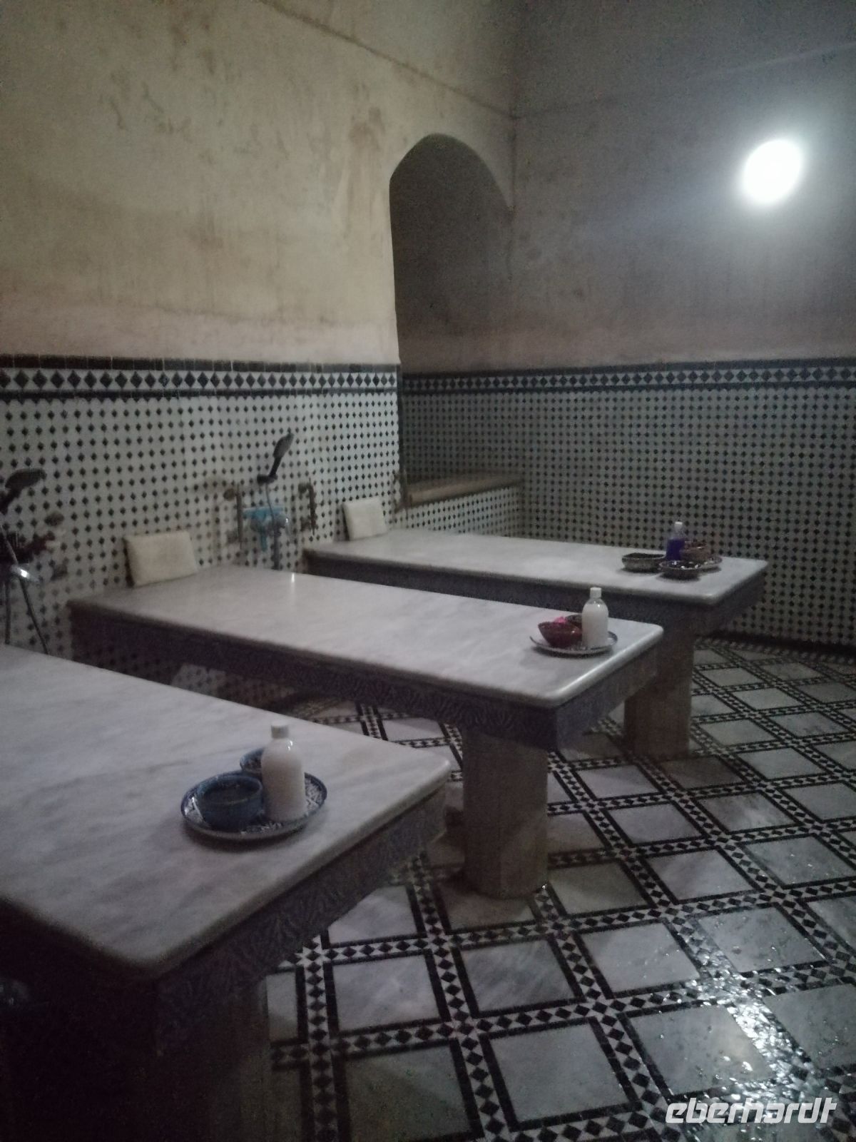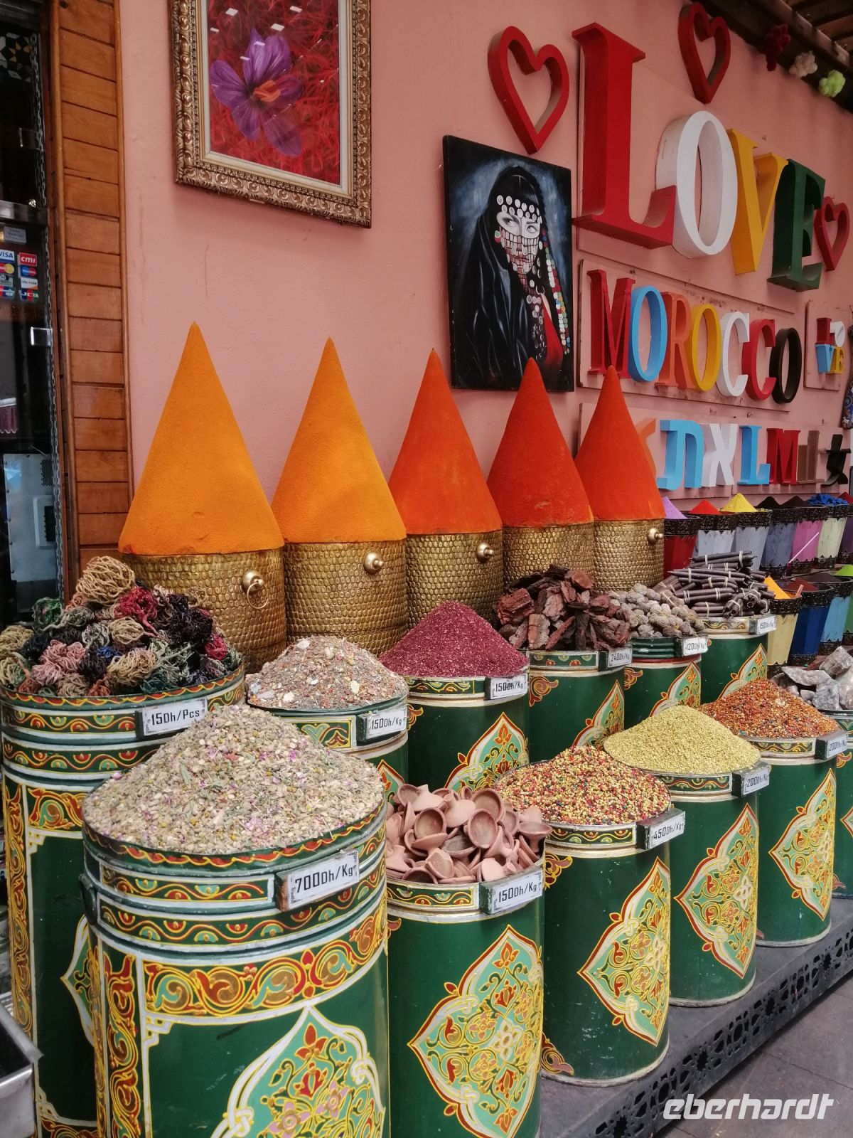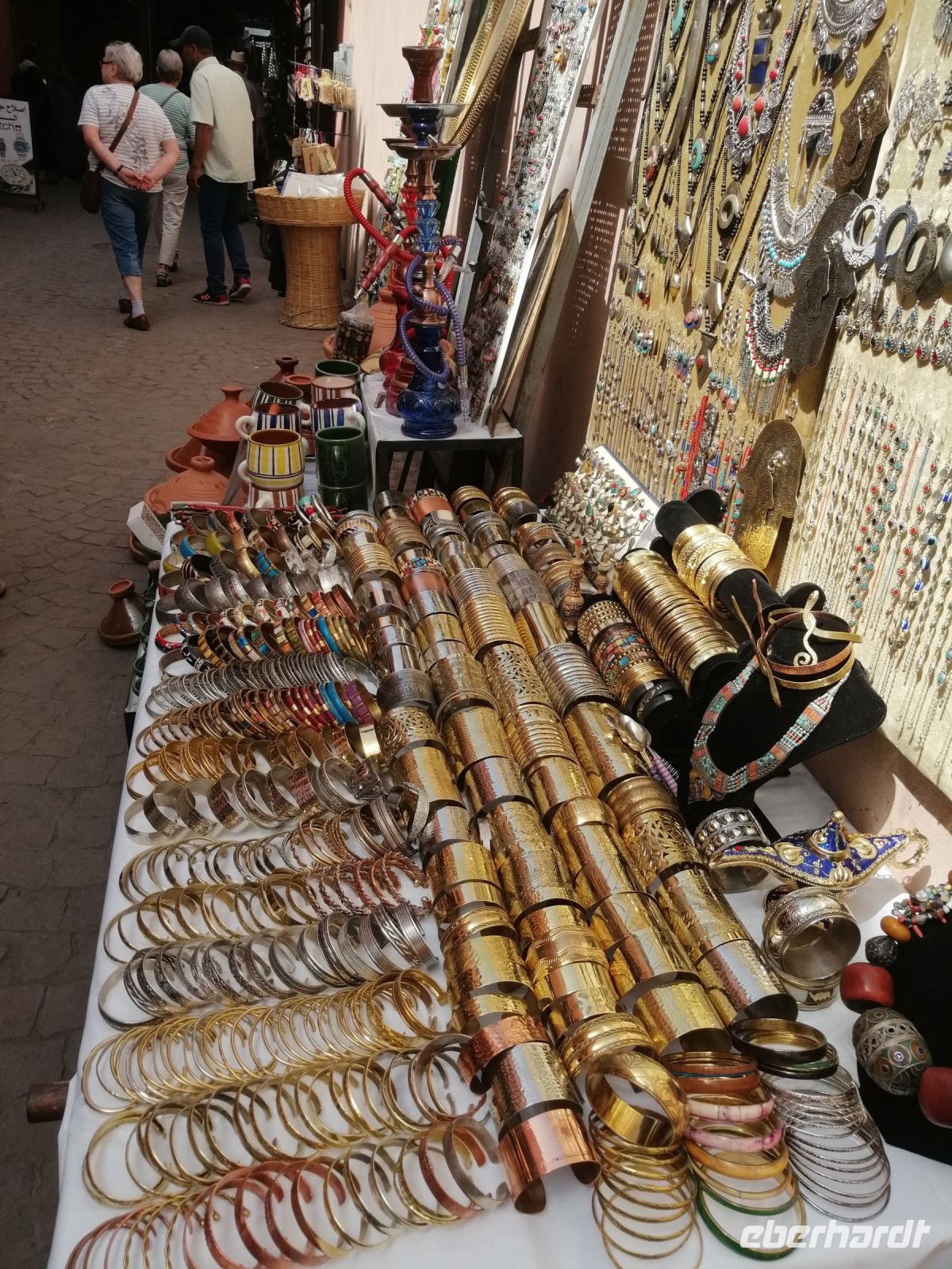 Anschließend fuhr unsere Reisegruppe Richtung Marrakesch und wir überquerten den 2.260 Meter hohen Tichka-Pass im Atlasgebirge. Am späten Nachmittag erreichten wir dann Marrakesch und unternehmen einen Stadtrundgang durch die Medina: wir schauten und das Handwerkerviertel (Schlösser, Schuhmacher, Blechformer, Tischler uvm.) an und besuchten eine Apotheke, in der uns die einheimischen Heil- und Kosmetikprodukte erklärt und präsentiert wurden. Sogar eine Massage konnten einige Reisegäste dort erleben. Unser letzter Abend in Marokko verbrachten wir im traditionellen Restaurant Al Baraka direkt am Gauklerplatz.