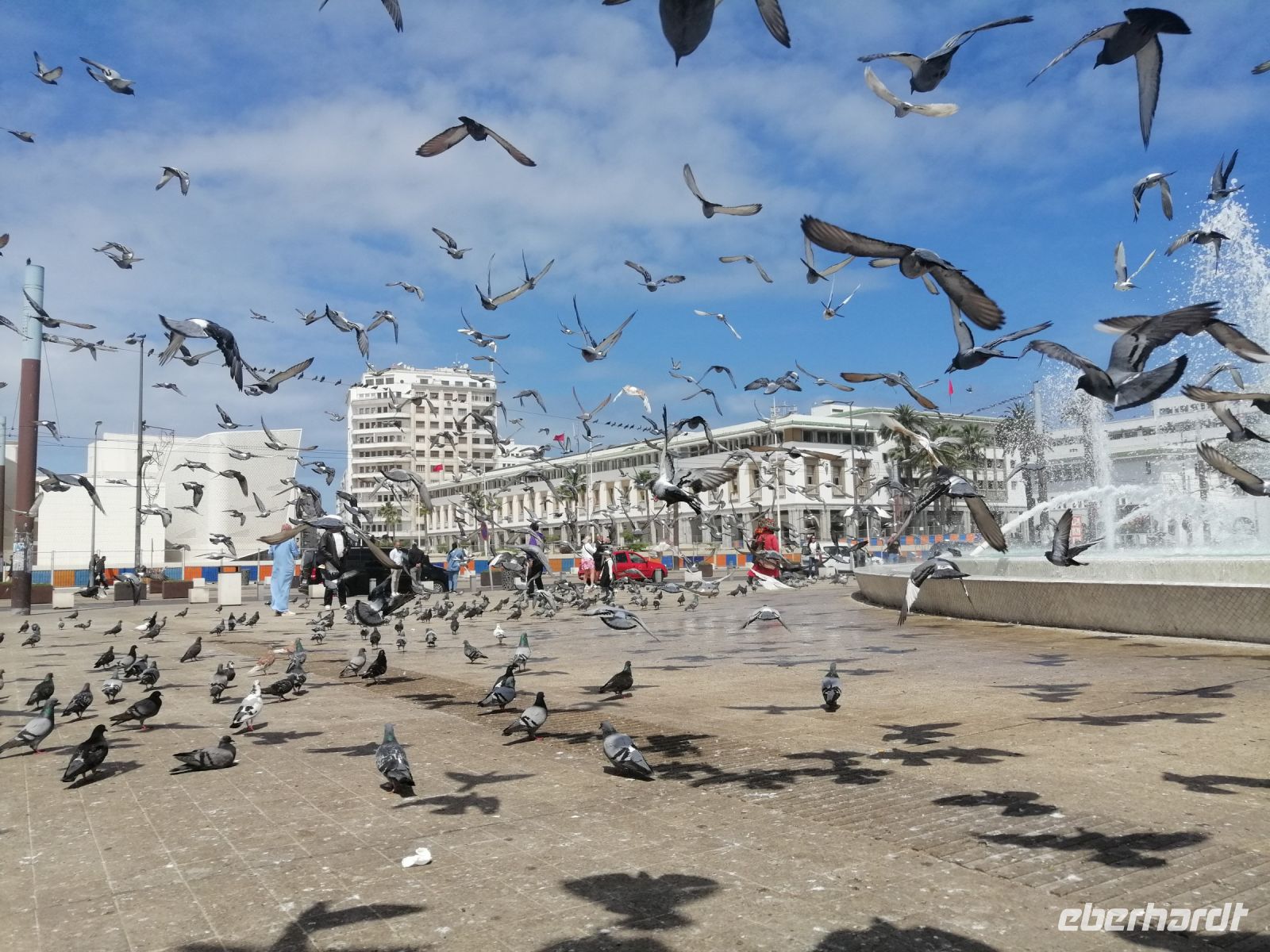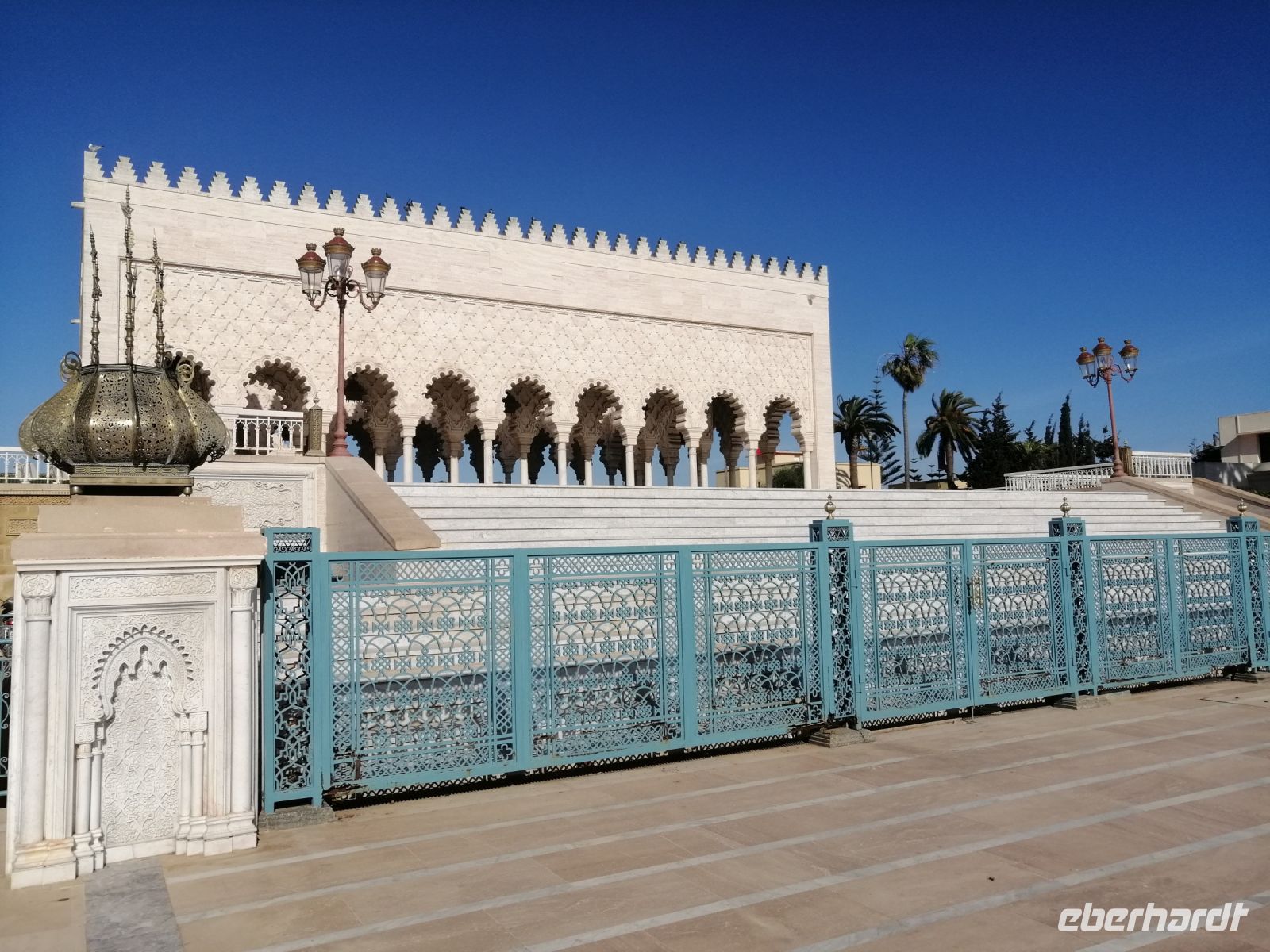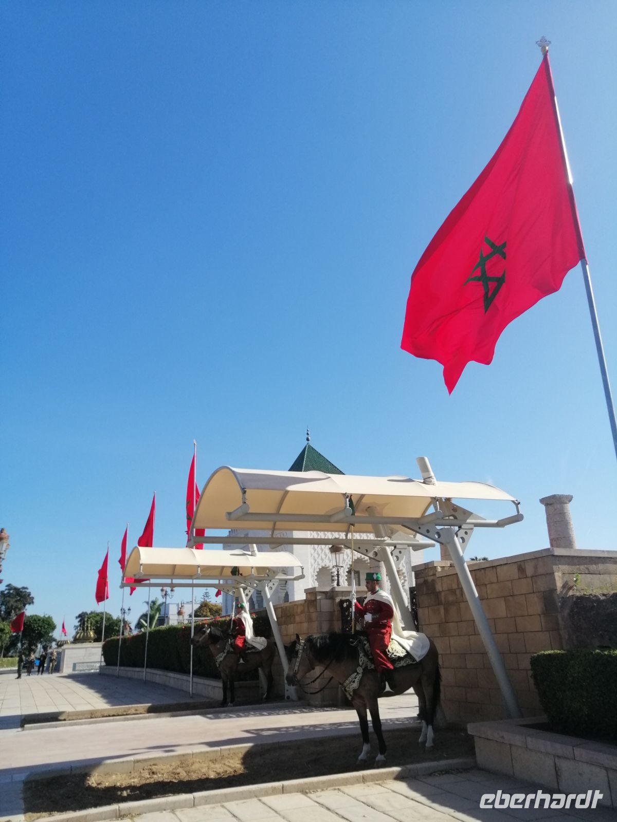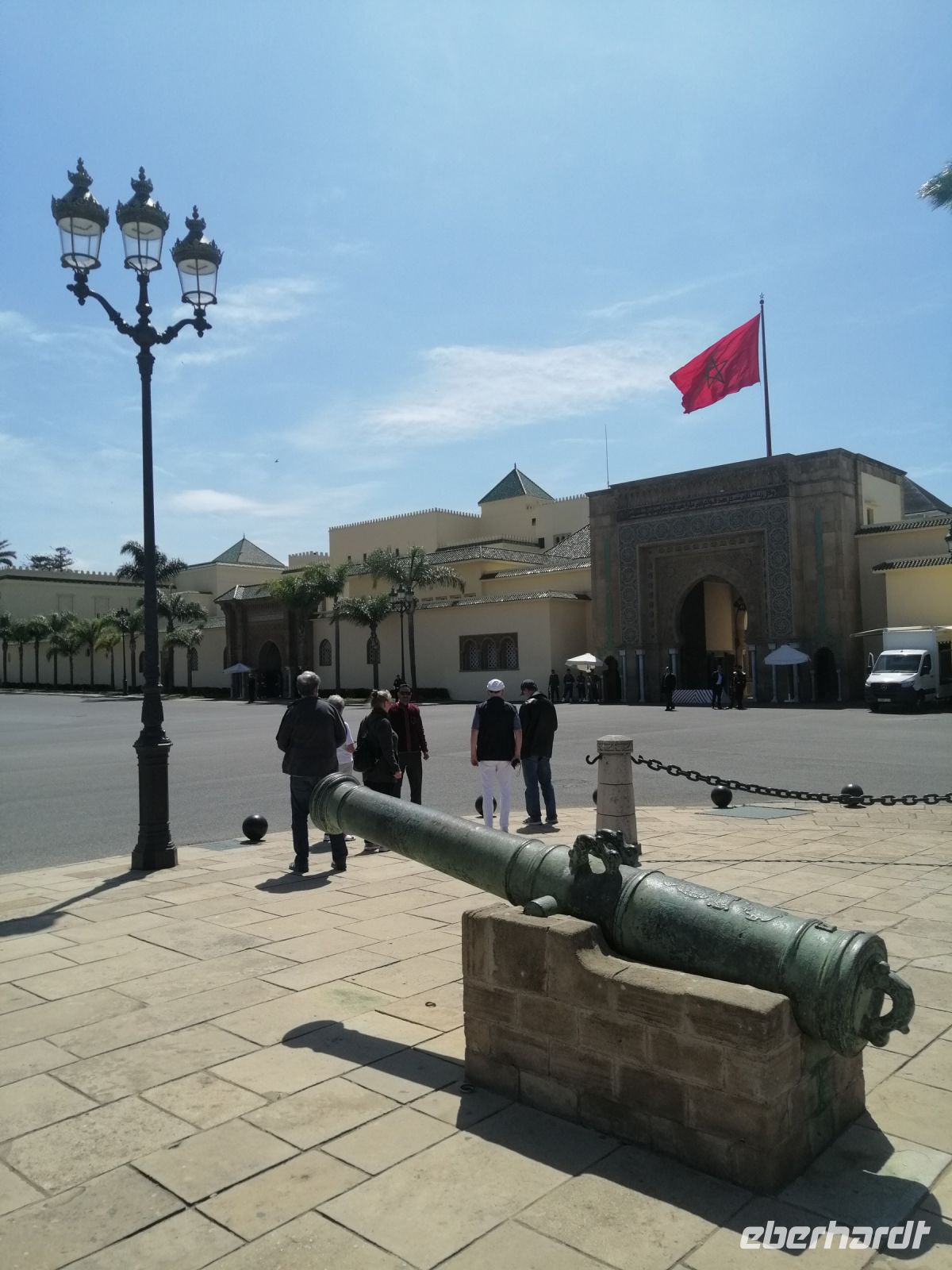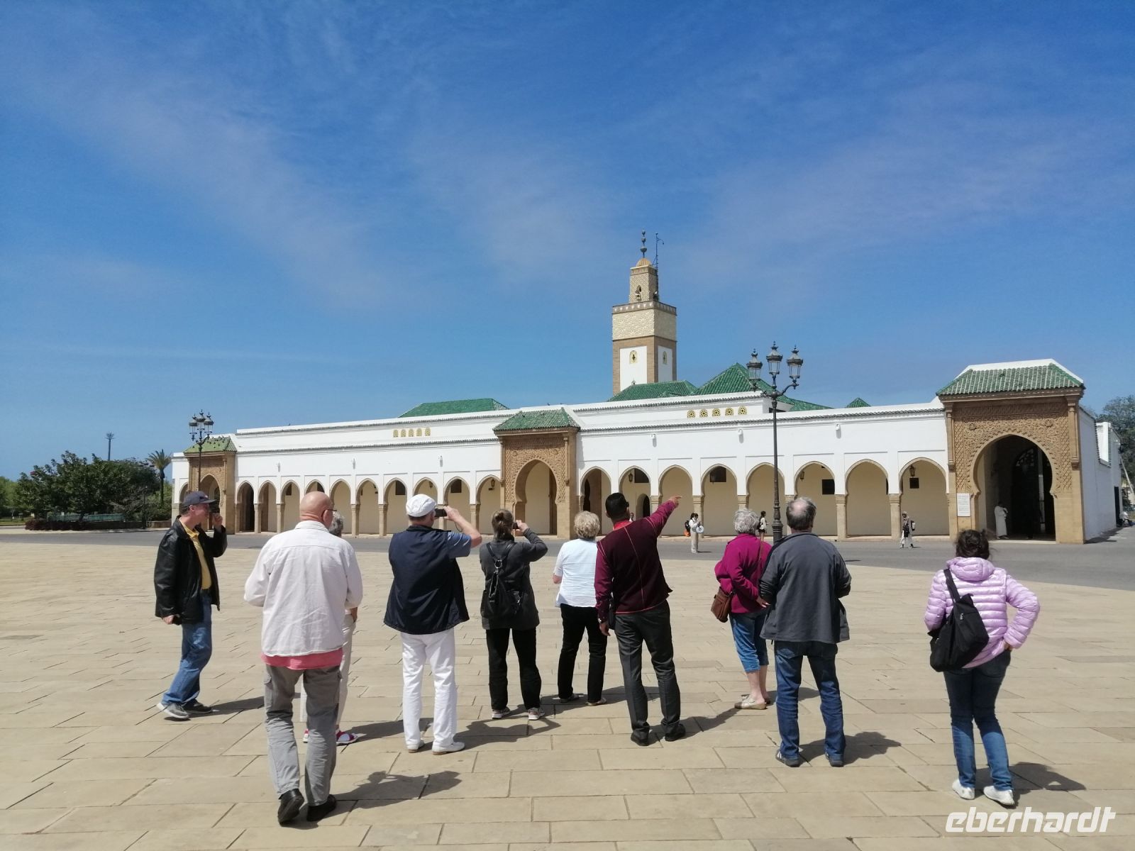 Im Bus informierte uns Said über die Geschichte von Marokko während und nach dem zweiten Weltkrieg und erzählte auch über die Entstehung des Filmes Casablanca. Nachdem kurzen Fotostopp auf dem berühmten Platz der Tauben, verließen wir Casablanca und setzten unsere Fahrt nach Rabat fort. Said informierte uns über Rabat und die Geschichte der Stadt – aufgrund der Flüchtlingswelle von 1.602, leben immer noch viele Nachkommen der Menschen aus Andalusien in Rabat. Rabat ist eine der vier Königsstädte von Marokko. Von Said erfuhren wir, wie das politische System in Marokko aufgebaut ist und das Marokko nach der Verfassung von 1992 eine parlamentarische, demokratische, soziale und konstitutionelle Monarchie ist. In Marokko gibt es keinen Kriegsminister, sondern nur ein Militärsekreter. Die Gründe dafür lagen im Putschversuch von 1971 und dem Flugzeugangriff auf den König von 1972.