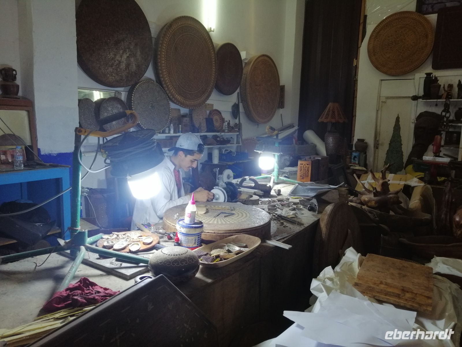 Schweren Herzens verließen wir die wunderschöne Hotelanlage Kasbah Xaluca Arfoud und machten uns nach dem Frühstück auf den Weg Richtung Tinghir. Noch in Erfound, am Rande der Stadt, besichtigten wir eine wunderschöne Fossilienwerkstatt, in der uns im Rahmen einer kleinen Führung die Entstehungsgeschichte der Fossilien und Arbeitsstufen der Herstellung von verschiedenen Erzeugnissen gezeigt wurden. Fasziniert von der Welt der Fossilien, kauften einige Reisegäste nicht nur kleine Souvenirs, sondern auch richtige Tischplatten als schöne und langlebige Erinnerung an die Marokko-Reise. Auch hier, wie überall in Marokko, war Handeln angesagt!