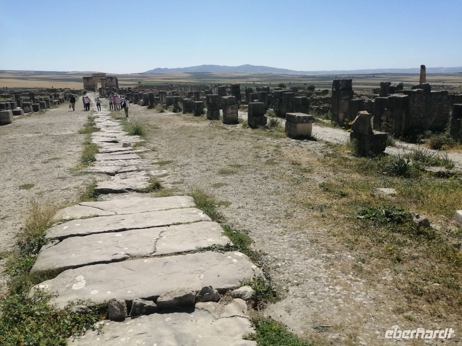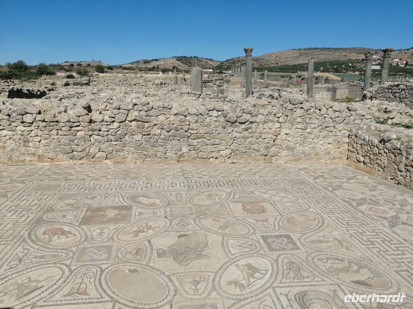 Anschließend stand die Besichtigung von Volubilis auf unserem Tagesprogramm - der größten römischen Ausgrabungsstätte Marokkos. Während der Führung durch einen einheimischen Fremdenführer Hamid, erfuhren wir einiges über die wichtigsten Baudenkmäler, das Kapitol, die Basilika, das Forum, den Triumphbogen und die unglaublich Zahlreichen Bodenmosaiken, die uns alle faszinierten. Hamid sagte uns, dass die schönsten Mosaiken in den archäologischen Museen von Rabat und Tanger ausgestellt sind. Viele Bodenmosaiken stellen nicht nur unbekleidete Männer, sondern auch unbekleidete oder nur spärlich bekleidete Frauen dar. Und Letztere, so Hamid, seien westlichen Touristen erst neuerdings zugänglich und Muslimen sei es noch immer verboten, sie zu besichtigen.