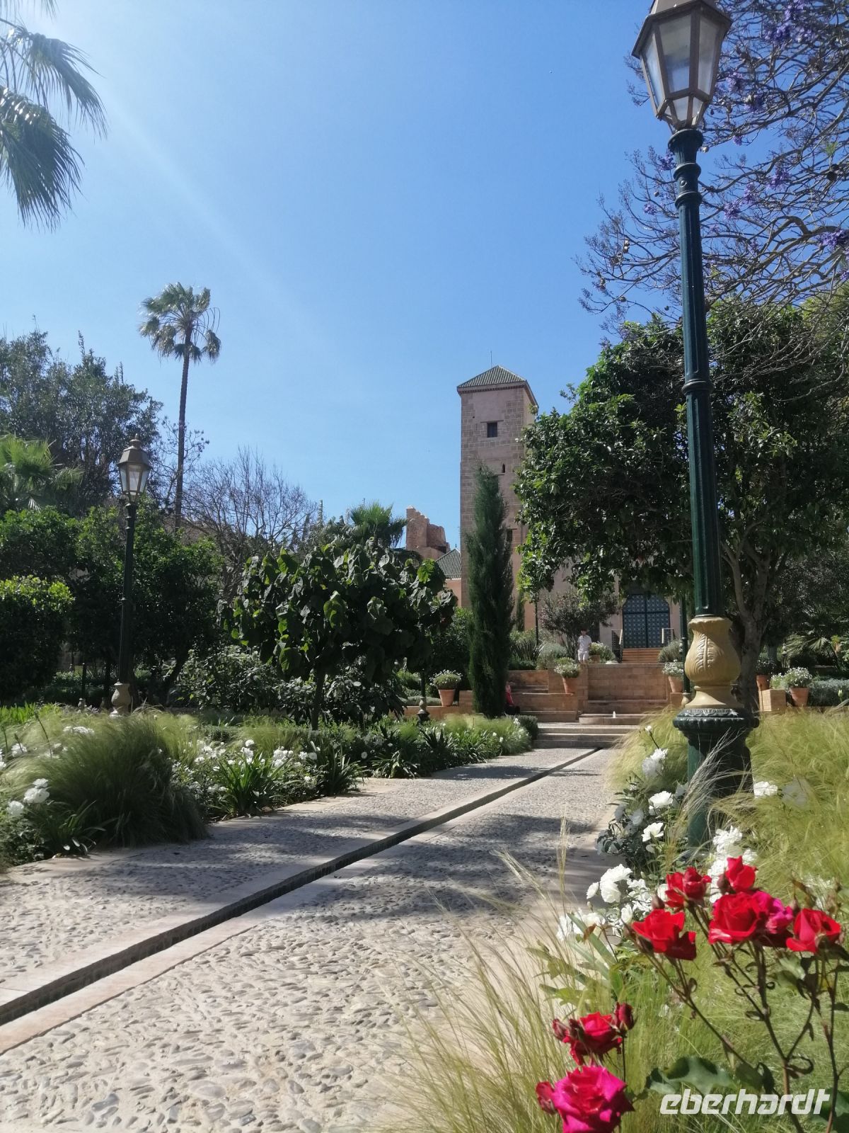 Während der weiteren Stadtrundfahrt, schauten wir uns die Burganlage Chellah, mit vielen laufenden Störchen an und besichtigten den wunderschönen Garten der Kasbah Oudaias und probierten im dortigen Café die typisch marokkanischen Süßigkeiten zum Minztee oder Kaffee. Der anschließende Rundgang durch die engen Gassen der Medina von Rabat, mit ihren Straßenhändlern und Henna-Hand-Malerei-Künstlern und die Besichtigung des Mausoleumskomplexes der verstorbenen Könige Mohammed V. und Hassan II. mit dem Hassan-Turm rundeten den heutigen Tag in Rabat ab.