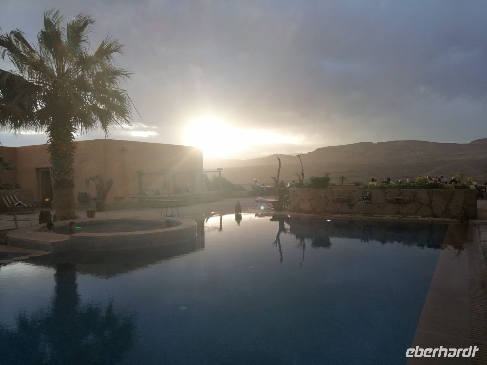 Danach fuhr unsere Karawane weiter Richtung Fes und am Stausee Sidi Chahed machten wir eine kurze Fotostopp-Pause und einige probierten den frischgepressten Orangensaft bei den Straßenhändlern. Am frühen Abend erreichten wir Fes. Einige nutzten den Pool vom Hotel, um sich ein bisschen zu entspannen, die anderen erkundeten die Umgebung vom Hotel. Zum gemeinsamen Abendessen trafen wir uns dann im Hotelrestaurant.