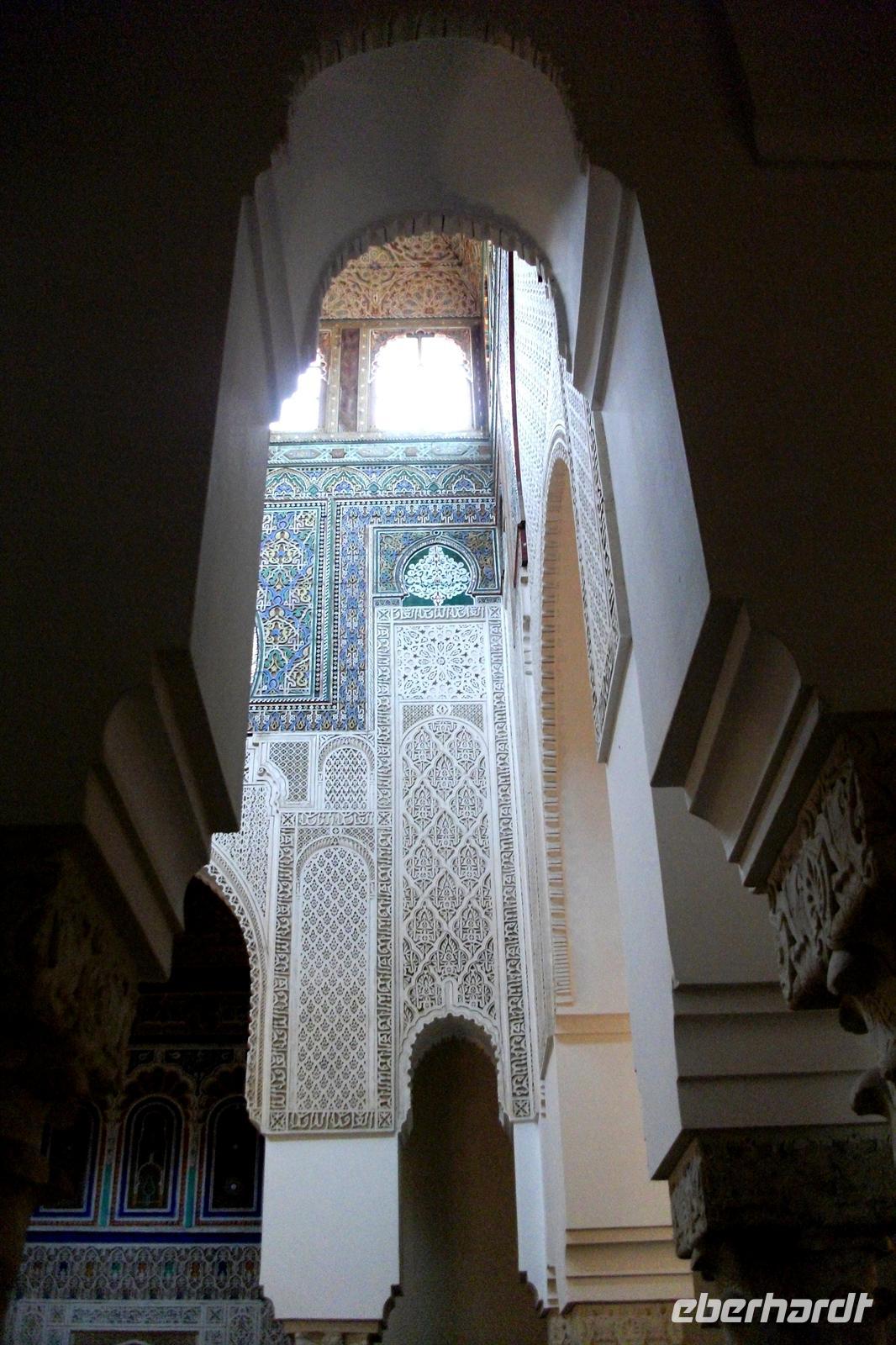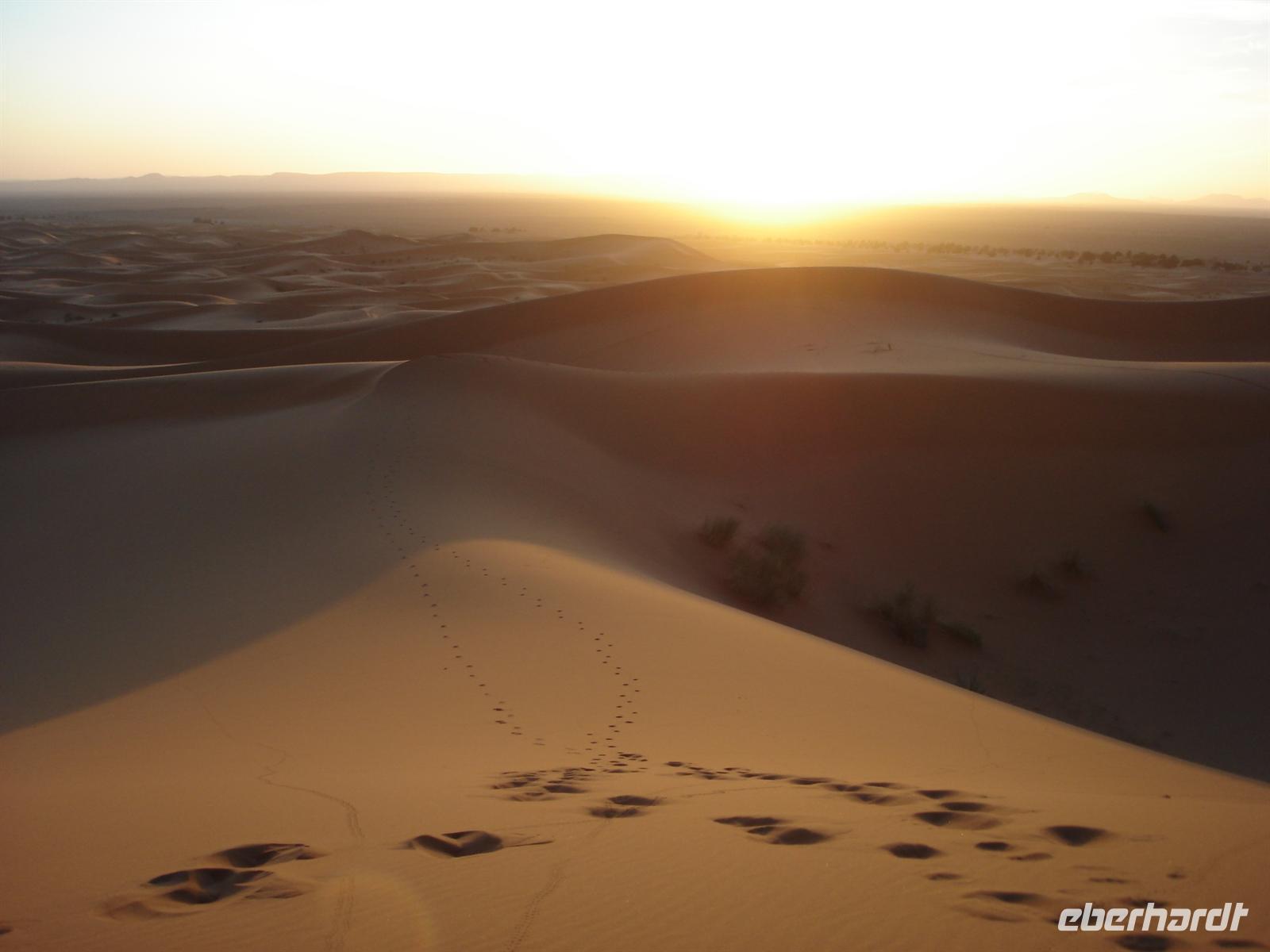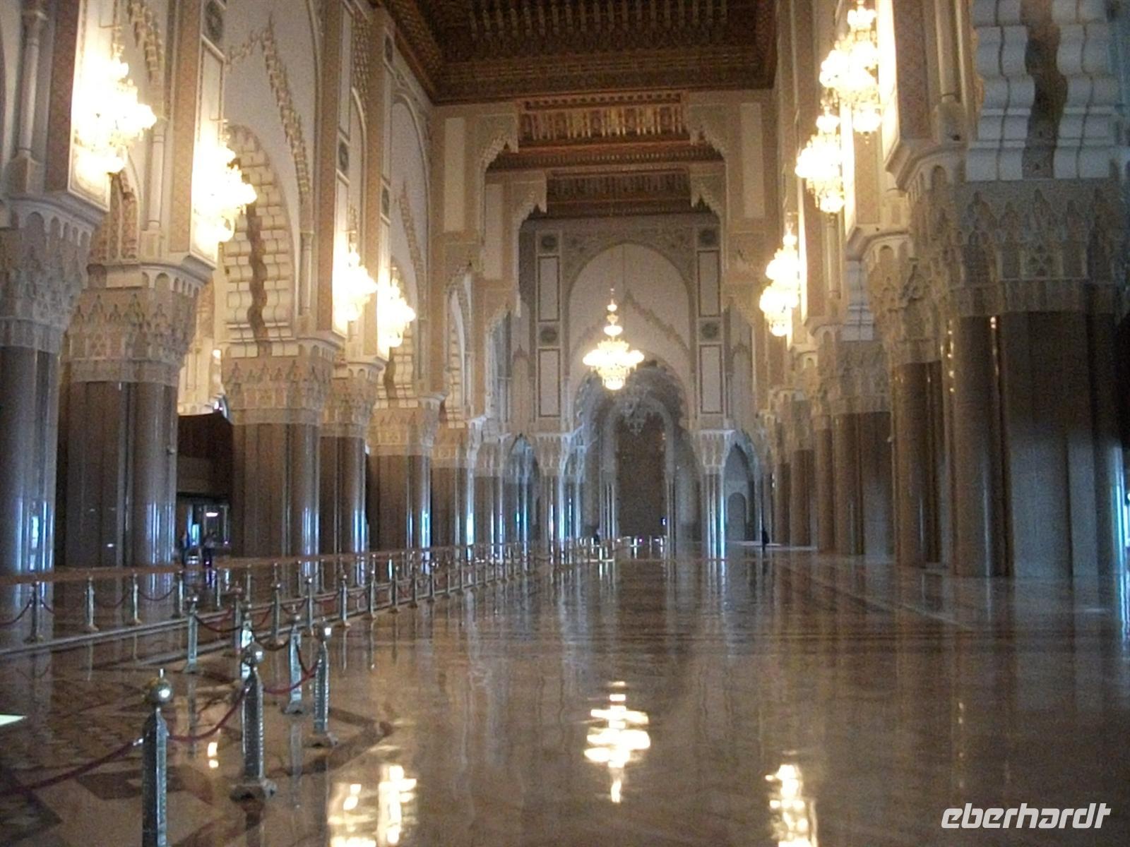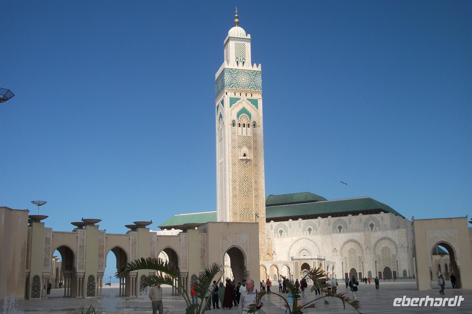 Marokko, ein Land der Kontraste mit einer abwechslungsreichen Kultur und Landschaft. So vielfältig, wie es sich die meisten von uns nicht zu erträumen gewagt hatten.Am Anfang unserer Reise lernten wir das geschäftige, laute und orientalische Marokko kennen beim Besuch von Casablanca sowie der drei Königsstädte Rabat, Meknes und Fes.Nachdem wir in Casablanca staunend die mächtige Moschee Hassan II besichtigt hatten empfing uns Rabat, die Hauptstadt Marokkos. Wir besichtigten die Chellah, ein Ruinenensemble wo hunderte von Störchen ihre Nestern gebaut hatten und besuchten anschließend die Grabmoschee Hassan II und Mohammed IV. Zum Abschluss des Tages gab es ein Glas frisch aufgebrühten Pfefferminztee auf der Terrasse eines maurischen Cafe’s in der Kasbah der Oudaias. Anschließend ging es weiter nach Méknes, welches von 1672 - 1727 Zentrum der Macht gewesen ist. Aus dieser Zeit zeugen heute noch gewaltige Prunkbauten wie das Stadttor Bab el Mansour, die Reste der kilometerlangen Stadtmauer oder der riesige Getreidespeicher, dessen Vorräte im Falle einer Belagerung die Bewohner 20 Jahre lang hätten ernähren können. Auch das gewaltige Mausoleum von Moulay Ismail steht heute noch als Denkmal für die Bedeutung dieser ehemaligen Königsstadt. Da an dem Tag unseres Besuchs ein marokkanischer Feiertag war, standen wir zunächst vor verschlossenen Toren. Dank der charmanten Überzeugungskraft unseres Reiseleiters dauerte es keine fünf Minuten und uns wurde Eintritt gewährt. Zur Krönung durften wir dann noch ein traditionelles Gebetszeremoniell im Inneren der Grabmoschee erleben.Nach einen typisch marokkanischen Mittagessen in einem maurischenRestaurants mit verschiedenen kleinen Vorspeißentellern, Tajines und Blätterteigtaschen ging es anschließend frisch gestärkt weiter nach Fes - die älteste der vier Königsstädte - welches wir am dritten Abend unserer Marokkoreise erreichten. Bis heute gilt die Stadt als kulturelles und spirituelles Zentrum des Landes, nicht zuletzt weil hier die älteste Universität der Welt gegründet worden ist. Die Altstadt von Fes ist die größte des Landes und erscheint uns wie eine Filmkulisse aus einer längst vergangenen Zeit, fast so, als ob die Zeit hier einfach stehen geblieben wäre. Keine Autos, sondern Esel sind das Transportmittel in den engen Straßen der Medina. Alles wird hier noch mit der Hand hergestellt, in der Gerberei färben unzählige Arbeiter das Leder und aus den kleinen Werkstätten tönt das Schlagen der Schmiede, das Klacken der Webstühle und der Ruf der Muezzins. Trotz Wegweisern ist es unmöglich hier die Orientierung zu behalten, doch wir wurden zum Glück geleitet von mehreren einheimischen Führern, die aufpassten, dass niemand in dem Gewirr von Einheimischen, Arbeitern und Touristen verschollen geht. Wir gingen gemeinsam durch ein enges Labyrinth aus verwinkelten Gassen mit unzähligen Läden, Moscheen und Palästen. Überall strömte uns ein Duft aus Zedernholz, Leder und Gewürzen entgegen; Kupferkessel, Dolche, Teppiche und orientalische Gewänder werden zum Verkauf angeboten. Alles scheint so fremd und ist doch so faszinierend. Wir sehen das Grabmal des Stadtgründers Moulay Idriss II, die Karaouine- Moschee sowie eine ehemalige Koranschule - ein Musterbeispiel maurischer Architektur mit üppig verzierten Holzschnitzereien und Mosaiken.Nach dem Besuch von Fés ließen wir die Königsstädte mit ihren Souks, Palästen und Moscheen nun entgültig hinter uns und lernten die folgenden Tage ein völlig anderes Marokko kennen. Ein Marokko mit einer unglaublichen Vielfalt an Landschaften: Schnee auf hohen Berggipfeln, eine endlos erscheinende Dünenlandschaft in der Wüste bei Erfoud und üppige Wälder aus Korkeichen und Zedern in den Regionen des Atlasgebirges - all das liegt hier nur wenige Fahrtstunden von einander entfernt. Besonders spektakulär blieb einem die Todra-Schlucht, mit ihren senkrecht abfallenden Felswänden in Erinnerung, die an der engsten Stelle nicht breiter als 10 Meter ist, oder das bezaubernde Dades-tal, wo wir sogar auf Minibusse umsteigen mussten, um die enge Schlucht auf einer kurvenreichen Straße erkunden zu können. Trotz starkem Wind, bei dem wir lieber im Auto geblieben wären, war die Aussicht von einer kleinen Caféterasse am Ende der Schlucht den Kampf mit den Windböhen wert Doch das Highlight war der Sonnenuntergang in der Wüste Marokkos. Wer wollte konnte an diesem fakultativen Ausflug teilnehmen. Dafür stiegen wir auf moderne Landrover um und fuhren über Schotterpisten zu der kleinen Oase Merzouga. Um Merzouga sind die beeindruckendsten und zum Teil bis zu 100m hohen Sanddünen Marokkos zu sehen. Hier bestand die Möglichkeit mit unserem Reiseleiter einen kleinen Spaziergang zu Fuß zu unternehmen. Wer wollte konnte aber auch auf eines der Kamele umsatteln, die bereits am Rand der Dünenlandschaft auf uns warteten und einen ca. 30-minütigen Ritt zu einem Aussichtspunkt auf einer der höher gelegenen Dünen wagen. Auf der Düne angekommen, machten wir es uns auf Decken gemütlich und genossen bei einem Gläschen Wein diese atemberaubende Stimmung, als sich die Sonne langsam vom Himmel verabschiedete. Ein einmaliges Erlebnis! Entlang der Straße der 1000 Kasbahs führte uns unsere Reise weiter in den Süden bis nach Ouarzazate, das „Hollywood Marokkos“, in dessen Filmstudios, sowie in der einmaligen Kulisse der Umgebung der Stadt, bereits Blockbuster wie „Alexander der Große“, „Königreich der Himmel“, „Babel“ und „Lawrence von Arabien“ gedreht worden sind. Ouarzazate war auch Ausgangspunkt für unseren Ausflug nach Zagora, wo besonders die Fahrtstrecke zur Oasenstadt lohnt. Ganz getreu dem Motto „der Weg ist das Ziel“ ging es kilometerlang vorbei an einer traumhaften Bergkette, mit kleinen Kasbahruinen und unzähligen Palmen.Nach all diesen Erlebnissen im Inneren des Landes ging es am folgenden Tag zurück in dieZivilisation. Wir verließen die Wüs