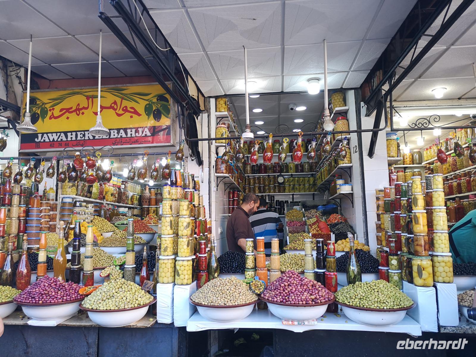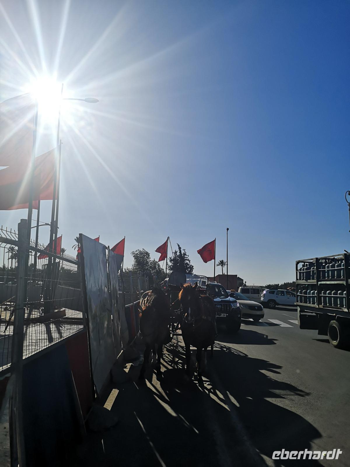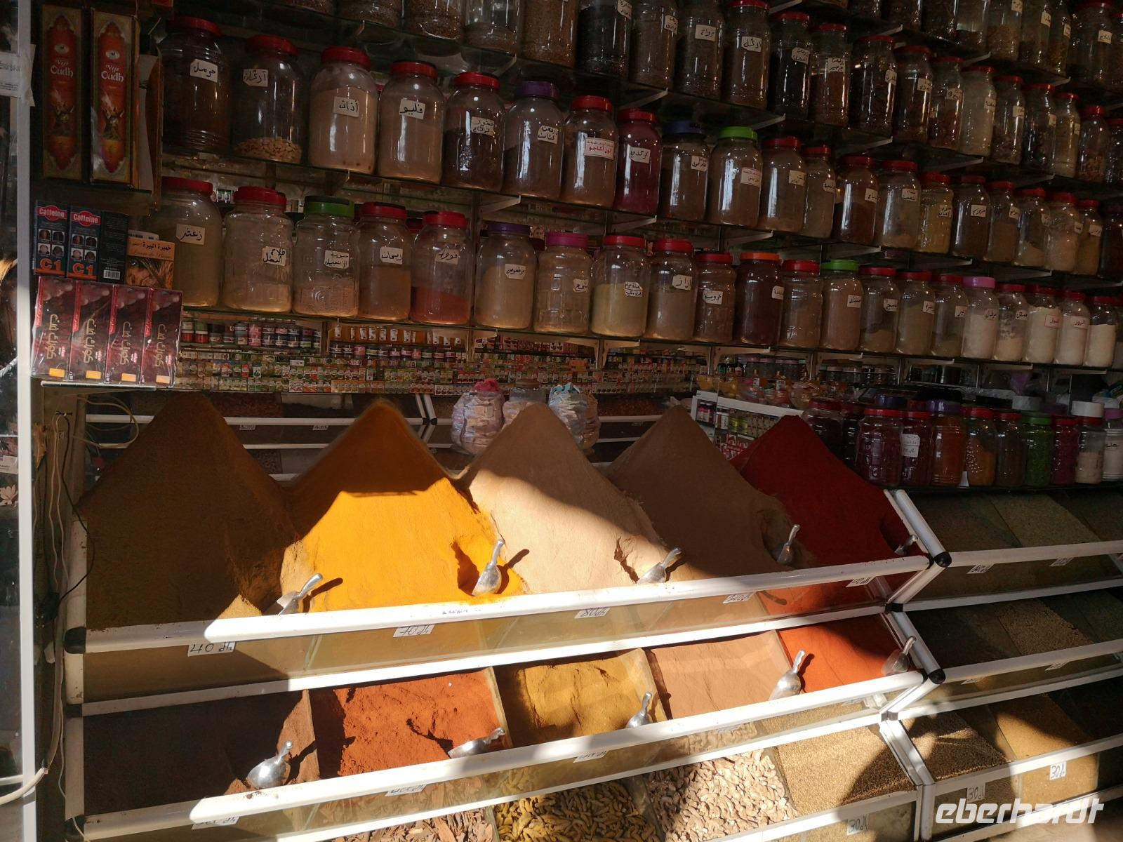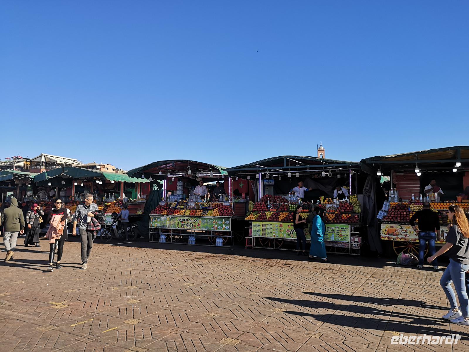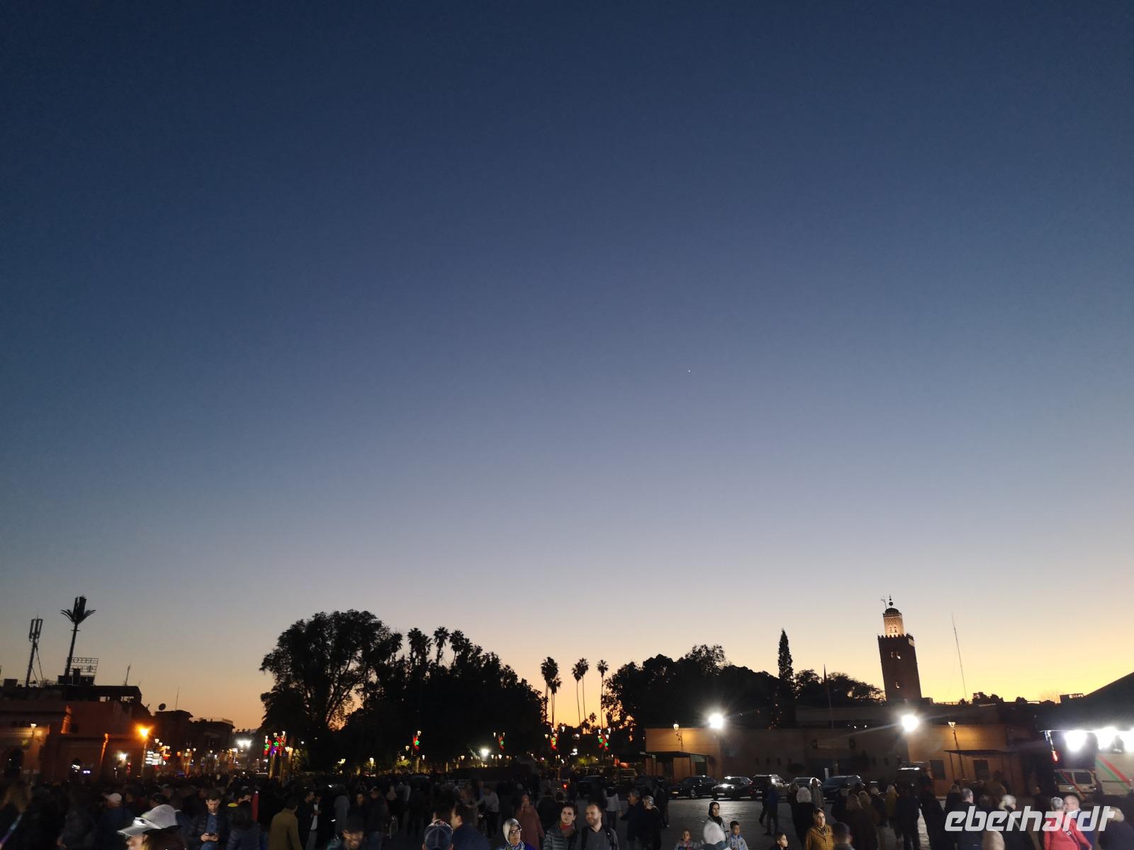 Nach dem Mittag wagen wir uns ins Getümmel auf dem Platz der Gaukler, überall sehen wir die Schlangenbeschwörer und Artisten mit ihren Kunststückchen. Unser Weg führt uns weiter in den Souk von Marrakesch, wir sind mittendrin, zwischen den Einheimischen auf Entdeckungstour. Ein Besuch bei einer Berberapotheke darf natürlich nicht fehlen. Auch die kleinen Werkstätten und Läden lassen den einen oder anderen von uns schwach werden. Zum Abschluss beobachten wir dann das ganze verrückte Treiben mit einem Glas Pfefferminztee von der Terrasse eines Cafés aus. Schließlich fahren wir zurück ins Hotel und lassen beim Abendessen und dem abendlichen Besuch in Bar ausklingen.