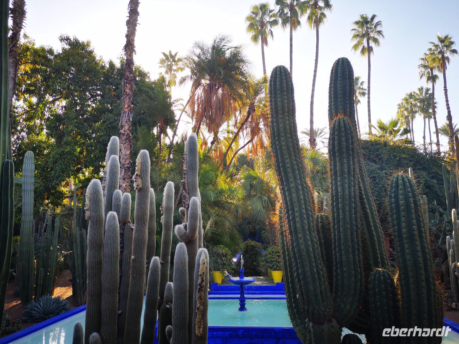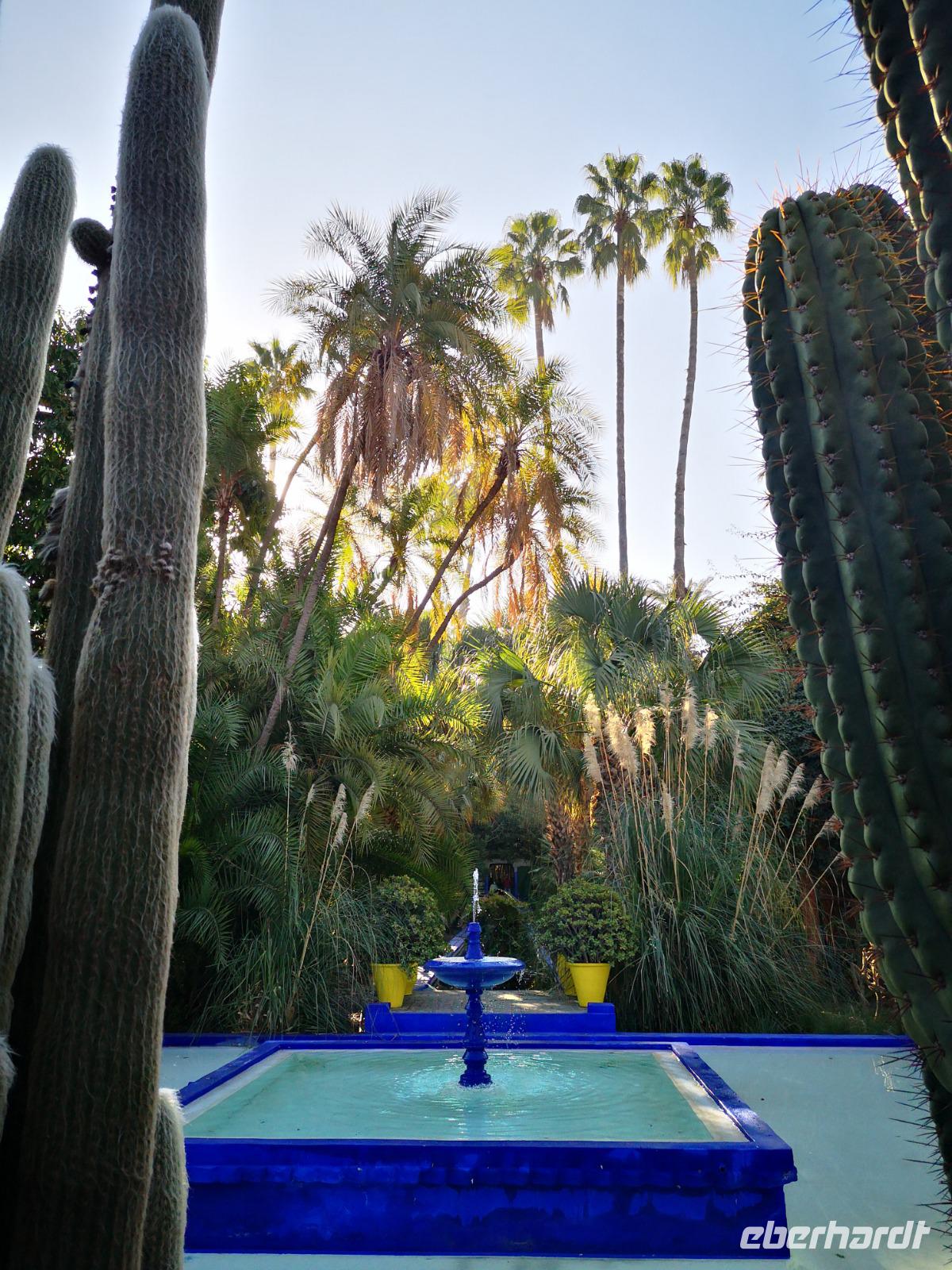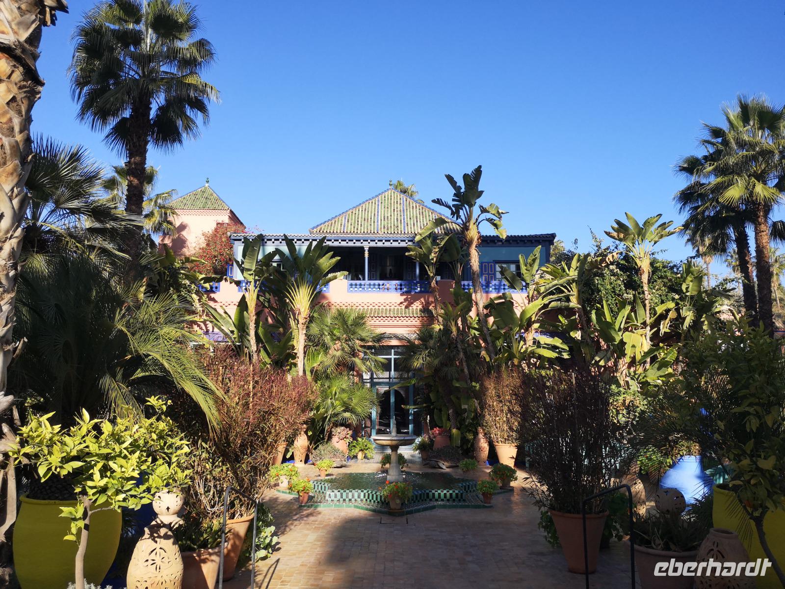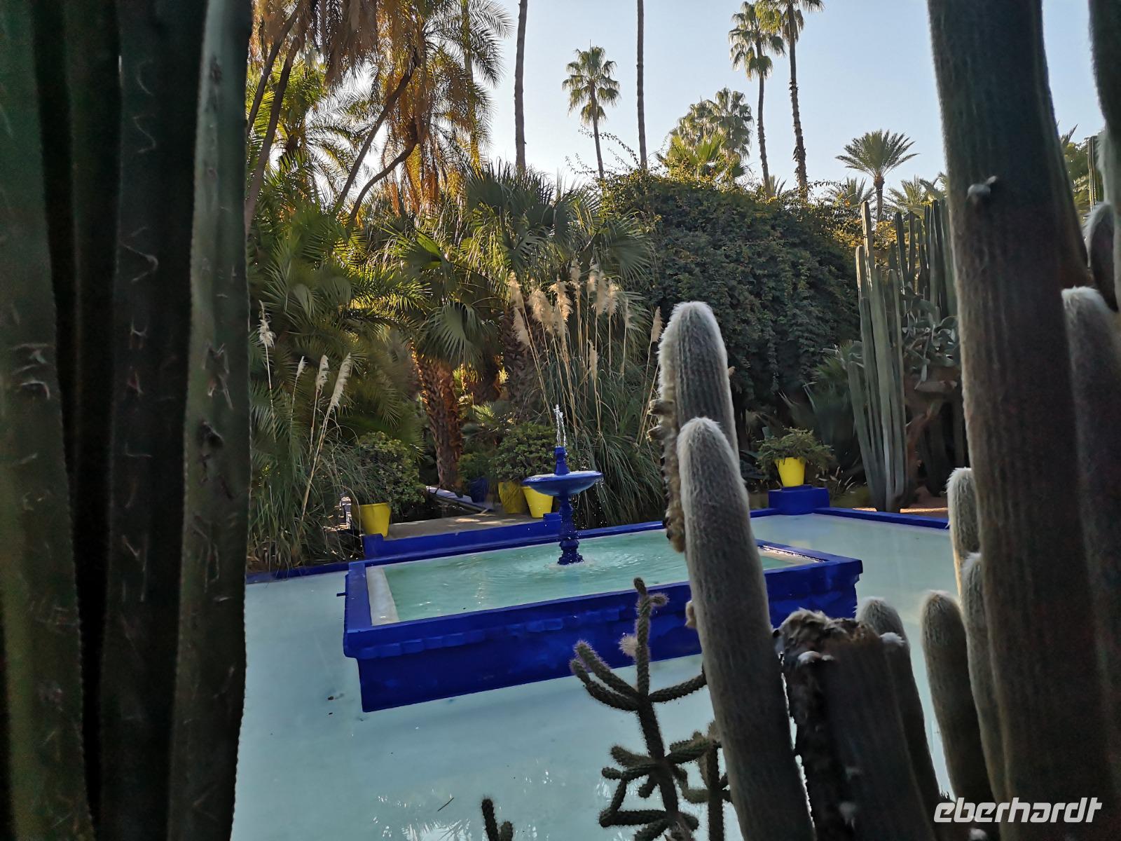 Nach einem späten Frühstück beginnen wir den Tag mit einem gemeinsamen Ausflug zum Jardin Majorelle Garten. Abseits des Straßenlärms können wir hier noch einmal tief Luft holen und lassen diese nahezu völlig andere Welt in Ruhe auf uns wirken. Der Rest des Tages steht uns frei zur Verfügung und wir fahren zum Hammam oder Hotel zurück.