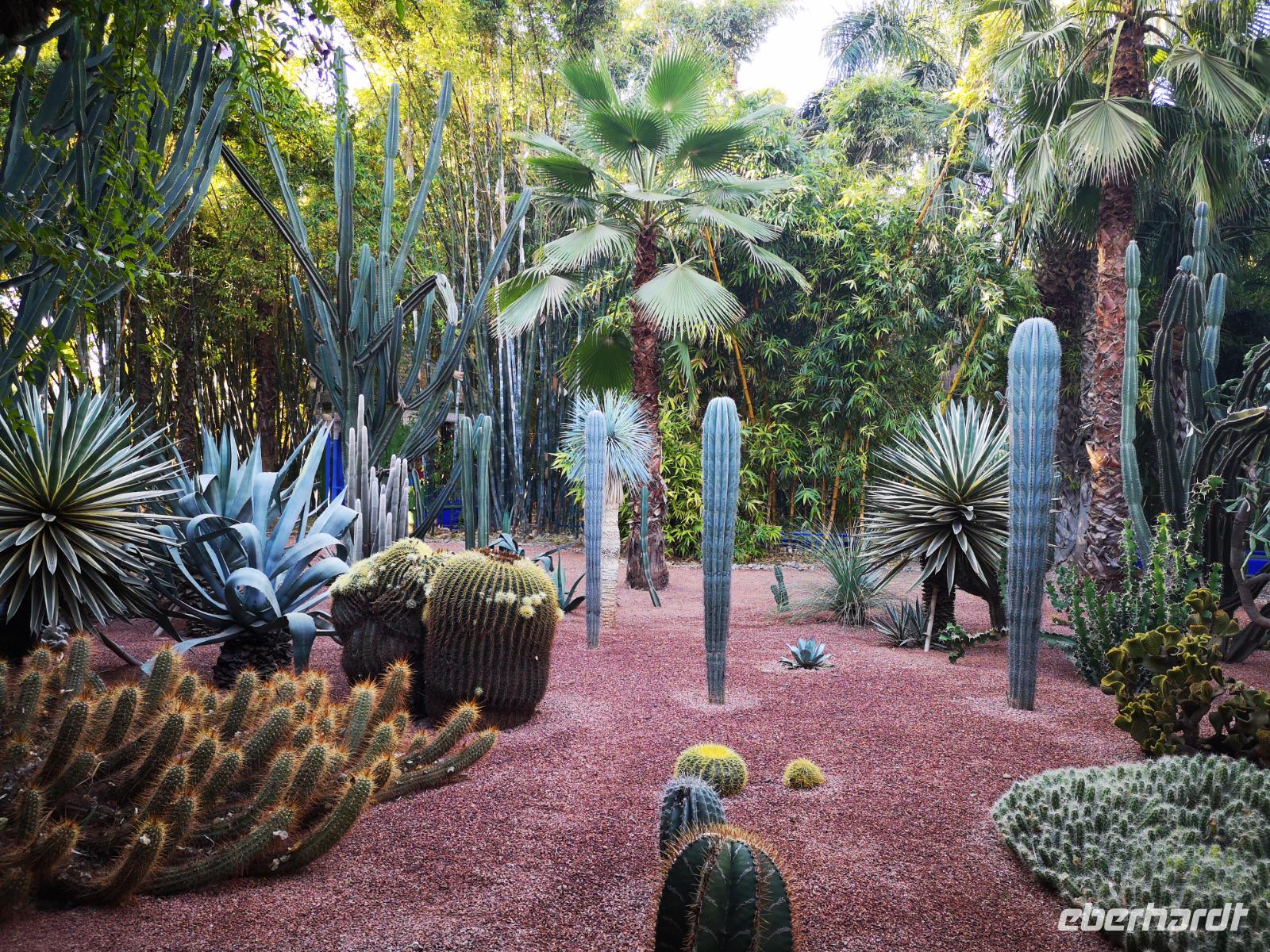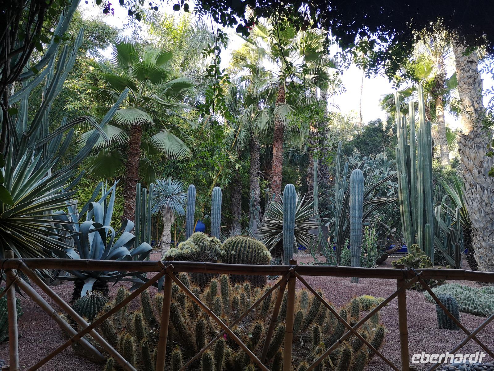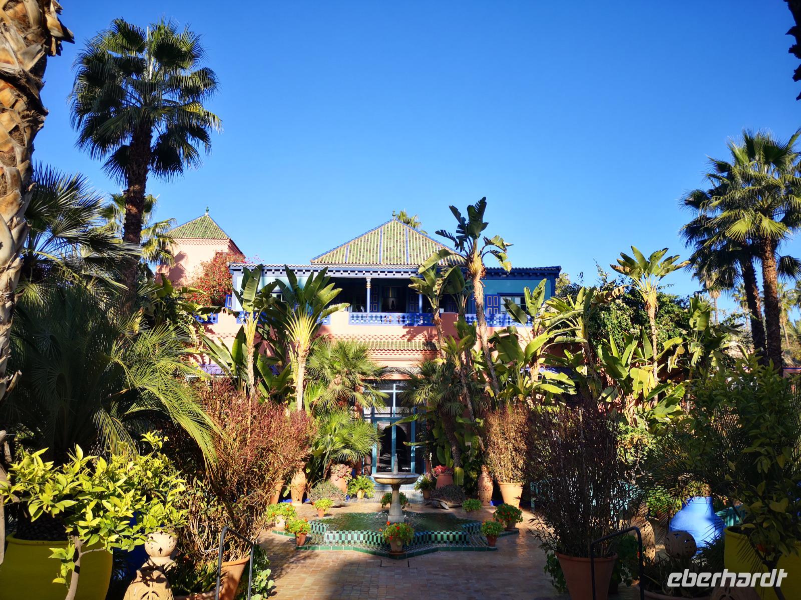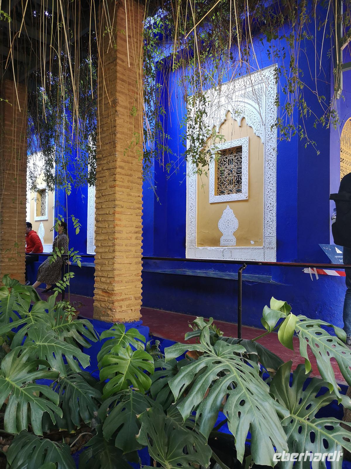 Nach einem späten Frühstück beginnen wir den Tag mit einem gemeinsamen Ausflug zum Jardin Majorelle Garten. Abseits des Straßenlärms können wir hier noch einmal tief Luft holen und lassen diese nahezu völlig andere Welt in Ruhe auf uns wirken. Der Rest des Tages steht uns frei zur Verfügung und wir fahren zum Hammam oder Hotel zurück.