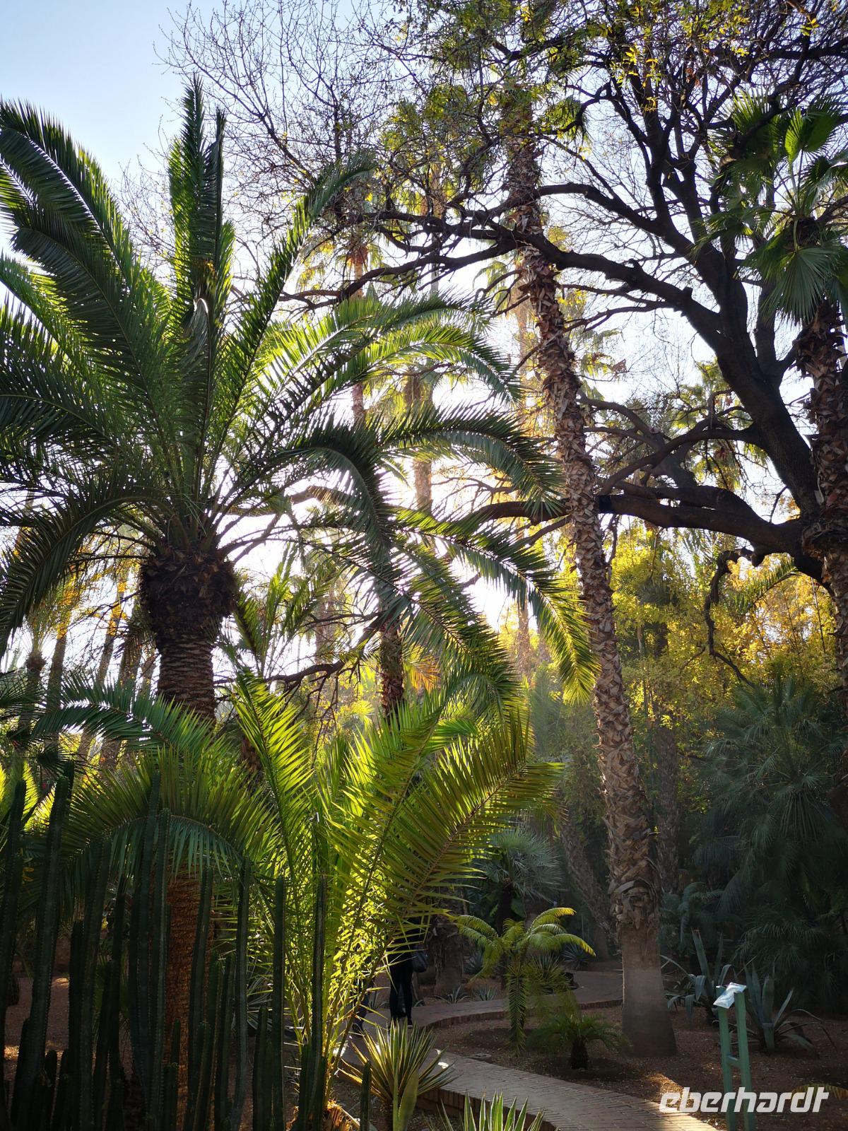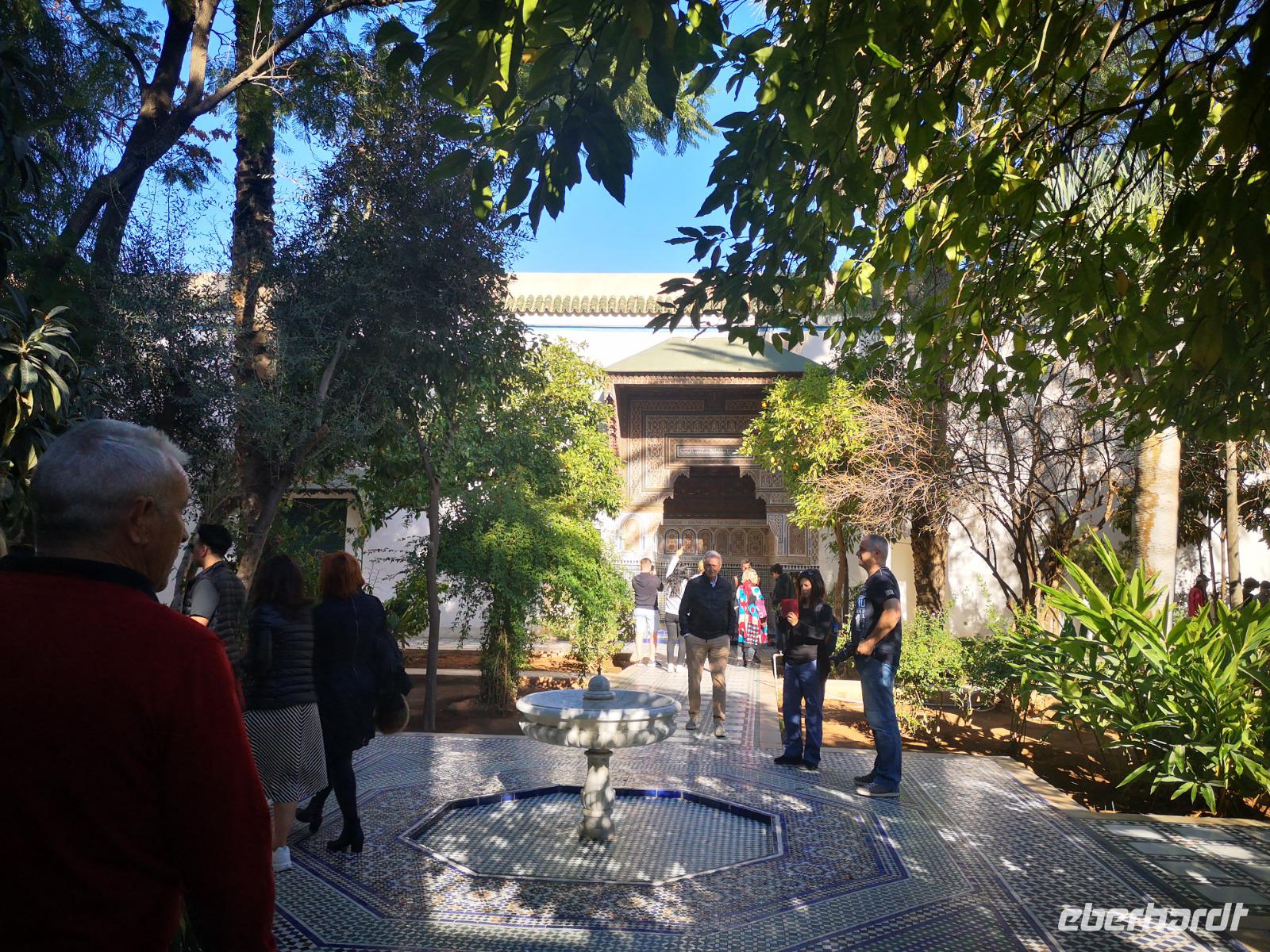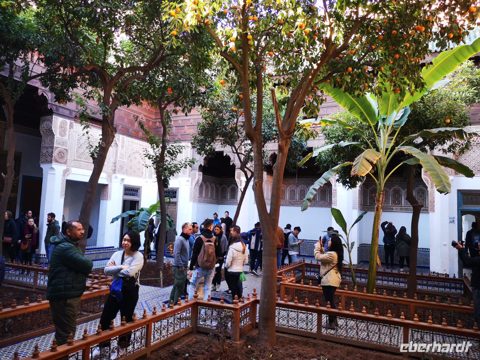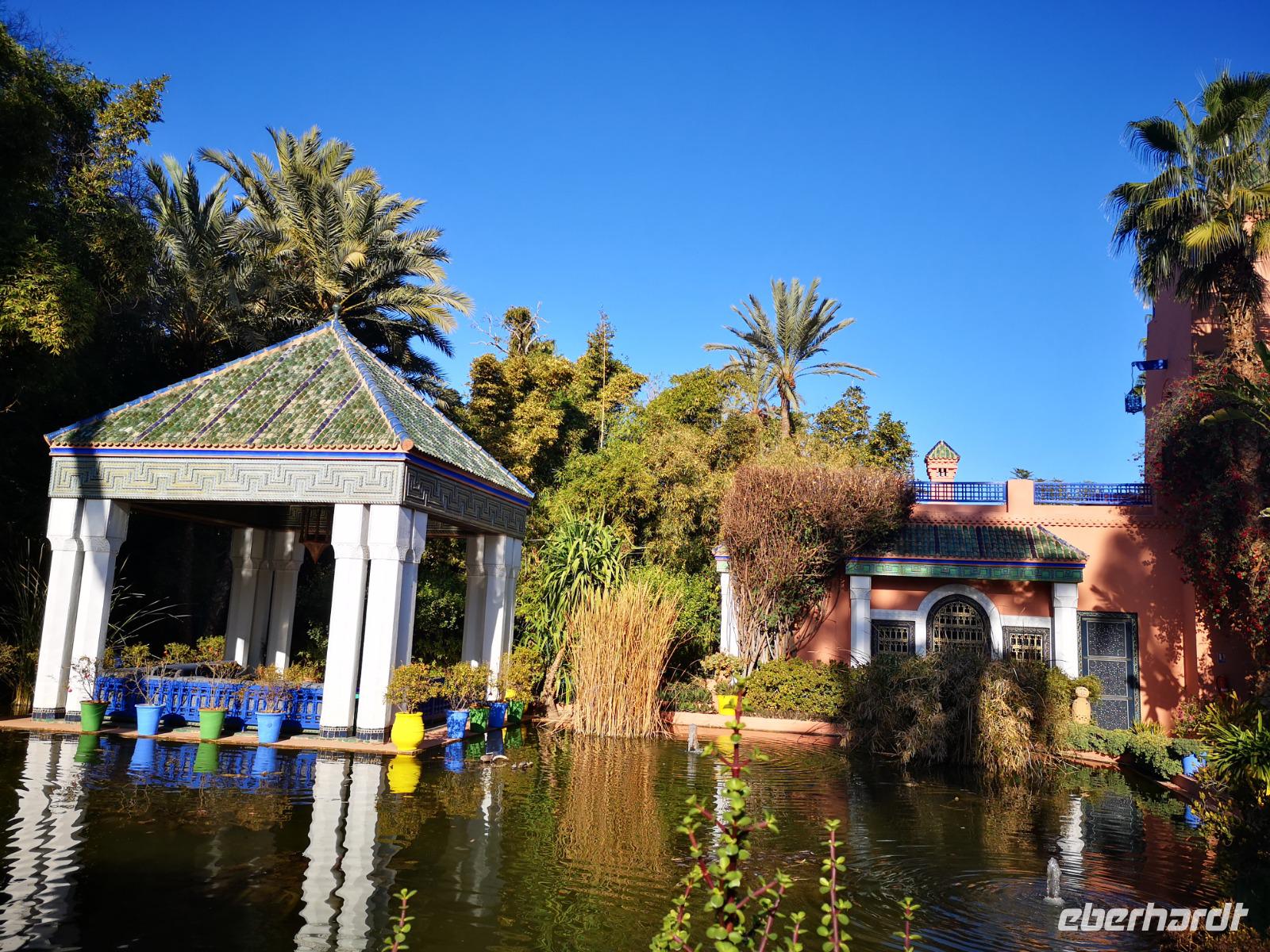 Nach einem späten Frühstück beginnen wir den Tag mit einem gemeinsamen Ausflug zum Jardin Majorelle Garten. Abseits des Straßenlärms können wir hier noch einmal tief Luft holen und lassen diese nahezu völlig andere Welt in Ruhe auf uns wirken. Der Rest des Tages steht uns frei zur Verfügung und wir fahren zum Hammam oder Hotel zurück.