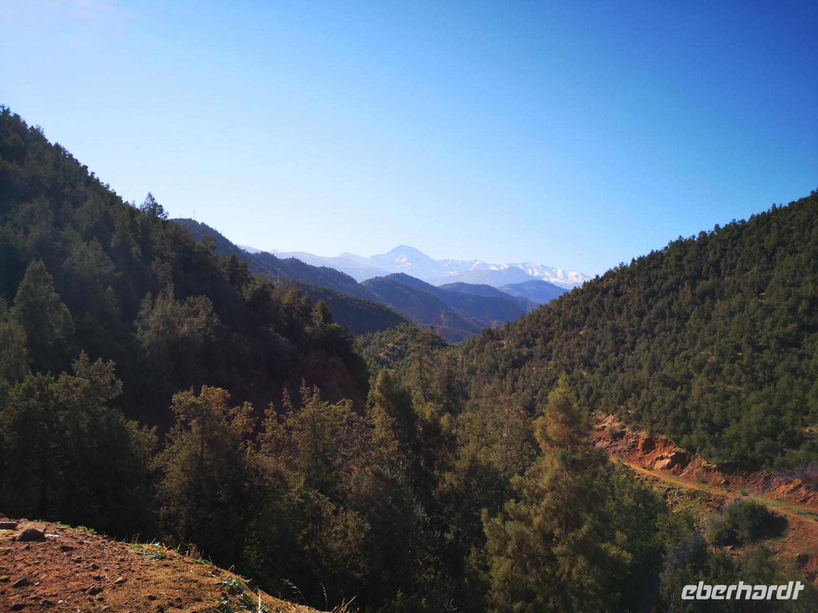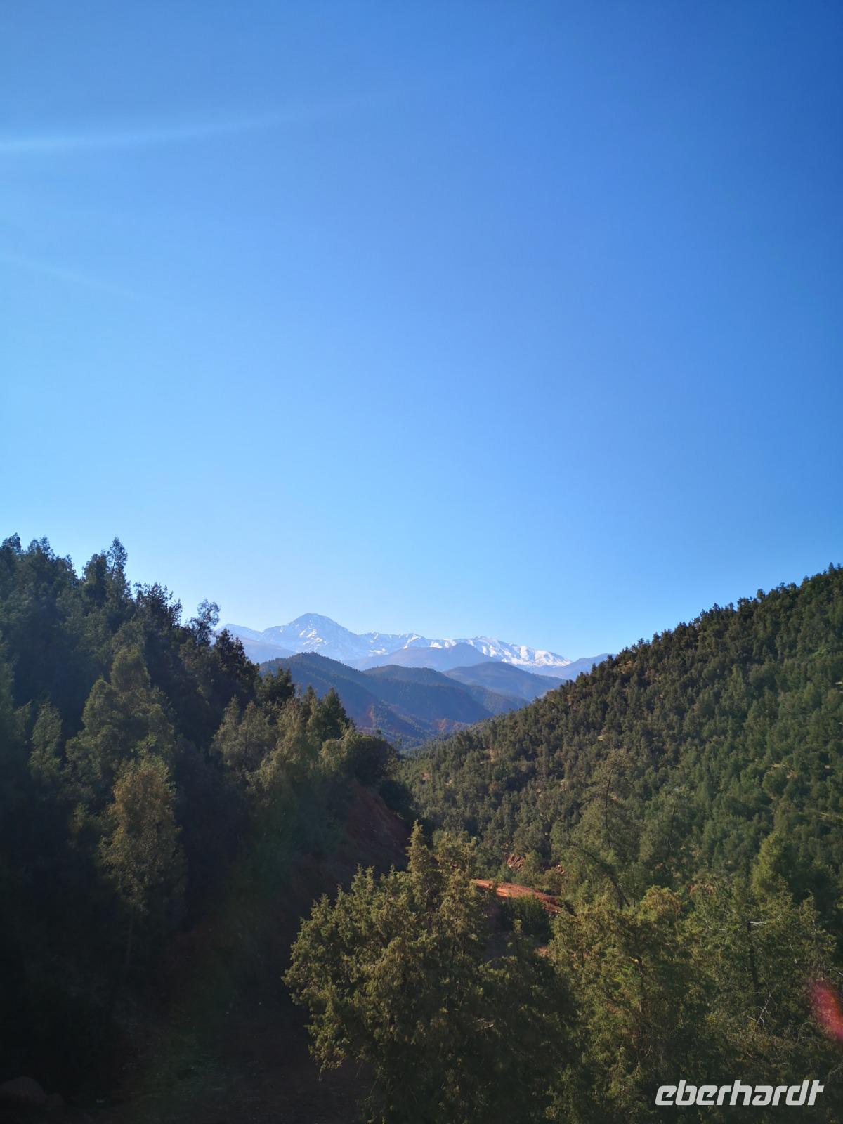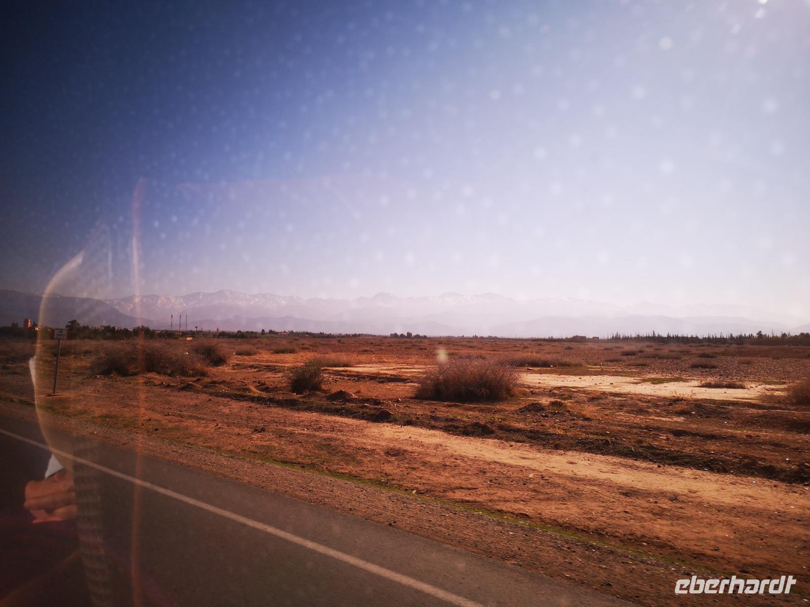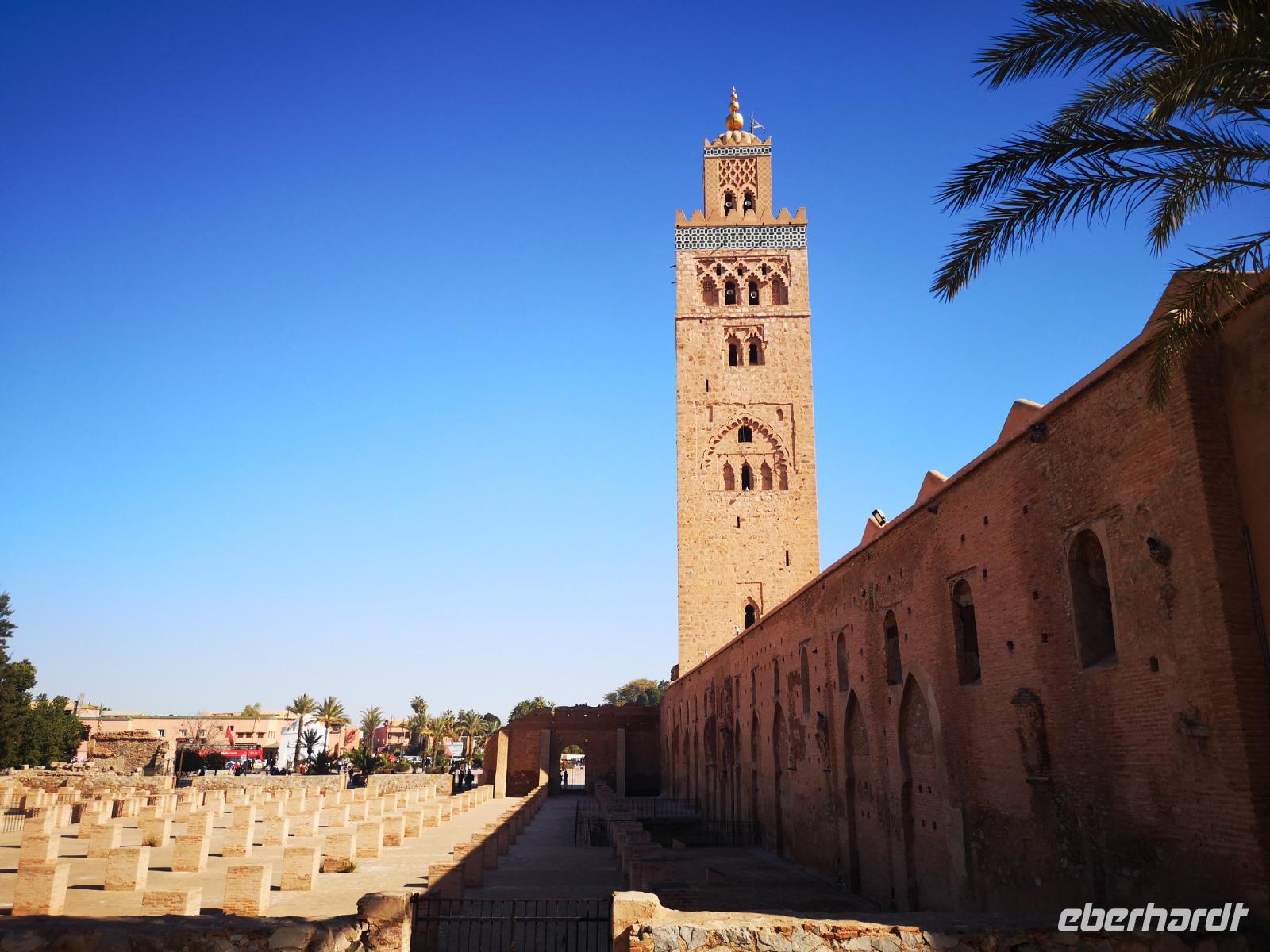 Noch ein kleiner Spaziergang zur Koutoubia Moschee und schon erreichen wir unser Café für die Mittagspause. Ein herrlicher Blick von hier, direkt zur Moschee und im Hintergrund sieht man sogar das Atlas-Gebirge mit seinen weißen schneebedeckten Gipfeln.