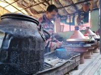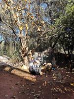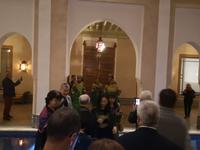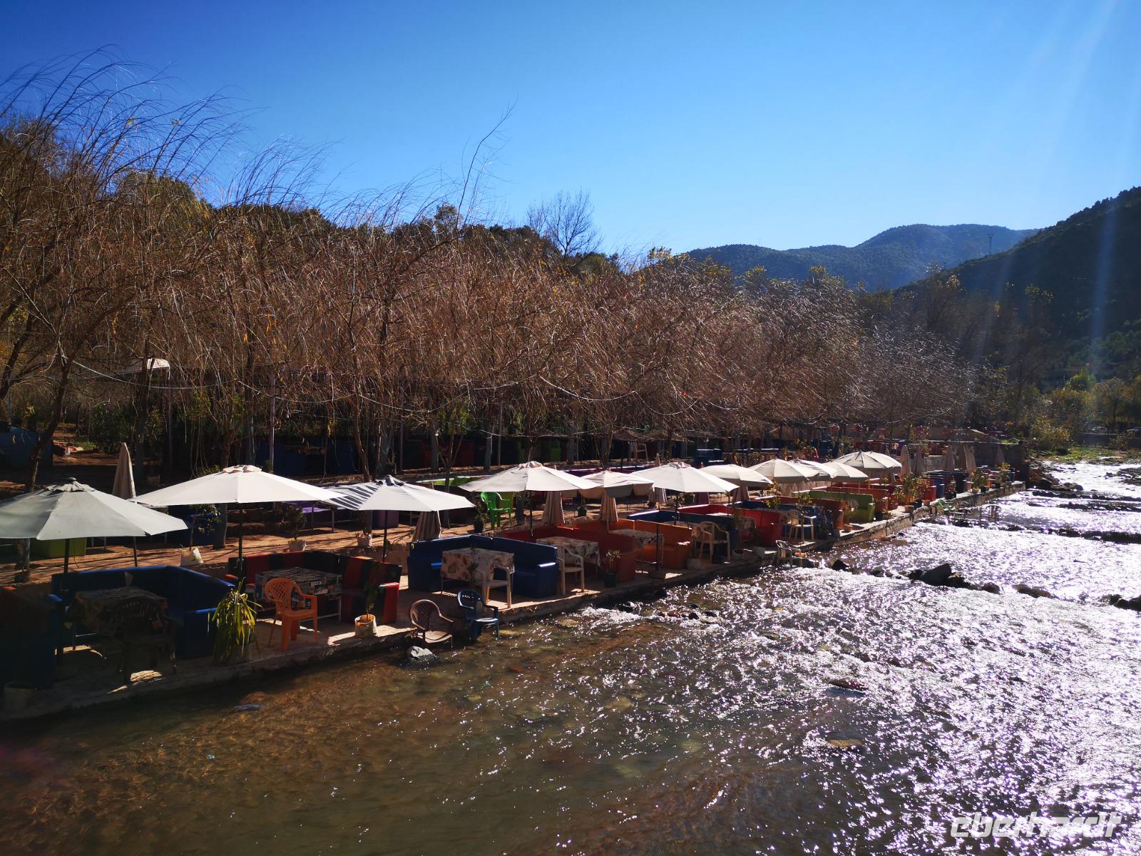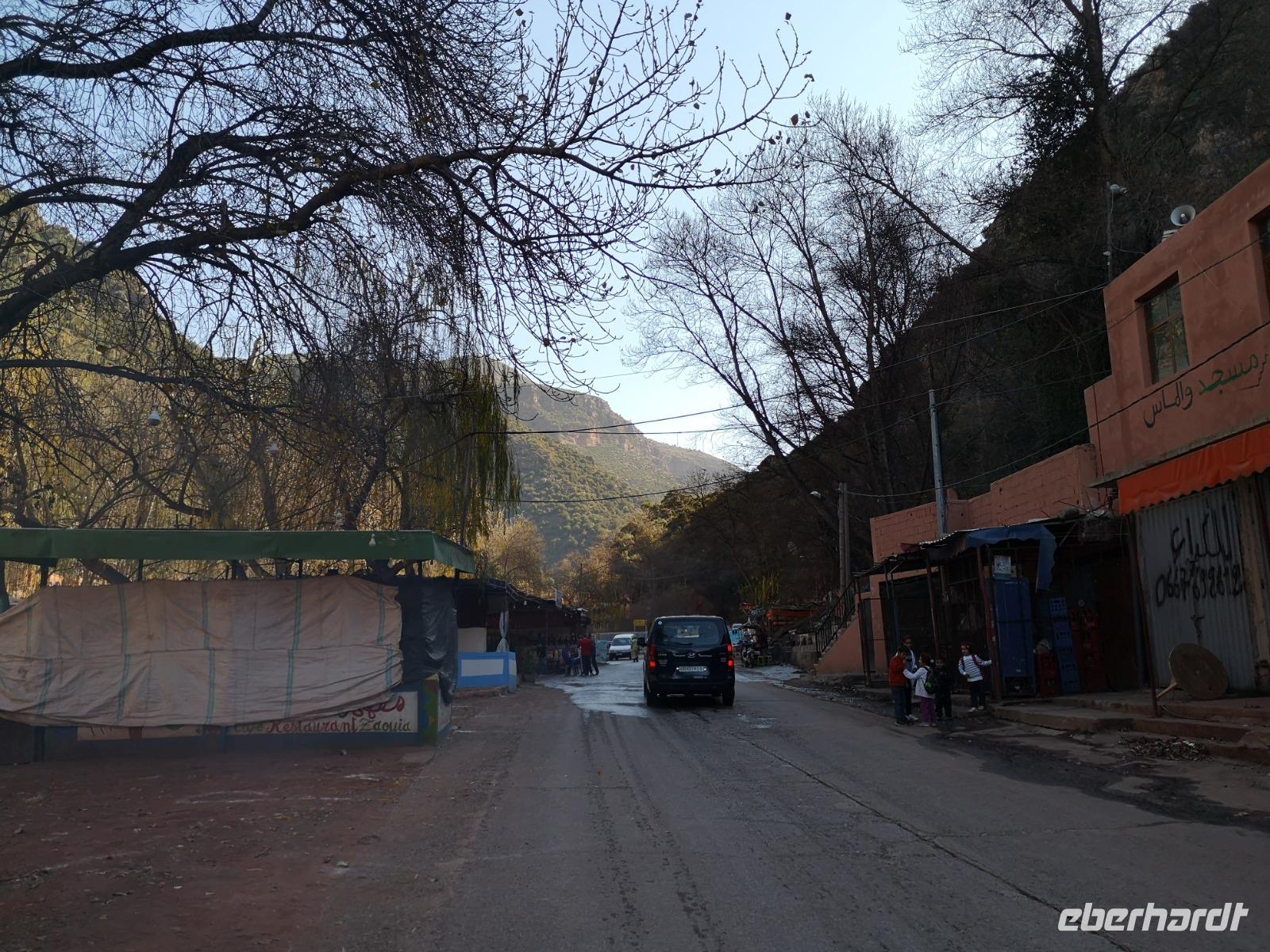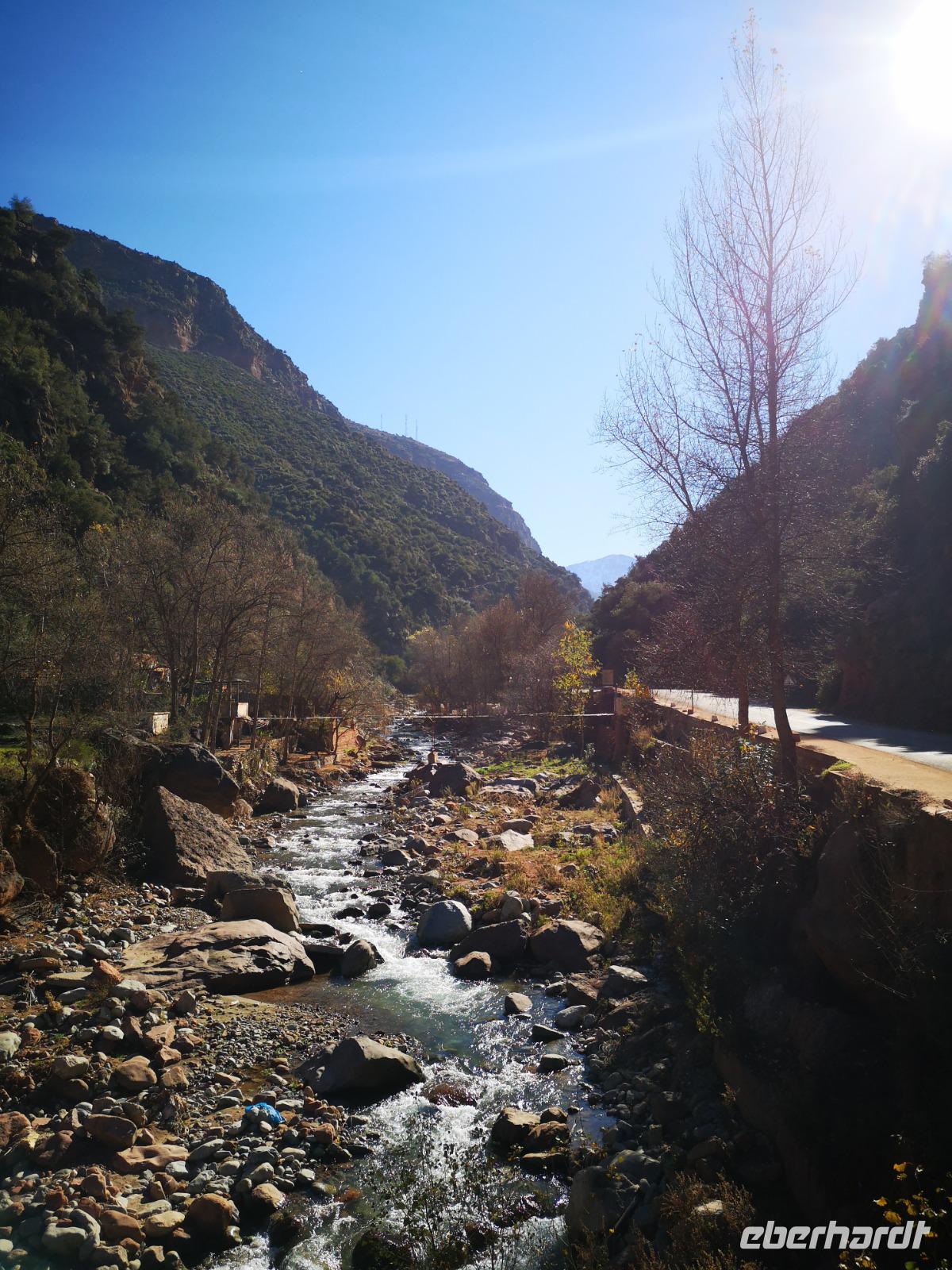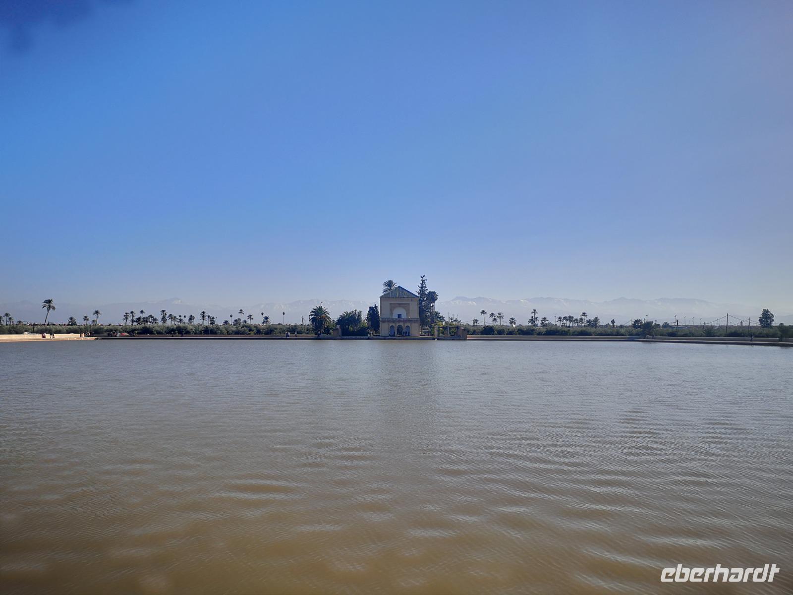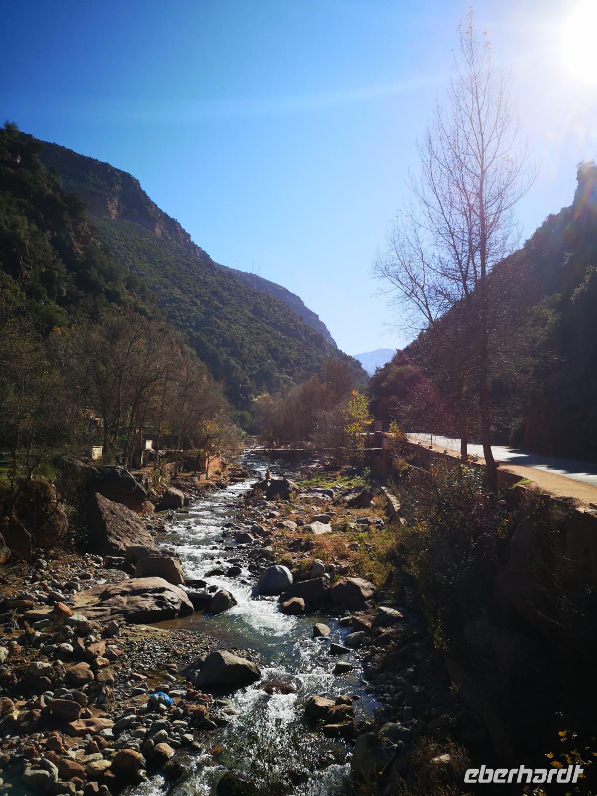 Am letzten Tag des Jahres fliehen wir noch einmal aus der quirligen Stadt und besuchen das Ourikatal im Atlasgebirge. Zuerst besuchen wir eine Berberfamilie und werden dort mit Fladenbrot und Tee mit Pfefferminze begrüßt. Wir dürfen uns das ganze Anwesen ansehen. Im Hof gibt es ein paar Tiere und eine schöne Terrasse mit Blick übers Tal. Wir legen einige Fotostopps entlang der Strecke ein, unser ständiger Wegbegleiter ist der Ourika-Fluss. Wir genießen das schöne Wetter bei einem Spaziergang am Fluss und kehren etwas später in ein Restaurant mit schöner Terrasse zum Mittagessen ein. Auf dem Rückweg nach Marrakesch besuchen wir noch den Menara-Garten. Zurück im Hotel bleibt noch Zeit um sich für den heutigen Abend vorzubereiten. Beim Begrüßungsdrink im Patio werden wir musikalisch von Berbermusik überrascht. Etwas später dürfen wir dann endlich in den großen Saal, alle Tische sind festlich geschmückt. In der Mitte des Saals befindet sich die Bühne und verschiedene Darsteller, Musiker wie Tänzer geben ihr Bestes um uns einen tollen Abend zu bescheren. Auch die Kellner sind stets bemüht um uns unsere Wünsche zu erfüllen. Die Zeit wird in regelmäßigen Abständen mit dem mehrgängigen Menü ausgenutzt bis es dann schließlich Mitternacht ist - Prosit Neujahr!