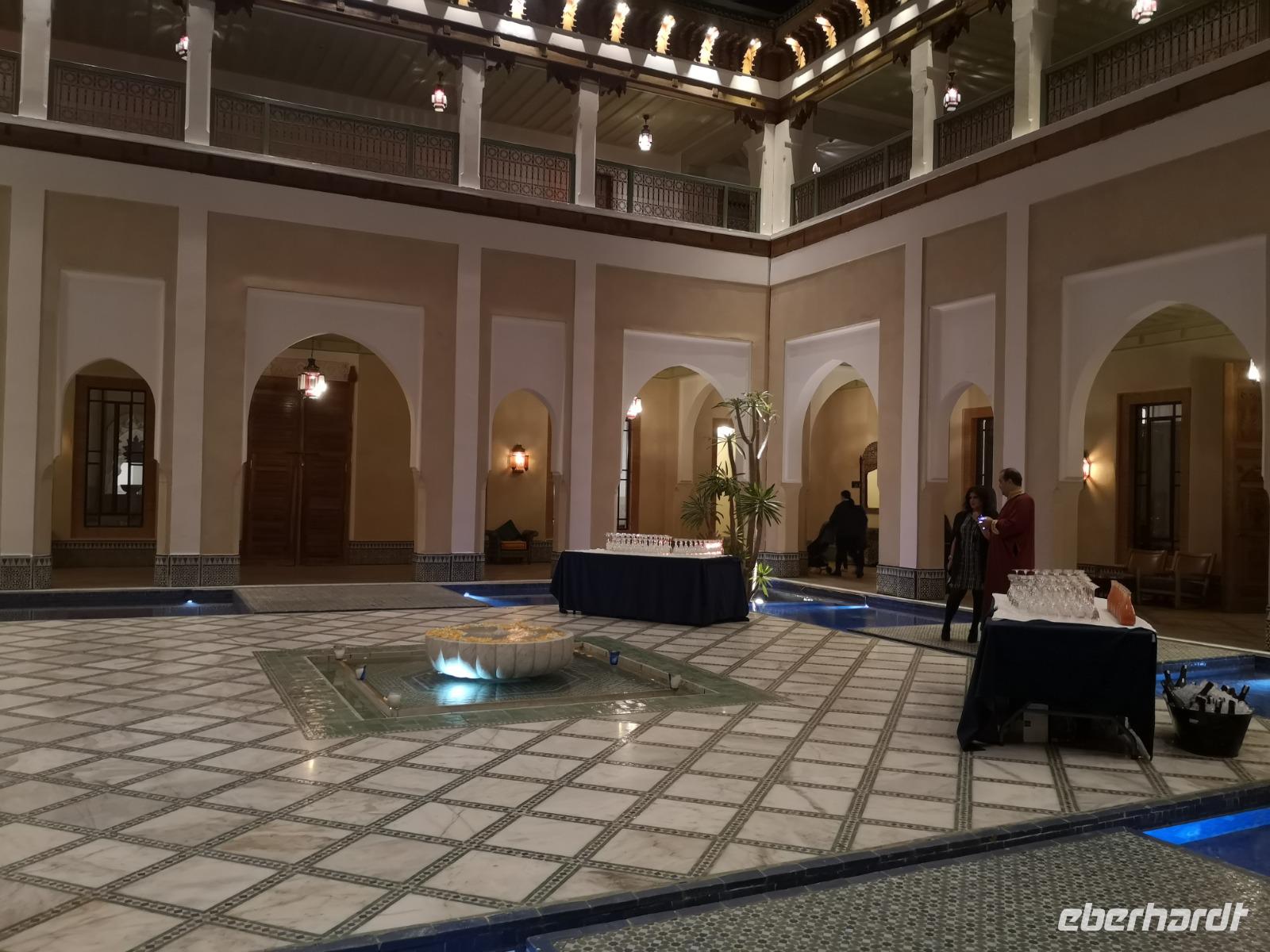 Auf einen Farewell-Drink in der Hotelbar kommen noch einmal ein paar von uns zusammen und lassen die letzten Tage noch einmal Review passieren. Morgen heißt es dann schon Abschied nehmen von Marrakesch...