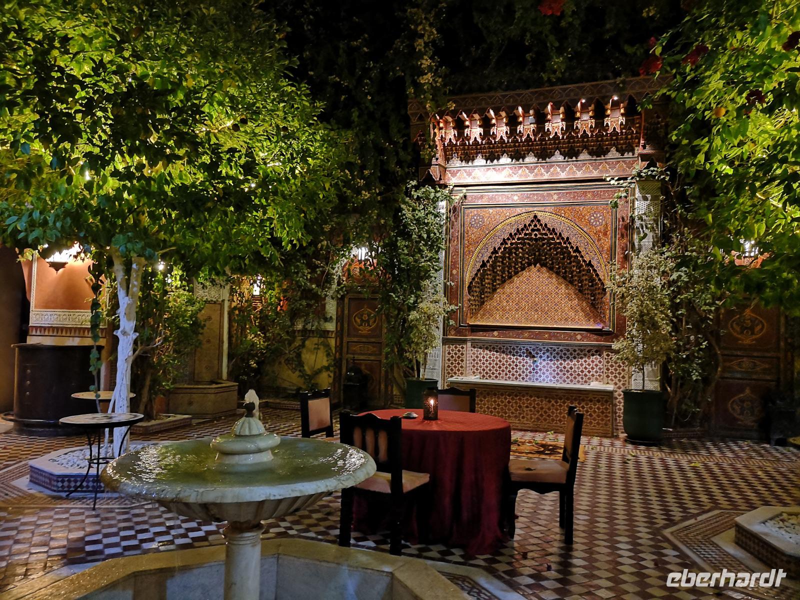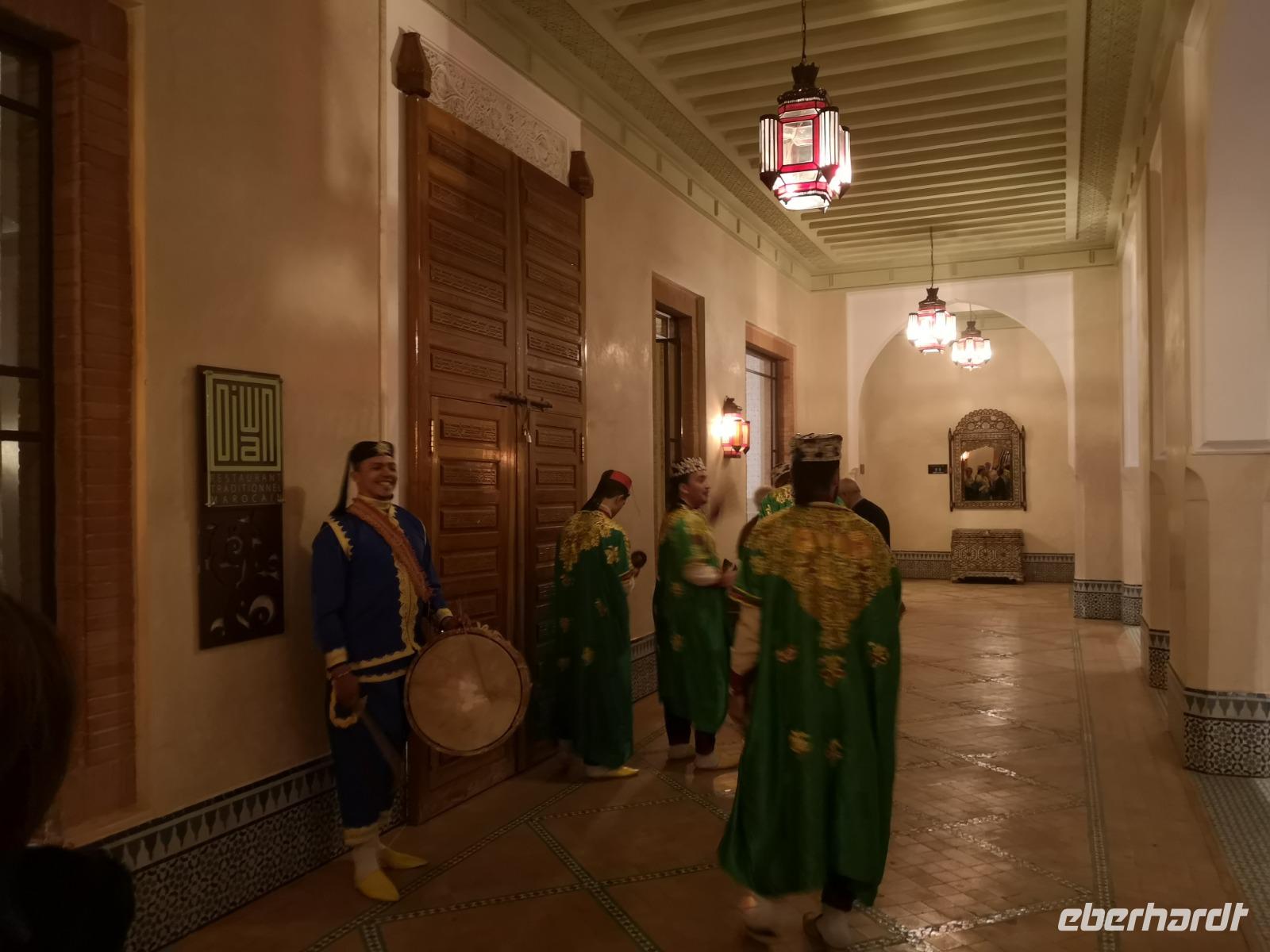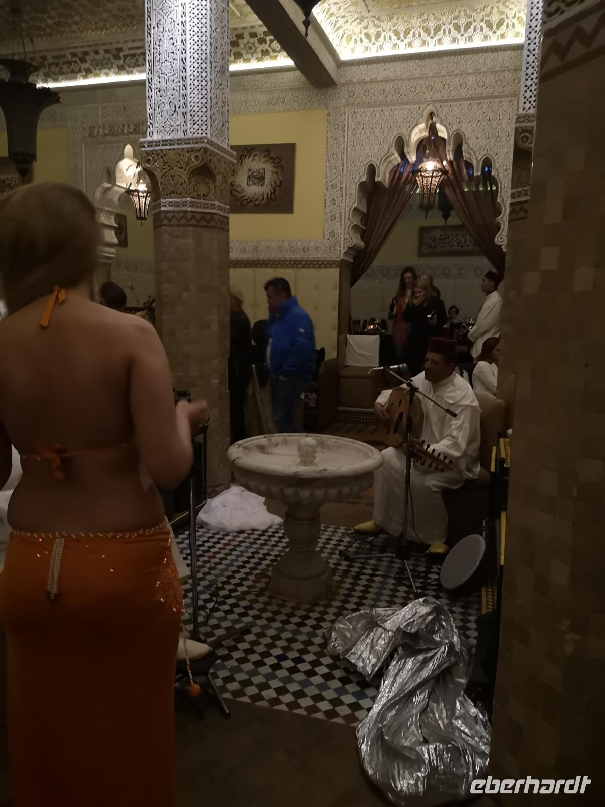 Am Abend treffen wir uns dann noch einmal um bei einem gemeinsamen Abendessen in einem schönen Restaurant in Marrakesch die Reise abzuschließen. Das Ksar Hamra Restaurant verwöhnt uns mit leckeren marokkanischen Spezialitäten und orientalischer Unterhaltung - Musik und Bauchtanz.