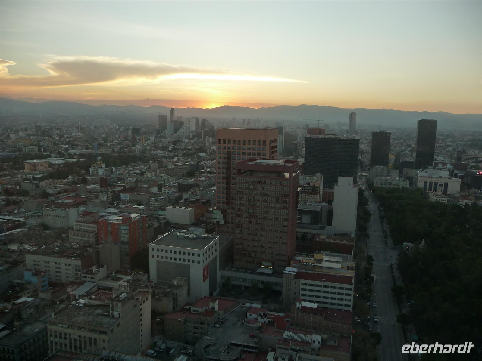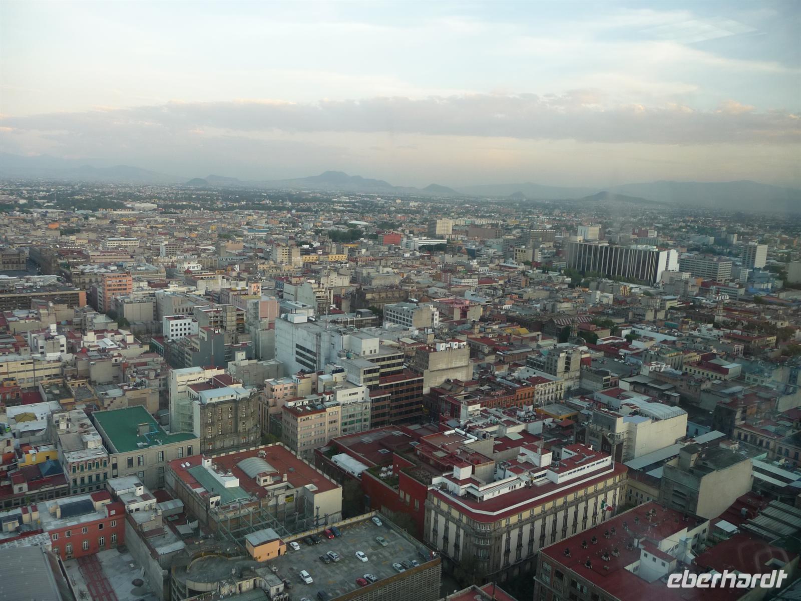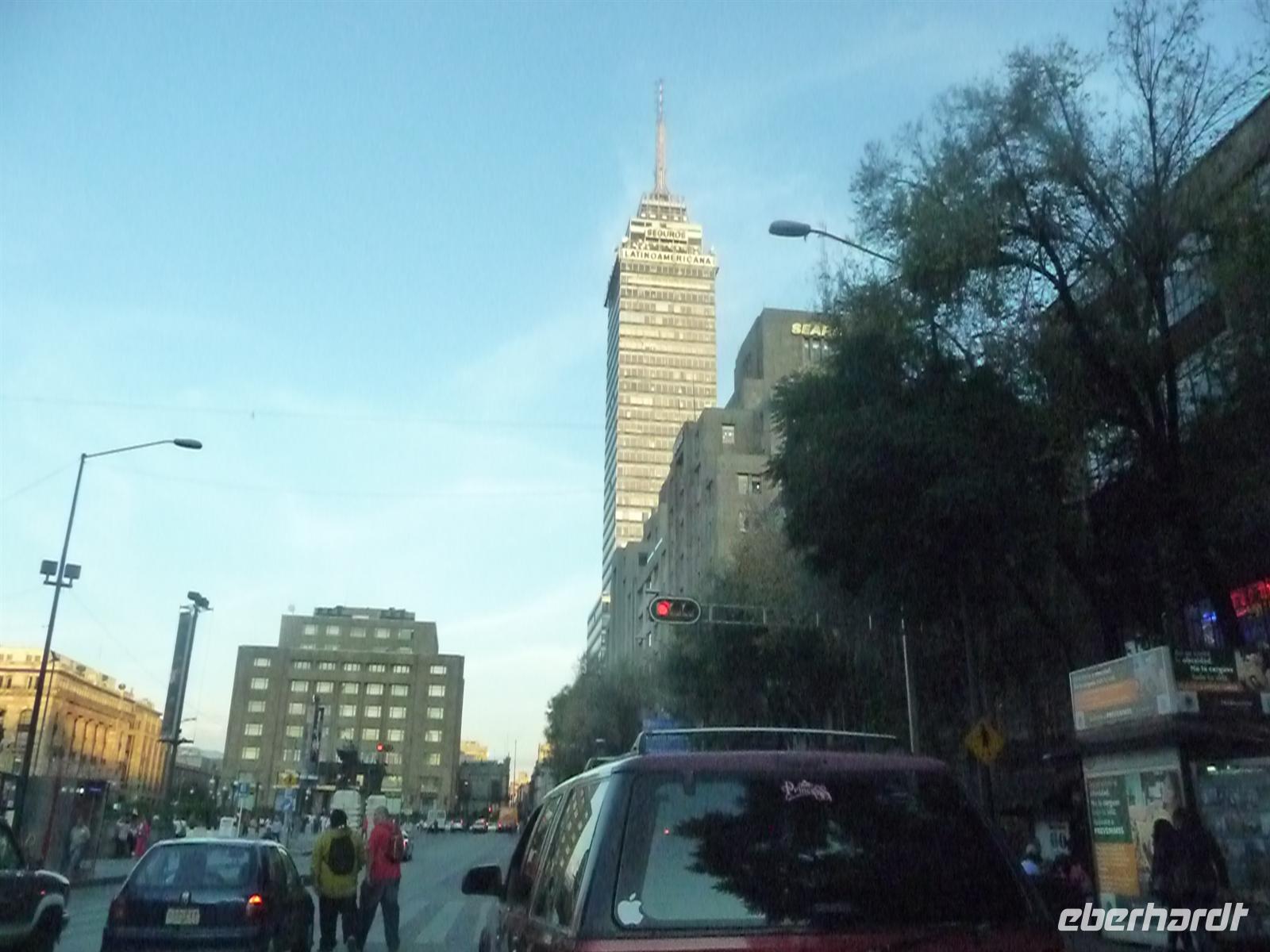 Nun war es Zeit wieder zurück in die Stadt zu fahren. Dort besuchten wir, bevor es ins Hotel ging, die Basilika der Jungfrau von Guadalupe auf dem Platz der 3 Kulturen. Wir fanden die alte und neue Kirche richtig schön, es war ein toller Ort mit schöner Akustik und einer „schrägen“ Kirche (man hatte das Gefühl bergauf zu laufen). Nach einem kleinen Rundgang fuhren wir nun am späten Nachmittag zurück ins Hotel. Wir verabschiedeten uns von unserem netten Busfahrer, denn ab Morgen sollten wir einen anderen Busfahrer bekommen, welcher uns bis Cancun fährt. So,heute Abend hatten wir noch etwas Besonders vor: viele von uns wollten diese so weitläufige Stadt von oben sehen. Also bestellten wir uns Taxis für 15 Personen und fuhren zum 177m hohen „Torre Latinoamericana“, einem Hochhaus mit Aussichtsplatform auf der 42. Etage. Die beiden Taxifahrer brachten uns jeweils zu 7. in ihren 2 Großraumlimousinen zu dem Gebäude. Dort fuhren wir hoch hinaus und waren sofort total begeistert von der einmaligen Aussicht. Die Stadt ist einfach wahnsinnig groß und weitläufig. Häuser und Straßen soweit wir sehen konnten, in alle Richtungen. Wir aßen in der Cafeteria im 37. Stock eine Kleinigkeit und bald wurde es dunkel, so dass sich die ganze Stadt in ein gigantisches Lichtermeer verwandelte. Wunderschön!