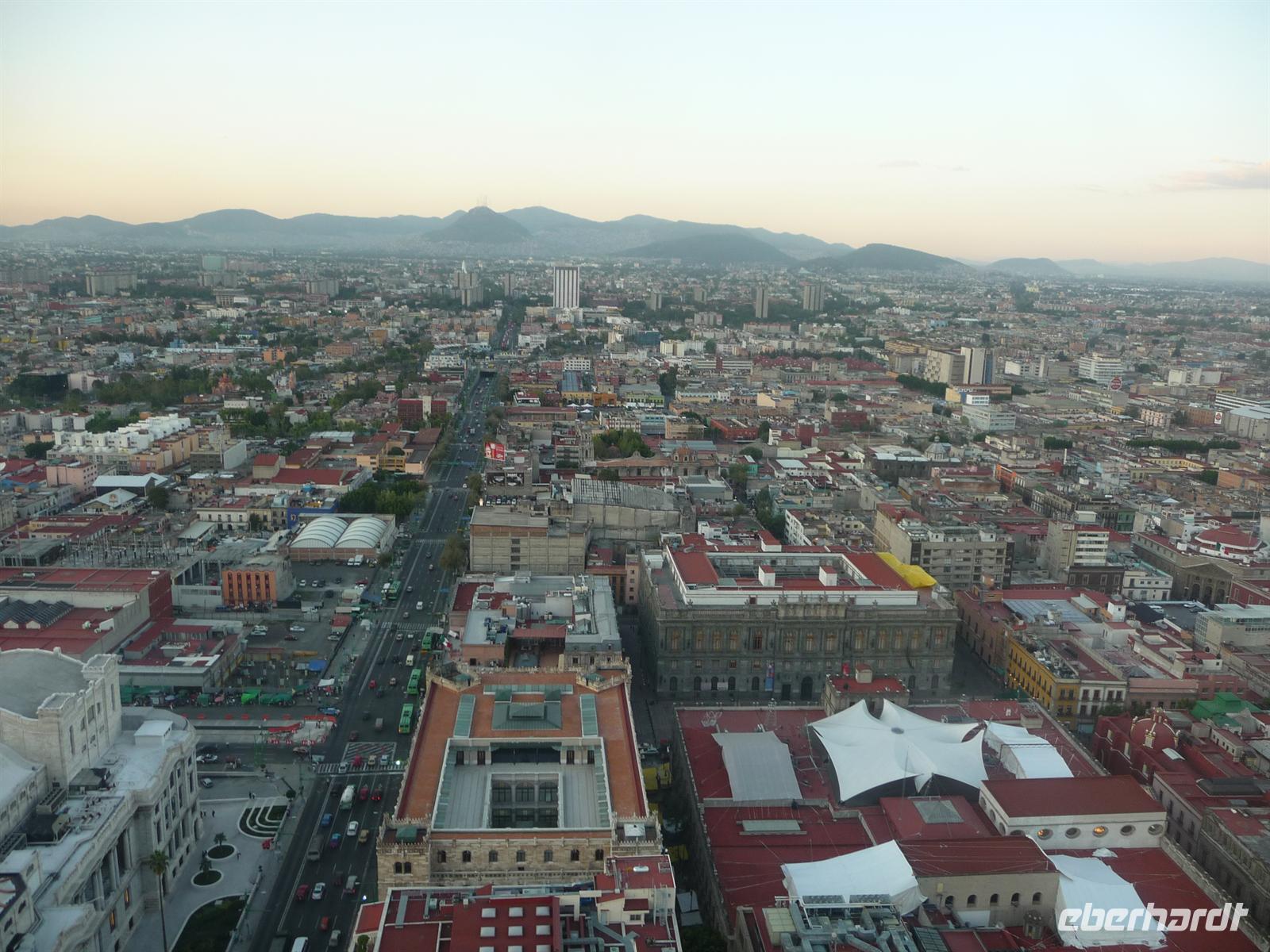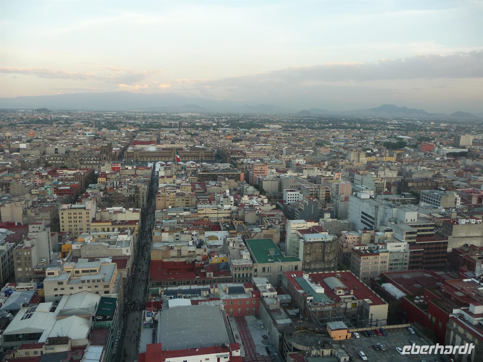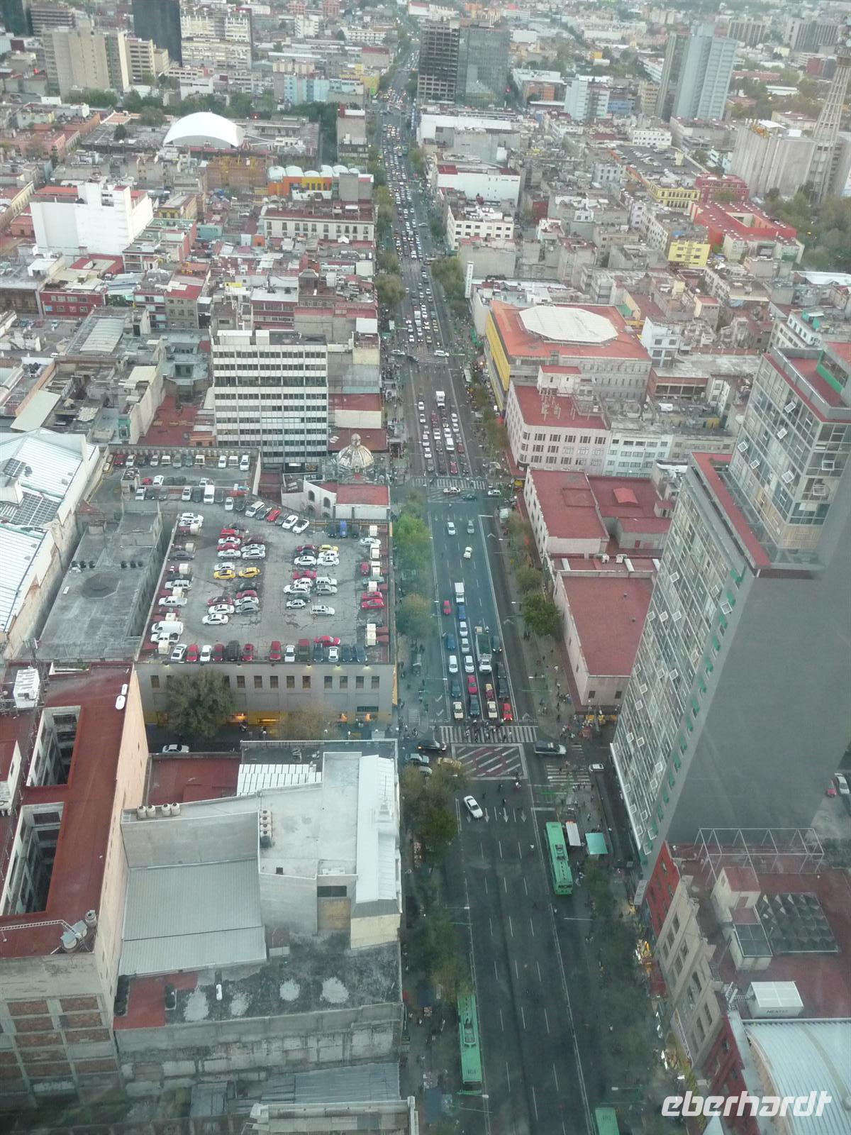 Nun war es Zeit wieder zurück in die Stadt zu fahren. Dort besuchten wir, bevor es ins Hotel ging, die Basilika der Jungfrau von Guadalupe auf dem Platz der 3 Kulturen. Wir fanden die alte und neue Kirche richtig schön, es war ein toller Ort mit schöner Akustik und einer „schrägen“ Kirche (man hatte das Gefühl bergauf zu laufen). Nach einem kleinen Rundgang fuhren wir nun am späten Nachmittag zurück ins Hotel. Wir verabschiedeten uns von unserem netten Busfahrer, denn ab Morgen sollten wir einen anderen Busfahrer bekommen, welcher uns bis Cancun fährt. So,heute Abend hatten wir noch etwas Besonders vor: viele von uns wollten diese so weitläufige Stadt von oben sehen. Also bestellten wir uns Taxis für 15 Personen und fuhren zum 177m hohen „Torre Latinoamericana“, einem Hochhaus mit Aussichtsplatform auf der 42. Etage. Die beiden Taxifahrer brachten uns jeweils zu 7. in ihren 2 Großraumlimousinen zu dem Gebäude. Dort fuhren wir hoch hinaus und waren sofort total begeistert von der einmaligen Aussicht. Die Stadt ist einfach wahnsinnig groß und weitläufig. Häuser und Straßen soweit wir sehen konnten, in alle Richtungen. Wir aßen in der Cafeteria im 37. Stock eine Kleinigkeit und bald wurde es dunkel, so dass sich die ganze Stadt in ein gigantisches Lichtermeer verwandelte. Wunderschön!