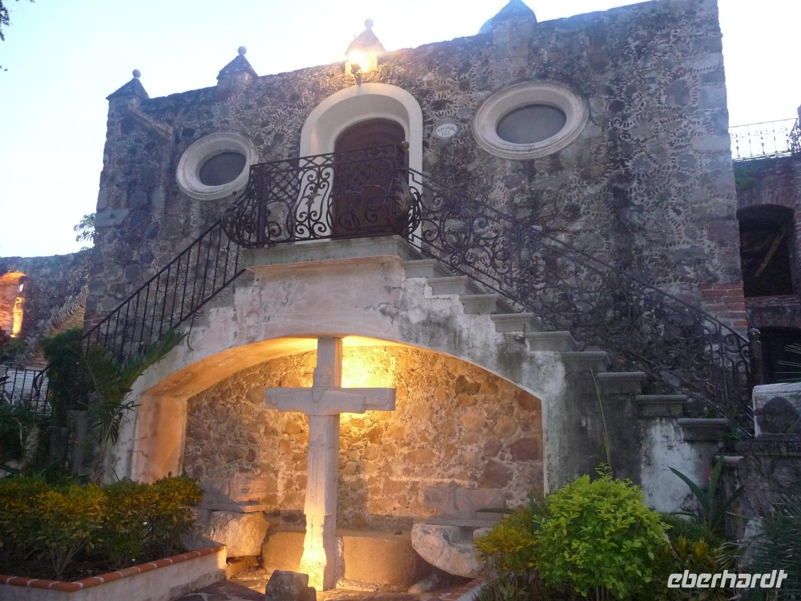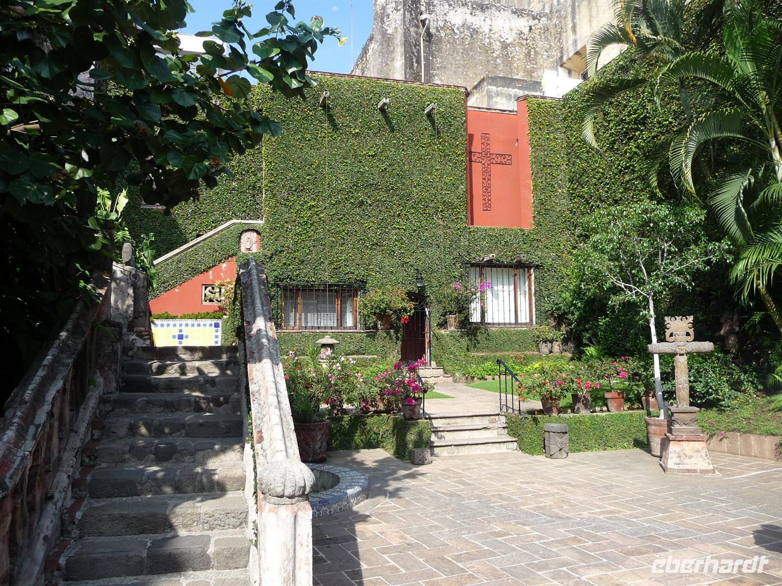 Heute verließen wir Mexiko City. Schon um 8 Uhr, gleich nach dem Frühstück ging es los. Wir begrüßten unseren neuen Busfahrer Senior Chiano mit dem neuen Bus und starteten zu unserer Reise durch Mexiko! Wir fuhren Richtung Süden nach Cuernavaca auf 1542m Höhe. Diese Stadt des ewigen Frühlings lag in einem Tal direkt hinter dem Gebirge, welches wir erst überqueren mussten. Und es ist wirklich eine wunderschöne grüne Stadt - so schön grün und typisch mexikanisch. Wir besuchten die Kathedrale, welche wirklich anders als viele andere Gotteshäuser aussah und anschließend spazierten wir zum Robert Brady Haus.