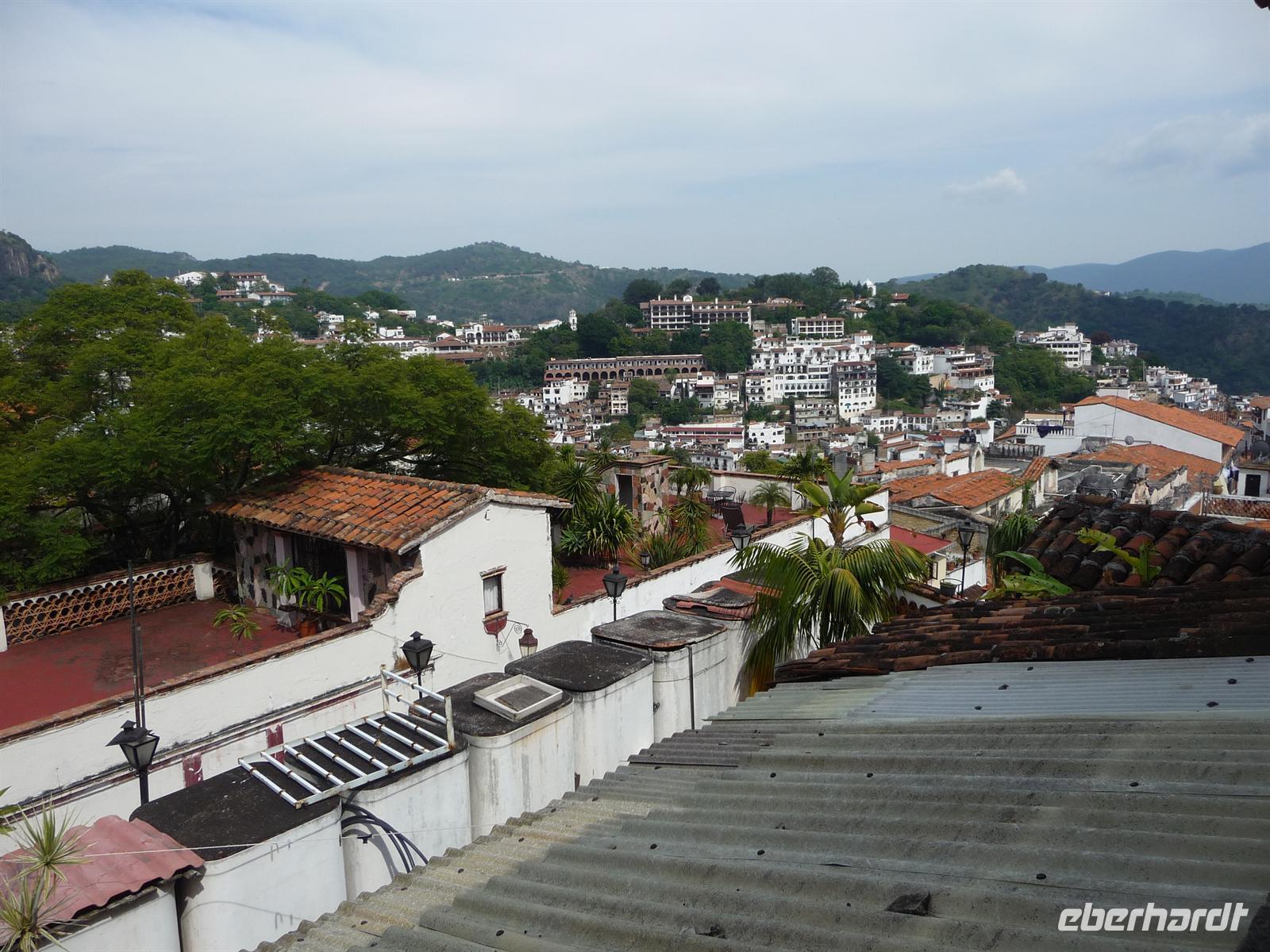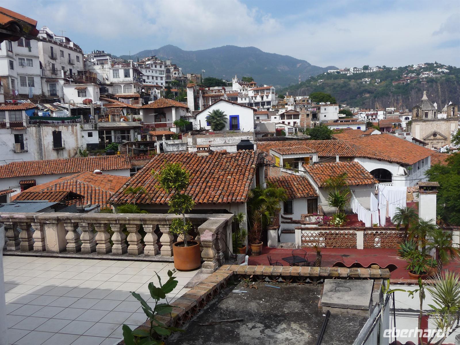 Brady war ein reicher Amerikaner und baute sich in Mexiko ein Häuschen, was jetzt als Museum der Öffentlichkeit zugänglich ist. Es hat uns allen so gut gefallen, der tolle Innenhof, die lustigen Bäder, die schönen Schlafzimmer..es war richtig gemütlich und einige von uns wollten gleich da bleiben. Aber natürlich kamen alle wieder mit und wir schlenderten weiter durch den Ort, um in einem landestypischen Restaurant Stopp zu machen und einen Happen zu essen…hmmm es gab leckere Waffeln, Kaffee, Tortillas, Omeletts und frisch gepressten Saft. Gut gestärkt fuhren wir um 14 Uhr weiter nach Taxco, durch die wunderschöne Gebirgswelt Mexikos. Taxco ist ein beeindruckendes Städtchen - da es kein flaches Tal gibt hat man die vielen Häuser einfach auf die Berghänge gebaut, und so ergab sich ein total einzigartiges Stadtbild. Wir stoppten zuerst in einem Silbergeschäft - Taxco ist berühmt für seine Silberprodukte! Dann ging es weiter in die Stadt. Wir