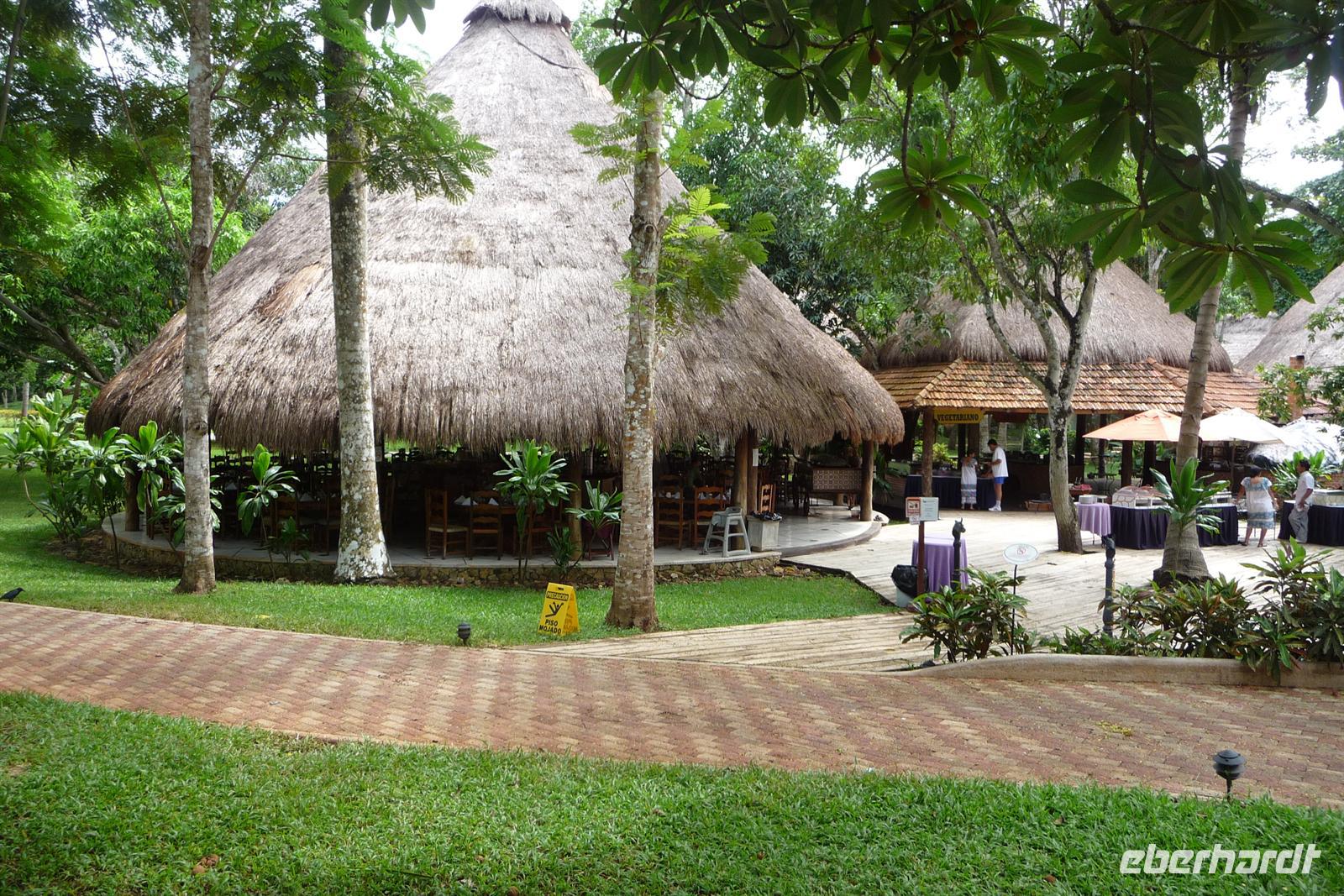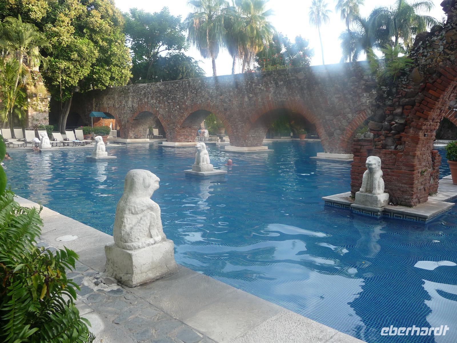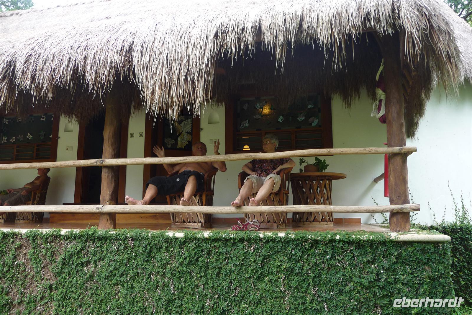 Halb sechs sind wir dann in Palenque in dem schönen Hotel angekommen, und heute nutzten viele die Gelegenheit, sich im Pool zu erfrischen. Am Abend genossen wir ein leckeres Abendessen mit Vorsuppe und Buffet wieder unter einem Palmendach im Hotelrestaurant und einige nachher noch einen leckeren Cocktail auf der Poolterrasse.