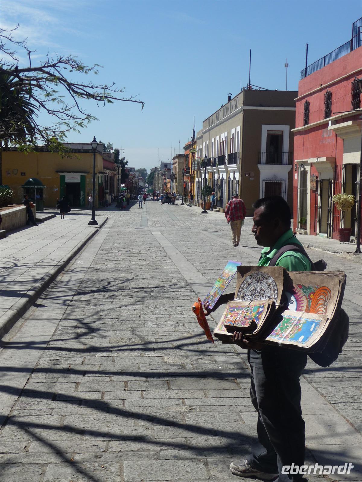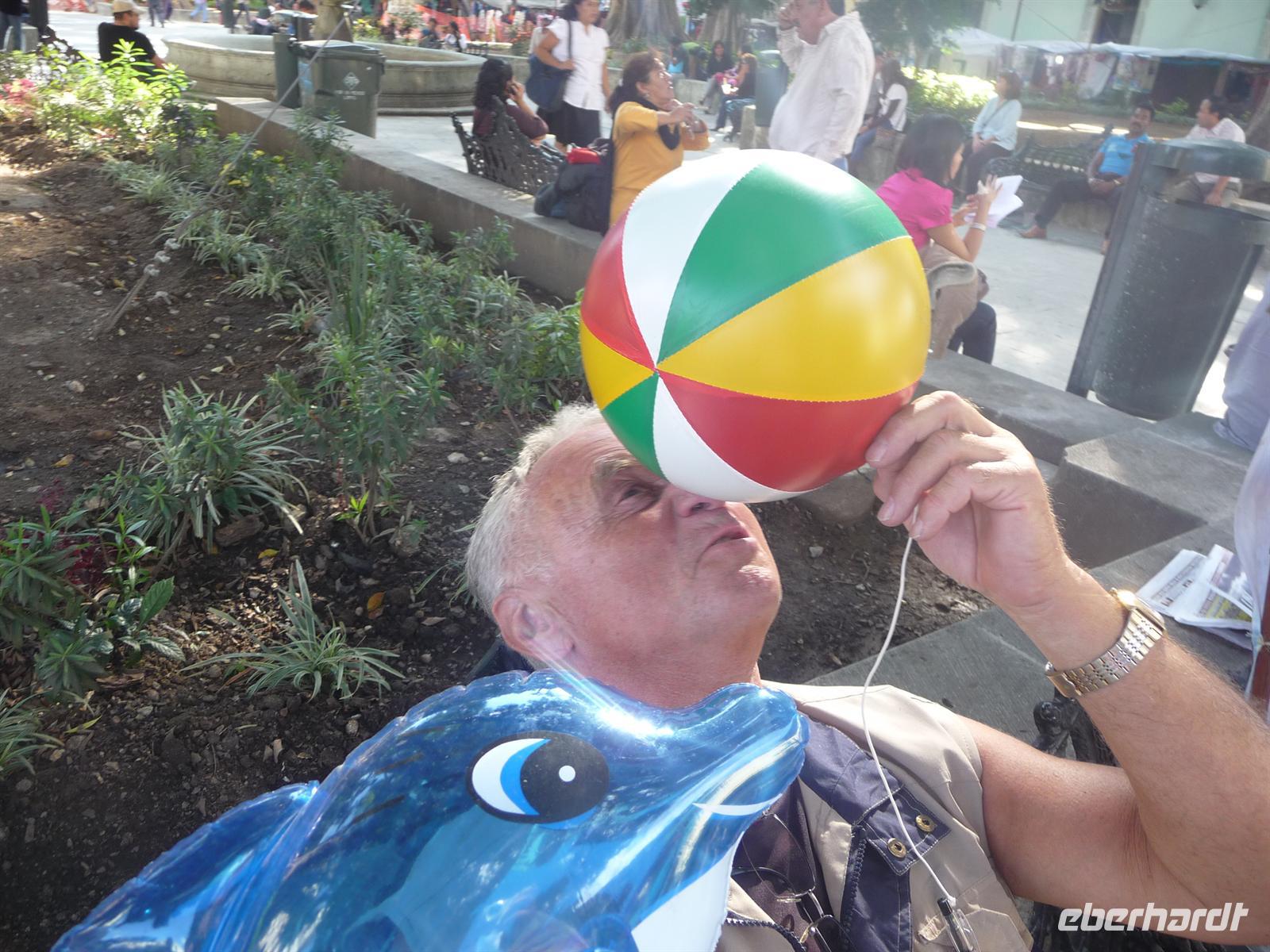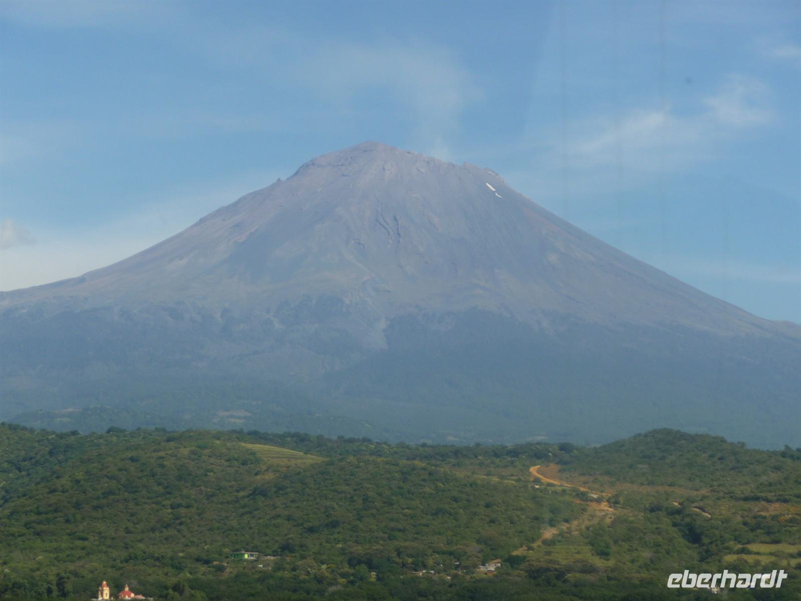 Heute mussten wir diese tolle Anlage leider schon früh verlassen, und viele Gäste sagten: „…könnten wir doch bloß noch einen Tag länger bleiben…“ Aber nein, wir mussten doch weiter, denn schließlich wollen wir noch viel mehr von Mexico sehen. Aber erst genossen wir ein super-tolles Frühstück, was uns allen wirklich gut geschmeckt hat. Und dann fuhren wir um 8 Uhr früh weiter in Richtung Pueblo. Auf dem Weg dorthin sahen wir die über 5000m hohen Vulkane und hatten wirklich gute Möglichkeiten, diese vom Straßenrand aus zu fotografieren. Angekommen in Pueblo besuchten wir die Altstadt mit einer tollen Kirche in der Fußfängerzone und die tolle Kathedrale auf dem Zocolo. Es war wieder eine schöne mexikanische Stadt mit vielen interessanten Gassen. Laura und ich gingen zusammen mit einigen Gästen zum Mittagessen, andere bummelten alleine durch die Stadt. Wir hatten ein tolles Lokal mit lecker Essen und mexikanischer Lifemusik - die spielten nur für uns. Es war richtig schön, wir kauften auch gleich die CD der Musiker und ließen uns das tolle Essen schmecken. Dann trafen wir uns alle wieder am Zocolo und unser Bus sammelte uns wieder ein. Jetzt hatten wir noch eine lange Fahrt vor uns - bis nach Oaxaca, knapp 300km. Aber die tolle Landschaft um uns herum und mexikanische Musik im Bus machten die Fahrt weniger anstrengend. Es sah auf einmal alles richtig mexikanisch aus - überall Kakteen um uns herum, eine gewaltige Gebirgskette und über 5000m hohe Vulkane! Toll!!!